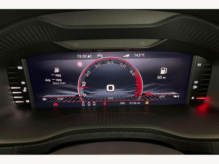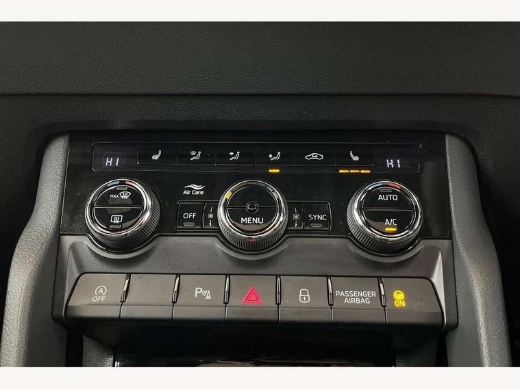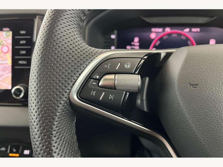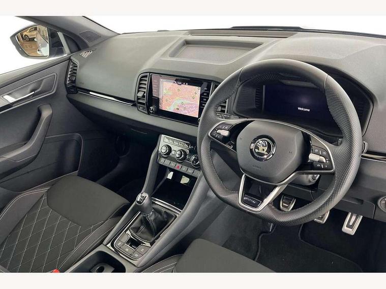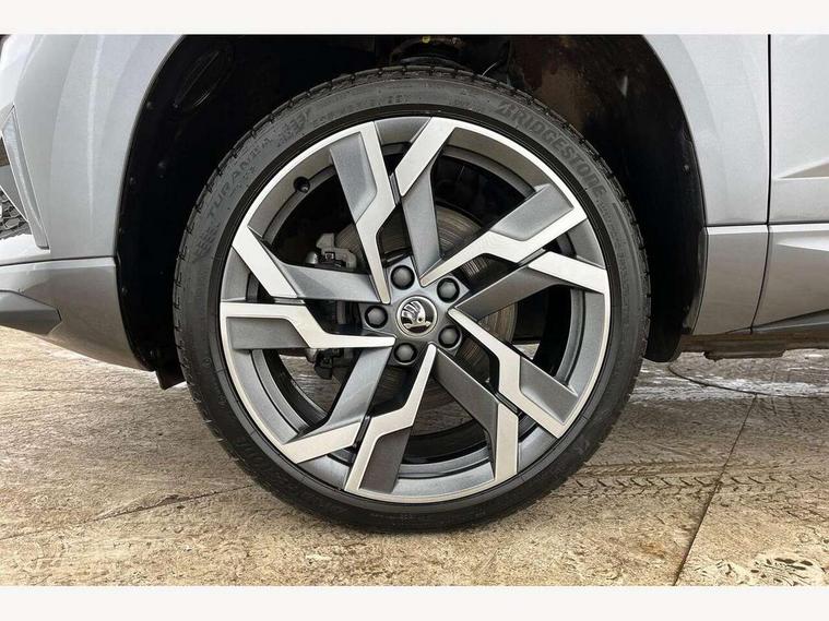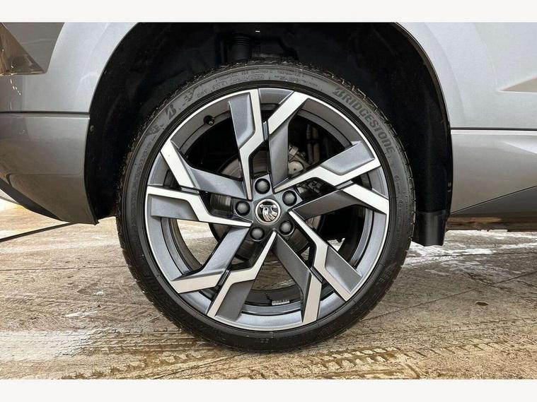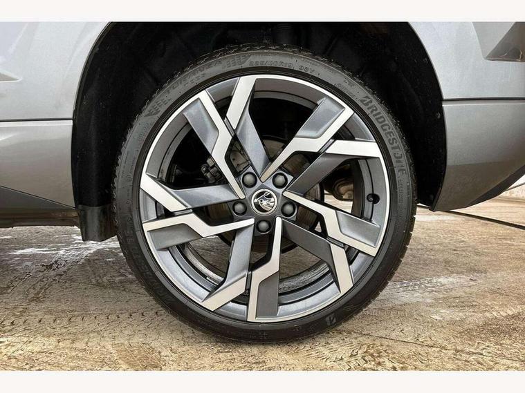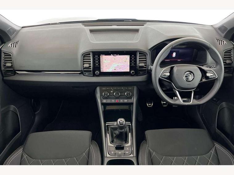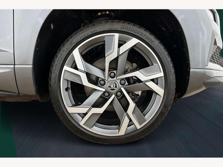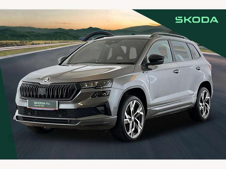 8" Digital display, Advanced driver attention and drowsiness monitor, Emergency services call system, Outside temperature gauge, Sensor for driver assistance systems, Service interval indicator, SmartLink wireless for Apple and wired for Android, Start/stop system with regenerative braking, USB C Port x 2 in front centre console, Virtual Cockpit - 10.25" digital display, Virtual pedal with electrically operated boot door, Wireless smartphone charging, DAB radio with Bluetooth, USB connection, Acoustic glass, Aero front windscreen wipers with intermittent function, Auto dimming rear view mirror with light and rain sensors, Black door mirrors, Black electric window control buttons, Black radiator grille, Black roof rails, Body colour door handles, Electric front and rear windows with child proof lock, Front door steps with SportLine logo, Heated rear windscreen, LED daytime running lights, LED rear lights with high functionality welcome effect and dynamic indicators, Light assistant (coming/leaving home/tunnel light), Panoramic sliding sunroof, Plastic scuff plates in door apertures, Privacy glass, Protective door side sills in body colour, Rear diffuser, Rear side wing doors, Rear spoiler, Rear window wiper with washer system and intermittent control, Safety reflectors on front doors, Skoda lettering on tailgate in black, Sportline badge on front fender, Sportline decorative inserts with badging, Sports front and rear bumpers, Third brake light, 1.5 litre bottle holders in driver and front passenger door panels, 12V socket in boot, 12v socket in front centre armrest with storage compartment and rear air vents, 2 x Tablet holder, 3 rear height adjustable headrests, 3 seat bench in 2nd row, 3 spoke sports leather heated multifunction steering wheel, 4 foldable roof handles with rear coat hooks, Black floor carpet, Black roof headlining, Chrome inner door handles, Foldable hooks in the boot, Front head restraints, Height adjustable front three point seats belts with tensioners, Height/reach adjust steering wheel, Ice scraper, Illuminated glovebox, Illuminated luggage compartment, Isofix child seat preparation for front passenger seat, Isofix child seat preparation outer rear, Manual lumbar support for front seats, Pen holder, Pollen filter, Rear boot cover, Rear reading lights, Rear seats fixed folding and divided 60:40, Rubbish bin door, Safety vest holder, Single front passenger seat, Storage box in upper central dashboard closed, Sunvisors with illuminated vanity mirrors, Textile floor mats, Ticket holder, Titan black interior ceiling, Umbrella under passenger seat, Under passenger seat storage compartment, LED Interior lighting pack with Skoda welcome logo - Karoq, Light Pack - Karoq, Non Smokers pack, Automatic door unlocking in case of crash, Automatic fuel cut off in case of crash, Driver airbag, Electronic parking brake with auto hold function, Emergency rear braking signal, ESC (incl. ABS+MSR+ASR+EDS+HBA+DSR+RBS+MKB), Front side airbags, Head airbags, Hill hold control, Knee airbags, Passenger airbag with switch-off function, Pedestrian monitor, Seatbelt reminder signalisation and pretensioner for all seats, Three point seatbelts rear, Two tone horn, Tyre pressure monitor, Alarm with interior monitoring, back up horn and tilt sensor with safe function, Electronic engine immobiliser, Keyless entry and start/stop, Remote central locking with 2 remote folding keys, Black air vent surround, Black centre console, carbon door decor, Satin black dashboard, Satin black door trim, 19" Sagittarius anthracite alloy wheels, Anti-theft wheel bolts protection, Breakdown and tool kit,