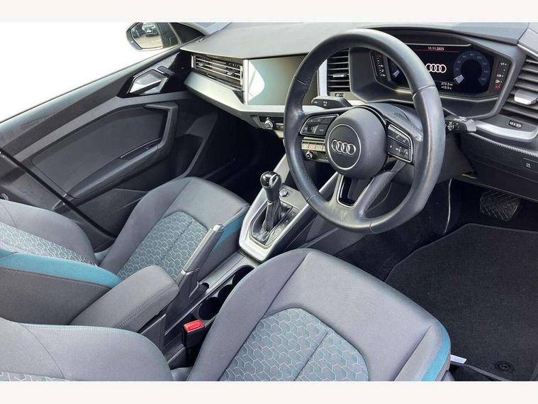 10.25" Digital instrument cluster display classis style instrument dials + speed, odometer, time, outside temperature, telephone menu + fuel level warning, Audi connect safety emergency and service including E-call, Audi drive select - power steering assistance + engine + gear shift 3 preset modes (auto, dynamic, efficiency and an Individual mode), Audi smartphone interface with connect compatible smartphone via USB directly MMI display + Nav, music, third party apps controlled via MMI controller, Automatic start/stop system, Bluetooth interface, Cruise control, Driver's information system, Electromechanical power steering, Lane departure warning system, Service interval indicator, Speed limiter, Voice control system, Washer fluid level indicator, Dynamic suspension, 1 x SDXC card reader, 2 x USB type C connection points, DAB Digital radio, MMI radio plus with 8.8" colour MMI display screen and MMI touch, Auto dimming rear view mirror, Body coloured bumpers, Body coloured door mirrors, Electric front and rear windows, Electrically adjustable, heated, folding door mirrors with integrated LED side indicator, Front side air inlets in grained matt black and C frame in titanium black, Heat insulating glass windscreen and side windows, Heated rear windscreen, LED headlights with LED rear lights + dynamic rear indicators + headlight adjustment and high beam, turning light + LED daytime running lights, Radiator grille and rear diffuser in matt titanium black, Radiator protective grille frame in matt aluminium silver, Rain and light sensors, Rear fog lights, Rear wiper, Scandium grey tailpipe trim, Side front spoiler lips in grained matt black, 12V socket in centre console with two cup holders, 3 rear seats with headrests, 40:60 Split folding rear seat or folded fully, Door sill trims with aluminium inlay, Driver and passenger seat with manual height adjust with forward and backwards adjustment, Front head restraints, Front/rear floor mats, Height and reach adjustable steering wheel, ISOFIX child seat mounting for front passenger and outer rear seats including top tether attachment point of outer rear seats, Leather gear knob with aluminium trim, Leatherette handbrake grip, Luggage compartment light with front and rear reading lights, Manually adjustable lumbar support in front seats, Novum cloth upholstery with front sport seats, Titanium grey cloth headlining, Luggage compartment pack - A1, 3x3 point rear seatbelts, Audi pre-sense front with pedestrain and cyclist recognition, Brake assist function, Driver and front passenger airbag with front side and head airbags, Electronic Stability Control including ABS, EBD, ASR and EDL, Front and rear seatbelt reminder, Front passenger airbag deactivation switch, Hill hold assist, Seatbelt height adjustment for front seats, Seatbelt monitoring, Tyre pressure warning light, Warning triangle and first aid kit, Anti theft alarm, Anti theft wheel bolts and loose wheel warning, Immobiliser, Remote central locking with 2 foldaway keys, Aluminium trim for control switches, air vents and digital instrument cluster, Silver grey accent areas including air vents, door handle recesses and centre console in diamond paint finish, Slate grey inlays polygon structure in fine paint finish,