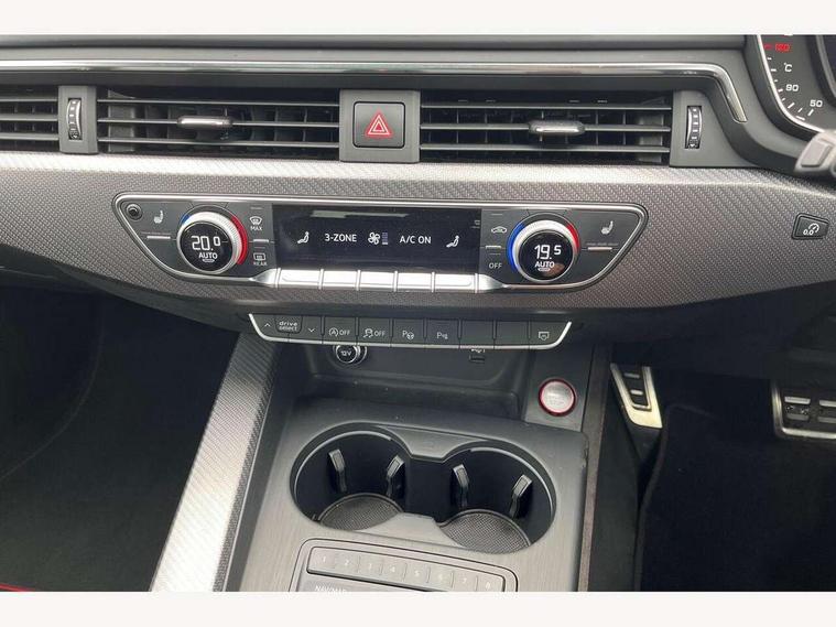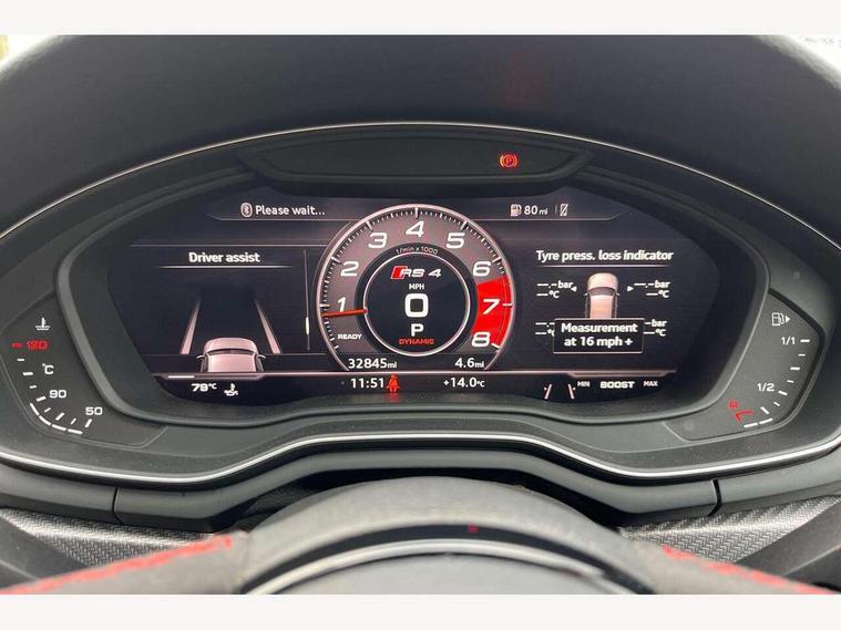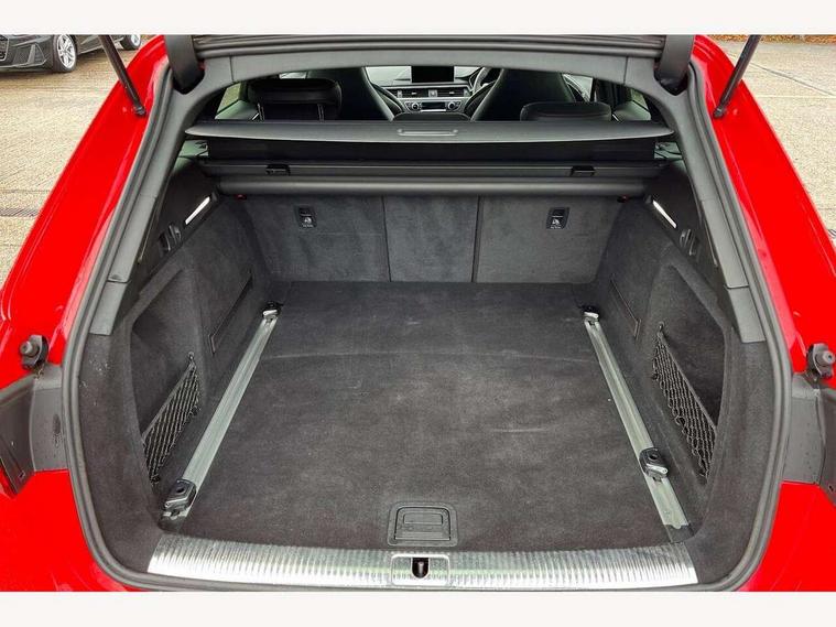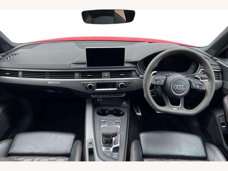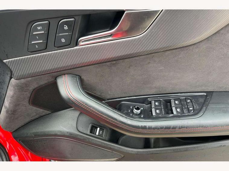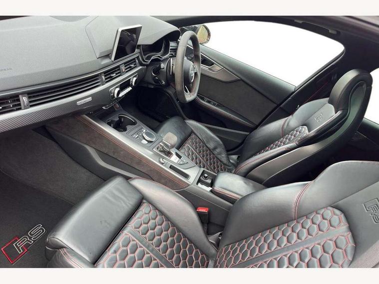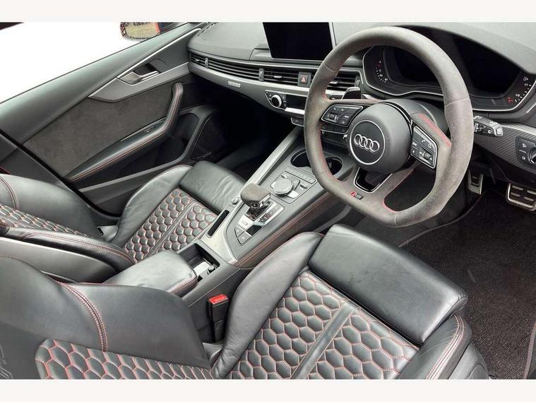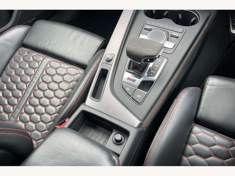 Audi drive select, Audi smartphone interface, Audi virtual cockpit - 12.3" high-resolution LCD display with fully customisable instrument cluster, Colour driver's information system display, Electro-mechanical PAS, MMI navigation plus with HDD and jukebox storage + 2 SD card readers + single CD/DVD player, Mobile telephone preparation - bluetooth interface, Power boot opening and closing, Service interval indicator, Stop/start button, Voice control system, Quattro sports differential, 2 USB ports, Aux input, DAB digital radio module, Acoustic windscreen, Air inlets in titan black with chrome inlays, Aluminium window trim, Auto dimming rear view mirror, Automatic headlights + automatic windscreen wipers, Body colour bumpers, Body colour door handles, Electric adjustable heated door mirrors, Electric front windows, Electric rear windows, Headlight range control, Headlight washer jets, High beam assistant, High gloss black triangular aperture at rear door, Honeycomb radiator grille - black, LED daytime running lights, LED indicators in door mirrors, Rain and light sensors, Rear diffuser in Twilight grey matt, Rear wiper, Twin oval exhaust tailpipes with chrome finish, 3 zone climate control, 4 way electric lumbar support for driver and front passenger, Black cloth headlining, Door armrest in leather, Fine Nappa leather upholstery, Front centre armrest with 12v socket, Front headrests, Front/rear floor mats, Gearshift paddles, Illuminated door sill finishers, Isofix child seat preparation for front passenger/outer rear seats inc passenger airbag deactivation, Jack and tool kit, Luggage compartment carpet, Lumbar support with massage function, Massage function for front and rear seats, Perforated leather gearknob, Reach + rake adjustable steering column, Rear centre armrest, Rear headrests, Retractable load area cover, RS Super sports front seats, Split folding rear seats, Sunvisors with vanity mirrors, Top tether anchor plate for isofix child seat, Non Smokers pack, 3 point seatbelts on all rear seats, ABS/EBD, Active bonnet, Adaptive driver and front passenger airbags, Electromechanical parking brake, Enhanced braking system, ESP, First aid kit, Front head airbags, Front seatbelt pretensioners + load limiters, Front side airbags, Hill hold assist, Pre-sense city emergency braking system, Seatbelt warning, Traction control, Warning triangle, Anti theft alarm, Keyless Start, Locking wheel bolts, Remote central locking, Thatcham category 1 alarm + immobiliser, Space saver spare wheel,
