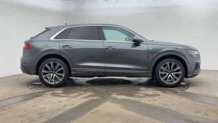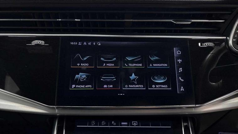 10.1" and 8.6" Dual colour touchscreens, Audi connect safety and service (e-call), Audi connect with Amazon Alexa Integration, Audi drive select, Audi parking system plus includes 360 degree display with front and rear sensors, Audi virtual cockpit - 12.3" high resolution LCD display with fully customisable instrument cluster, Automatic start/stop system, Electro-mechanical PAS, Low washer fluid indicator, MMI - Multi Media Interface control system, MMI navigation plus with MMI touch, Natural voice recognition, On board computer, Operating buttons in black, glass look with haptic feedback, Power operated tailgate, Rear view camera, Service interval indicator, Smartphone interface includes wireless Apple carplay/Android Auto, 48V Mild hybrid technology, 85 litre fuel tank, Adaptive sport air suspension, Quattro all wheel drive with self locking centre differential, Audi music interface with 2 USB ports with charge and data functions, Audi sound system with 6 channel amplifier, 180 watt amplifying capacity and 10 loudspeakers including subwoofer, Aux-in socket, DAB Digital radio, 3rd brake light, Acoustic windscreen, Aluminium window trim, Audi HD Matrix LED headlights with dynamic front and rear indicators, Auto dimming frameless rear view mirror, Body colour door mirrors, Coming/leaving home lighting function, Electric front+rear windows, Electrically folding auto dimming/adjustable/heated door mirrors with memory function, LED side indicators and kerb view function for passenger side, Headlight washers, Heat insulating glass in windshield, Illuminated door sill trims with S line logo, LED signature daytime running lights, Platinum grey front spoiler lip and diffuser insert with honeycomb grille in black, Privacy glass - dark tinted rear and rear side windows from B-pillar backwards, Rain and light sensors, Rear side wing doors, Rear wiper, S line badges on front wings, S Line body styling, S line bumpers in full body colour paint finish, S line roof spoiler, S Line side skirts, S line side ventilation grille, 2 zone automatic climate control, 3 bench rear seats in 2nd row, 4-way lumbar support for front seats, 40:20:40 split folding rear bench seat, Black cloth headlining, Comfort front centre armrest, Driver seat memory function, Electrically adjustable front seats, Front head restraints, Front/rear floor mats, Heated front seats, ISOFIX child seat mounting for front passenger seat and 2 outer rear seats with top tether child seat mounting for all 3 rear seats, LED interior ambient lighting, Luggage compartment sill protection in stainless steel, Rear centre armrest with 2 cupholders, Rear headrests, Single front passenger seat, Stainless steel pedals, Sunvisors with illuminated vanity mirrors, 3 point seatbelts on all seats, Audi pre sense front, Child locks on rear doors, Driver and front passenger, front side and curtain airbags, Electromechanical parking brake, Electronic Stability Control (ESC) including ABS, ASR and EDL, Front passenger airbag deactivation, Hill descent control, Hill hold assist, Predictive pedestrian protection, Seatbelt monitoring, Traction control, Tyre pressure loss indicator, Warning triangle and first aid kit, Anti theft alarm with tow away protection, Anti-theft wheel bolts and wheel loosening detection, Immobiliser, Keyless go with remote central locking, Dark matt brushed aluminium inlay, Tool kit, Tyre repair kit,