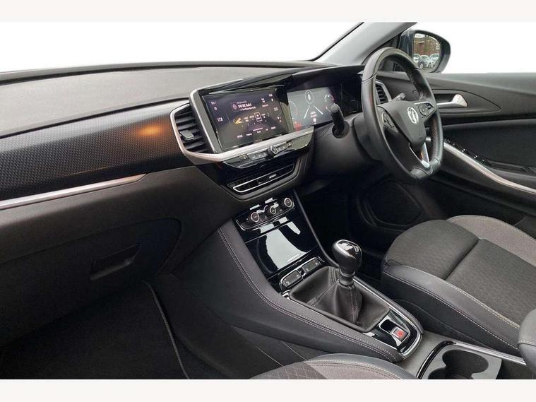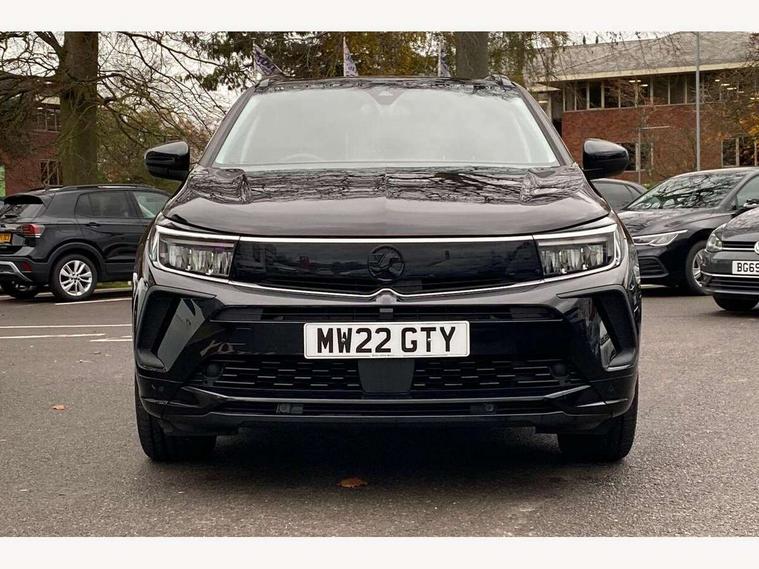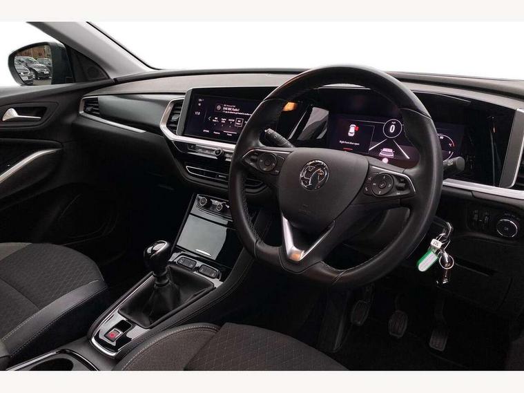 12" colour digital cluster, 180 degree rear view camera, Central facia display with digital clock, outside air temperature and audio information, Cruise control with speed limiter, Digital fuel gauge with low fuel level warning light, Digital rev counter, Digital speedometer, Digital water temperature gauge with warning light, Driver drowsiness alert system, Driver information - Total mileage, service indicator, oil life, Gearshift up/down indication light, Lane departure warning system, Lane keep assist, Lights on audible warning, Multi function trip computer - Trip odometer, vehicle range, average speed and fuel economy, instantaneous fuel economy and driving time, Multimedia navi pro with 10" colour touch+ sat nav+AM/FM/DAB radio, bluetooth audio streaming/mobile phone portal, Apple carplay/Android auto, USB, Speed sensitive electric power assisted steering, Speed sign recognition, Vauxhall connect including Ecall and connected services, Six speaker - four front + two rear, Steering wheel mounted audio/phone/cruise controls, 3rd brake light, Automatic lighting control, Automatically dimming anti dazzle rear view mirror, Black door mirrors, Black side window trim, Body colour door handles, Carbon black door claddings, Collapsible windscreen wipers, Dark tinted rear side and tailgate windows, Door mirror puddle light, Door to door illumination, Electrically adjustable and heated power door mirrors (wide-angle on drivers side) with automatic timed cut-off, Electrically operated front and rear windows with safety auto reverse and one touch up/down facility, Front/rear bumper and wheel arches in carbon black exterior color, GRANDLAND Carline name badge in - High gloss black, Hazard warning lights, Heated rear screen with timed cut off, High beam assist, High gloss black protective front and rear skid plates with C shape bumper inserts, High gloss black roof rails, High level centre rear brake light, Intermittent rear window wash/wipe, LED daytime running lights, LED Headlights, LED tail lights, Manual headlight beam levelling, Rain sensor windscreen wipers, Rear side wing doors, Rear spoiler, Reversing light, Shark fin aerial, Side protection mouldings, Side window demist vents, Soundproof insulated windscreen, Tinted windows, Upper and lower bumper design, Vauxhall brand griffin badge in front and rear in high gloss black, Vauxhall plate door sill cover, Vizor front grille, Welcome lighting, Windscreen demist vents, 12V electrical accessory socket in front, 3 bench rear seats in 2nd row, 3 spoke flat bottom leather steering wheel with satin chrome effect bezel, 4 way electric driver lumbar support, 4 way manual adjustable driver seats with height, reach and backrest, 60/40 split folding rear seat, Advanced predictive logic control system using a sun sensor, Ambient centre console downlighter, Anti submarining ramps in front seats, Automatic air direction and fan speed with manual override, Black premium leather-effect side bolsters, Charcoal filter, Chrome effect interior door handles, Cosmo 1 Harlekin curitiba seats, Covered storage compartment in centre console and in driver armrest, Driver ergonomic active front seat, Driver's centre armrest, Dual zone electronic climate control, Four adjustable facia vents, Front door pockets with 2.6 litre capacity, Front passenger seat, Front passenger seat cushion extension, Front passenger sport style seat, Grey headliner, Height adjustable headrests, Illuminated controls, Illuminated driver/passenger sunvisors, Illuminated luggage area + Ambient lighting in front doors, Interior courtesy light operated by door switches, ISOFIX on front passenger and rear outer seats, Luggage compartment cover, Reach + rake adjustable steering column, Rear centre seat head restraint, Rear door pockets with 1.8 litre capacity, Rear passenger compartment heating ducts, Rear reading lights, Two drinks holders in centre console, Ventilated glovebox with lid, 6 Airbags - Driver and passengers front airbag, two front side impact airbag, full size curtain airbags for driver, Anti-lock braking system (ABS), Automatic emergency braking system, Child proof locks on rear doors, CSC - Cornering stability control, Deactivation switch for front passenger front and side impact airbags, Deflation detection system, Deformation zones front and rear, Dual seatbelt pretensioners on front seats, EBD - Electronic brakeforce distribution, Electronic parking brake, Electronic stability program (ESP) including traction control, Energy absorbing steering column, Engine drag torque control, Hill start assist, Hydraulic Brake Assist (HBA), Inertia reel lap and diagonal seatbelts for all seats, Load limiters on outer rear seatbelt retractors, Rear restraint seat belt pretensioner, Reinforced passenger safety cell, Side impact protection beam, Smart seatbelt reminder for front and rear seats, Tyre pressure monitoring system, Deadlocking system, Electronically protected audio equipment, Engine deadlock immobiliser, Freewheeling door locks, Key left in ignition audible warning, Locking wheel nuts, One rigid one flap-key coloured, Remote control central locking activation switch on driver door, Remote control primary foldable and additional foldable key, Remote security alarm system, Self powered alarm horn, Single horn, Theft deterent body security content and electircal child lock system, Theft deterent electrical, Visible vehicle identification number, Black door panels with black premium leather effect inserts, Dax decor facia panel with palladium medium finish, 18" 5 twin spoke high gloss black alloy wheels, Tyre inflation kit,