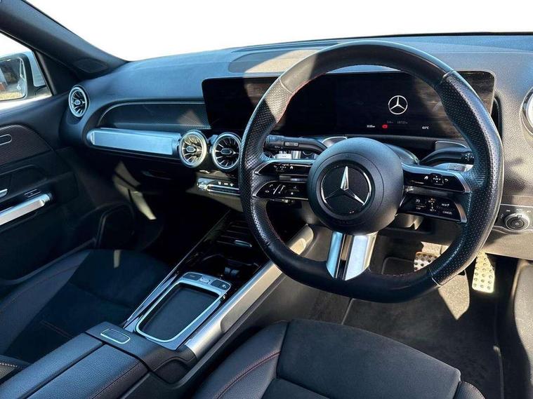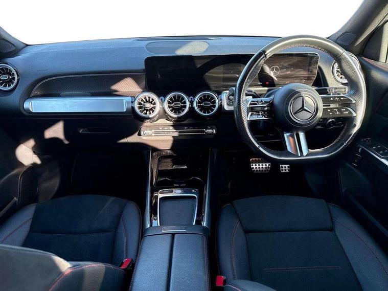 10.25 inch touchscreen central media display, 10.25" Digital instrument cluster display screen, 12 ultrasonic sensors in front and rear bumpers, 180 degree reversing camera with parking guidelines, Assisted parking: reversing backwards into perpendicular and parallel parking spaces, Attention assist - Monitors steering behaviour and long journey fatigue, Bluetooth connection, Brake pad wear indicator warning light, Car wash mode, Convenience opening and closing, Direct steering, DYNAMIC SELECT with a choice of driving modes (ECO, Comfort, Sport and Individual), ECO start/stop function, Engine start/stop button, Fluid level warning indicator for fuel, oil, coolant and washer fluid, Hard disk navigation, Hey Mercedes Voice activation, Lamp failure indicator, Lane keep assist, MBUX navigation premium, Mercedes me connect including emergency call system, accident recovery, breakdown and maintenance management, Mercedes me remote services, Outside temperature gauge, Owners manual and service booklet in English, Pre-installation of private car share, Preinstallation for parking damage notification, Radio aerial integrated into front and rear windshields, Remote boot closing, Service indicator (ASSYST), Smartphone integration with Apple CarPlay and Android auto, Speed limit assist, Tailgate, Trip computer in multifunction display with current consumption indicator, Ultrasound sensors - positioned in the handle of the tailgate, Wireless charging, Comfort suspension with ride height lowering, Rear axle multi-link, 1 USB-C port in the oddments compartment (Charge + Data transfer), 2 USB-C ports for the rear on the centre armrest (Charge only), 2 USB-C ports under the front centre armrest (Charge + Data transfer), DAB digital radio tuner, MBUX multimedia system, Mercedes Benz sound system (100 W) with 6 speakers, Pre installation for Mercedes Benz Link, Adaptive brake lights, Adaptive high beam assist, AMG front apron with front splitter in the colour of the vehicle with chrome trim element, AMG rear apron with visible tailpipe trim and chrome trim element, AMG specific/dual flow exhaust pipes in chrome (non-functional), Auto dimming rear view mirror, Beltline trim and window line trim strip in high gloss aluminium, Black grained side sill trim with chrome inlay, Body coloured door handles, Electric adjustable and heated door mirrors with integrated LED side indicators, Electric folding door mirrors, Front and rear electric windows, Headlamp assist automatic headlamp activation, Heat insulating dark-tinted glass starting from B-pillar, Heated glass rear windscreen + timer control, High level LED third brake light, Interior mirror with black reading lamps and frameless, LED high performance headlamps with integrated LED daytime running lights, LED tail lamp, Polished aluminium roof rails, Radiator grille as a diamond grille with chrome pins and central Mercedes star, Rain sensor windscreen wipers, Rear fog lamp, Rear side wing doors, Rear wiper, Single louvre in matt grey with chrome inserts and black highlights, Two visible tailpipe trim elements exhaust, Ultrasonic sensors - positioned in the front and rear bumpers, Wheel arch liners in the colour of the vehicle, 12V socket in the oddments compartment, 3 seat bench in 2nd row, 3 twin spoke flattened multifunction steering wheel in nappa leather - horizontal twin spoke in high gloss black, vertical twin spoke in silver chrome, 4 way adjustable lumbar support, 40:20:40 split folding rear seats, Air vents with silver chrome surrounds, AMG floor mats, AMG sports pedals with brushed stainless steel surfaces and black rubber studs, Automatic child seat recognition sensor, Black roof lining, Door handles with chrome inserts, Fluorescent jacket, Front and rear headrests, Front centre armrest with stowage, Galvanised steering wheel gearshift paddles in silver chrome, Handle recess lighting, Heated front seats, Height adjustable head restraints, Height/reach adjustable steering column, Interior lighting - 64 colour Ambient lighting, Luggage net on driver/front passenger seat backrest, Single front passenger seat, Sports seats, Stowage compartment with retractable cover, Sun visors with illuminated vanity mirrors, THERMATIC automatic climate control, Third row of seats for two people on rear seat, Twin front cup holders, Two outer rear seat isofix and top tether child seat fixing points, Easy pack tailgate, Interior lighting with light and sight pack - GLB, Seat comfort package - GLB, 3 rear 3 point seatbelts, Active bonnet pedestrain safety measure which detects an impact and raises bonnet by 65mm, Active brake assist includes forward collision warning system with autonomous braking, Adaptive brake assist with hold function and hill start assist, Airbags - kneebag for driver, Anti-lock braking system (ABS) with brake assist, Black seatbelts, Bonnet with power domes, Childproof locks manually operated for rear doors and electrically operated for rear power windows, Crash responsive emergency lighting, Curve dynamic assist, Driver and front passenger head and sidebags, Driver and front passenger windowbags, Dual stage driver and front passenger airbags, Electric parking brake, Electronic stability programme with acceleration skid control, Front and rear seatbelt reminder, Front brake callipers with Mercedes Benz lettering, Front passenger seat occupancy sensor, Perforated front brake discs, Tyre pressure monitoring system, Warning triangle and first aid kit, Guard 360 degree vehicle protection - Anti theft alarm system, tow away protection with visual, acoustic warning and alarm, Interior monitoring system, Keyless Go Access and drive authorisation system, KEYLESS-GO starting function, Remote central locking and crash sensor with emergency opening function, Thatcham category 1 alarm system with immobiliser and interior protection, Vehicle key with KEYLESS GO functionality, Carbon structure trim, 19" AMG 5 twin spoke light alloy wheels aerodynamically optimise