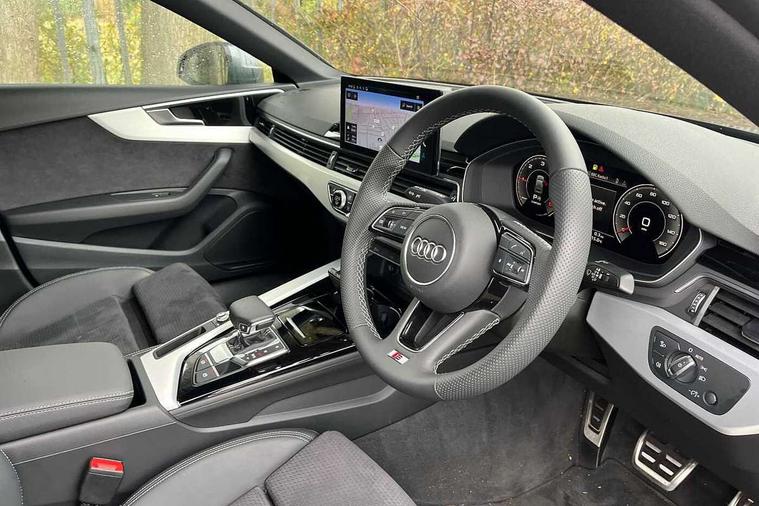 Audi connect safety and service (e-call), Audi drive select (Auto, Comfort, Dynamic, Efficiency and Individual), Audi smartphone interface, Audi virtual cockpit - 12.3" full colour digital instrument cluster, vehicle/engine speed, Radio/media information+Driver assistance systems, Automatic start-stop system with coasting functionality and efficiency programme, Bluetooth interface, Camera based traffic sign recognition, Electro-mechanical power steering, Email, calendar and text messages displayed via MMI, Front and rear parking sensors, Lane departure warning, MMI nav+ with MMI touch - 10.1" high resolution MMI display, touch sensitive, 3D map, route/country info, dynamic route guide, personal route assist, Power operated tailgate, Rear view camera, Service interval indicator, Voice control system, Diesel particulate filter, Sports suspension lowered by 23mm, 8 passive loudspeakers, CD player, DAB digital radio reception, Two additional USB ports for rear passenger in rear centre console, Two SDXC card slots, Auto dimming door mirrors, Auto dimming rear view mirror, Body colour bumpers, Body colour door handles, Body colour front spoiler lip, Body colour side sill trim, Body coloured door mirrors, Electric adjustable heated door mirrors, Electric folding door mirrors, Electric front windows, Front fog lights, Honeycomb structure radiator grille in grained matt black, Kerb-view function for passenger side, LED headlights and rear lights with LED daytime running lights, LED side indicator lights integrated into door mirrors, LED third brake light, Matt aluminium silver tailpipe trim, Privacy glass, Rain and light sensors, Rear side wing doors, Rear wiper, S line badges on front wings, S line front and rear bumpers with side skirts, S Line rear diffuser in matt anthracite black with trim strip in matt aluminium silver, Side air inlets in grained matt black with matt aluminium silver inlay, Variable front intermittent wipers, Windscreen with acoustic glazing, 3 seat bench in 2nd row, 3 spoke high multifunction leather sport steering wheel with paddle shfit and S badging perforated leather grips, 4 way electric lumbar support for driver and front passenger, 40/20/40 split folding 3 seater rear bench seat, Adjustable steering column, Black cloth headlining, Black perforated leather gearknob, Contrast stitching on seats, steering wheel and gear lever gaiter, Deluxe 3 zone electronic climate control, Front centre armrest, Front head restraints, Front/rear floor mats, Heated front seats, Illuminated door sill trim with S logo, ISOFIX child seat mounting and top tether, Luggage compartment mat, Manual seat adjustment, Rear centre armrest, Rear headrests, Single front passenger seat, Stainless steel pedals and footrest, Sunvisors with vanity mirrors, LED interior light pack - A5/RS5, 3x3 point rear seatbelts, 6 airbags - Driver, front passenger, curtain and side airbags, Attention and drowsiness assist, Electromechanical parking brake, Electronic Stabilisation Control (ESC) including ABS, ASR and EDL, Front passenger airbag deactivation, Height adjustable front seatbelts, Hill hold assist, Manual child lock in rear doors, Multi collision brake assist, Pop-up bonnet for pedestrian protection, Pre sense city, Seatbelt monitoring, Tyre pressure warning, Variable restraint system, Warning triangle and first aid kit, Anti theft alarm system, Anti theft wheel bolts, Immobiliser, Keyless Go, Remote central locking, Matt brushed aluminium inlays, Tool kit, Tyre repair kit,