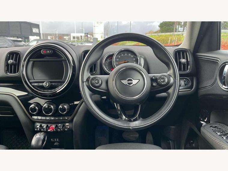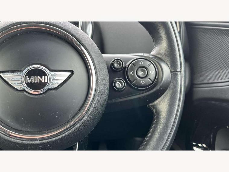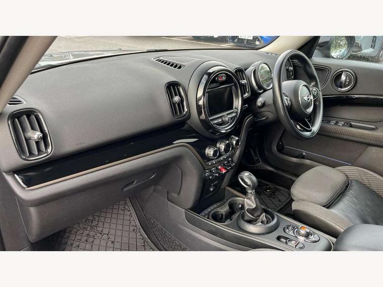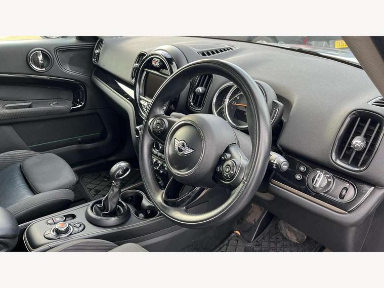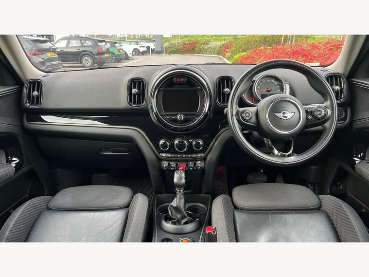 Brake pad wear indicator warning light, DTC - Dynamic traction control, Exterior temperature gauge, Intelligent emergency call, MINI TeleServices, Navigation system, On board computer, Personal Profile, Service interval indicator, Servotronic speed sensitive power steering, Electronic differential lock, Auxiliary input socket, DAB digital radio module, MINI Connected, MP3 compatible radio/single CD player, Radio visual boost, Anti dazzle rear view mirror, Blue tinted glass, Chrome door handles, Chrome exhaust tailpipe, Chrome headlight surround, Chrome plated radiator grille, Chrome window surround, Electric front windows + one touch + anti-pinch, Electrically adjustable door mirrors, Follow me home headlights, Heated door mirrors/heated windscreen washers, Heated rear window with automatic switch off, Metal look door sill finishers, Rain sensor including auto headlights activation, Rear wiper, Roof spoiler, White indicator lights, 12V power point front, 2 cupholders in front centre console, 4 lashing points to secure luggage, 40:20:40 split folding rear seats, Centre console storage box, Chrome interior door handles, Driver/passenger sunvisors, Front and rear headrests, Front and rear Isofix child seat preparation, Front and rear velour floor mats, Front centre armrest with storage compartment, Front interior light, Front passenger grab handle, Front seat backrest storage nets, Heater with recirculation function, Height/reach adjust steering wheel, Luggage compartment lighting, Multifunction steering wheel, Rear grab handles, Sensatec gearshift and handbrake, Storage compartments in doors, Toolkit in luggage compartment, Interior lights pack - Countryman, MINI Excitement Pack - Countryman, 3 point automatic seatbelts, 3 point seatbelts on all rear seats, ABS, Cornering brake control (CBC), Crash Sensor - activates hazard/interior lighting + unlocks doors, Driver and passenger airbags, Driver and passenger side airbags, DSC - Dynamic Stability Control, Electronic brake force distribution, Electronic parking brake, Front curtain airbags, Front passenger airbag deactivation, Fuel cut off safety device, Hill start assist, Pyrotechnically pre-tensioned front seatbelts, Tyre pressure warning, Automatic door locking, Keyless Start, Locking wheel bolts, RF remote control central locking, Second remote key, Thatcham category 1 alarm + immobiliser,