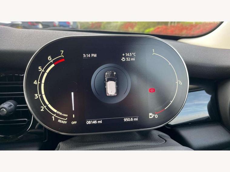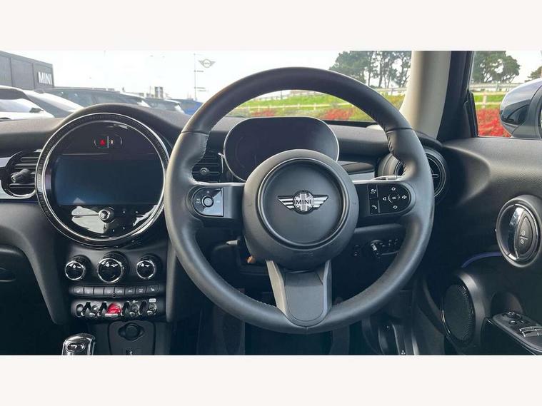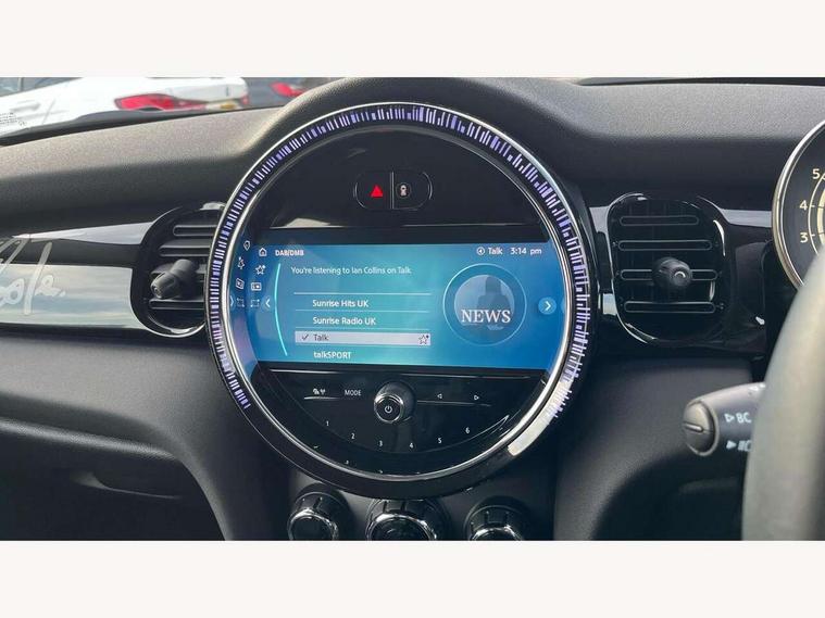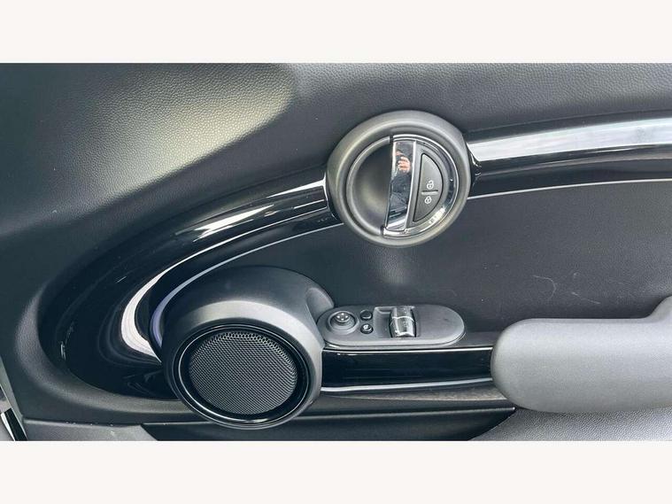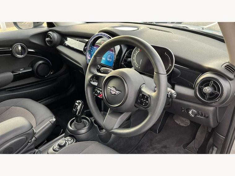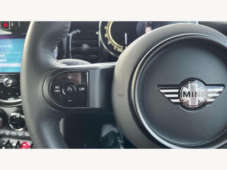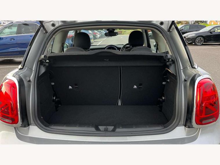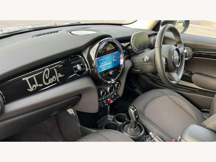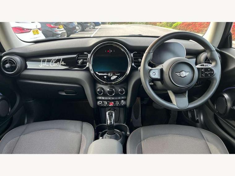 Apple CarPlay, Automatic start/stop function with brake energy recuperation, Compatible mobile phone bluetooth with audio streaming, Cruise control with brake assist, Electro-mechanical speed dependant steering assistance, Flexible car sharing preparation, Instrument cluster, Mini E-call, MINI TeleServices, On board computer, Service interval indicator, Double Vanos system, Fully variable valve control, High precision injection, Performance Control, Steptronic transmission with double clutch, 8.8" touchscreen with LED ring, FM tuner and DAB digital radio, 3rd brake light, Automatic headlight activation switch, Body colour fuel filler cap, Chrome border high gloss black slats radiator grille, Dynamic brake lights, Electric front windows, Exhaust tailpipe on left with chrome finisher, Heated rear window, Heated windscreen washer jets, LED headlight with closed ring and daytime driving lights, Metal door sill strips with MINI imprint, Model logo Cooper on right of tailgate, Rain sensor window wipers, Rear fog lights, Rear LED lights with union jack design, Rear window wiper, Side scuttle panel with integrated indicator, Sun/heat protection glass, White indicator lenses, 12V Accessory socket in centre console, 2 seat bench in 2nd row, 4 lashing eyes in luggage compartment, 60/40 split folding rear seat, Ambient lighting, Carbon black colour line - Knee roll and door armrest, Chrome interior highlights, Cupholders, Front and rear head restraints, Front and rear isofix with front passenger airbag deactivation, Front floor mats in velour, Glove compartment, Height and length steering column adjustment, Interior lighting with 12 different colours across the dashboard, underneath door bezel with illuminated laser-engraved design on central display, Leatherette gearshift lever and handbrake gaiters, LED reading lights, vanity mirror lights, front foot well light and spotlight on front seats, Manual air conditioning, Mechanical seat adjustment - forward/back & backrest for front seats and driver seat height adjust, Multifunction steering wheel, Passenger seat height adjuster, Satellite grey headlining including grab handles and clothes hooks, Single front passenger seat, Sport leather steering wheel with speed limiter and audio/communication controls, Storage compartments in doors, Sunvisors with vanity mirrors, 3 point seatbelts on all four seats, 6 Airbags - front, side, head and seat belt tensioners, Anti-lock braking system (ABS), DSC - Dynamic Stability Control, Front and rear disc brakes, Single tone fanfare horn, Tyre pressure monitoring system, Alarm system with tilt sensor, monitoring doors, bonnet interior and tailgate, Electronic vehicle immobiliser, Start/stop toggle with keyless go, Piano black interior trim, Tool kit, Tyre repair kit,