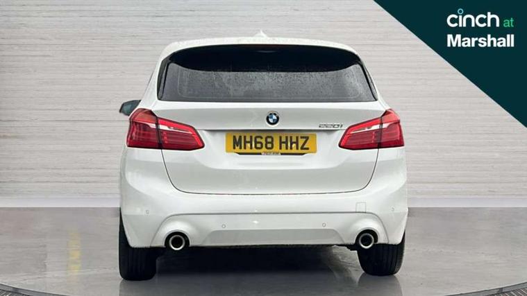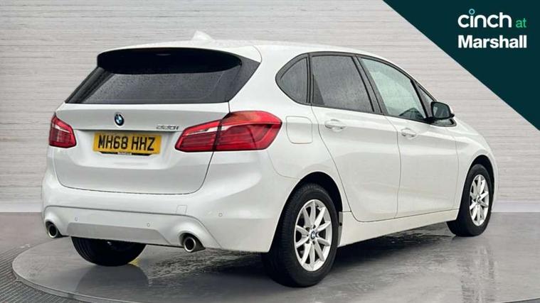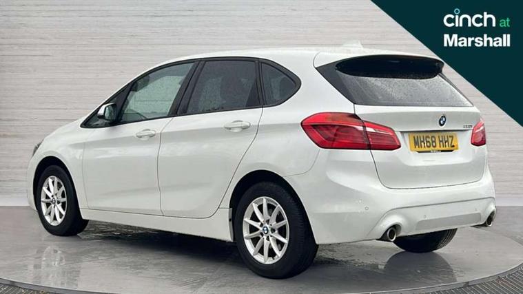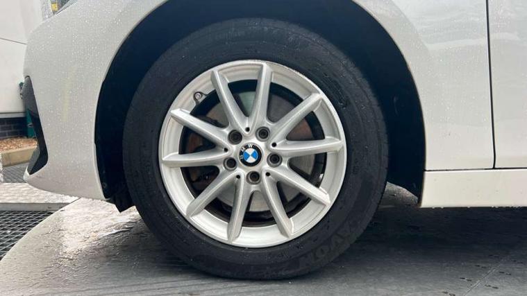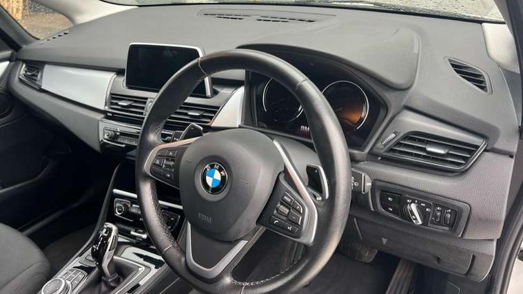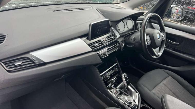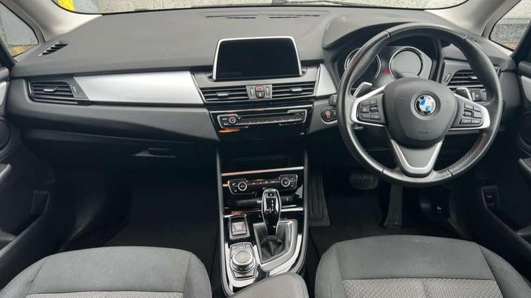 Active Guard incl speed limiting and lane departure functions with auto steering, and front collision warning with brake intervention, Attentiveness assist, Automatic tailgate operation, BMW Online services, BMW remote services, BMW Teleservices, Brake pad wear indicator in front and rear, Check Control warning system for monitoring of lights and door/luggage compartment open warning, Cruise control with brake assist, Instrument cluster with speedometer with miles per hour read out, tachometer and fuel gauge, Lights on warning by audio warning signal when ignition is switched off, On board computer - average speed+fuel consumption, service interval, clock/date, odometer/trip meter, outside temperature display and ice warning, Personal Profile - automatic lock when driving away selectable, Service interval indicator, Speed limiter, Drive performance control with ECO PRO comfort + sport mode, Dual clutch sport automatic transmission, Electronic differential lock, Intervention on the front axle when DSC deactivated, 2x USB sockets in front, BMW professional radio/CD/MP3, DAB Digital radio, Body colour - front and rear bumpers, door handles, mirror caps, roof mouldings, Chrome kidney grille with black vertical slats, Clear lenses direction indicator lights, Direction indicator side lights integrated exterior mirrors, Dynamic brake lights, Electric windows - front and rear, with open/close fingertip control, anti-trap facility and comfort closing, Electrically adjustable door mirrors with aspheric on driver side, convex on passenger side with integrated indicators, Follow me home headlights, Front and rear bumper system, Front black door sill finishers with BMW designation, Green tinted heat protection glazing, Halogen headlights, Headlight beam throw control, Heated windscreen washer jets, High level third brake light, LED daytime running lights, LED front fog lights, Lightweight engineering, Rain sensor including auto headlights activation, Rear fog lights, Rear window aerial, Rear window wiper integrated under roof spoiler, Reversing light in rear light cluster, Shark fin antenna, Twin chrome exhaust tailpipes, Visible VIN plate, Welcome lighting, 12V power socket in centre console + front with blanking plug, Automatic two zone climate control air conditioning, Central locking switches for door, fuel filler cap and luggage compartment, Child seat ISOFIX attachment for two outer rear seats and front passenger seat with anchorage points, Four grab handles integrated in roof lining, Front and rear side armrest integrated into door trim, Front armrest, Front head restraints, Glovebox with light, Interior lighting, front centre over interior mirror and rear centre automatic interior light activation when door is opened, Luggage compartment access via BMW roundel, Luggage compartment lighting, Multi-function controls for steering wheel, Rear centre armrest, Steering wheel column manual adjustment, Sunvisors with vanity mirrors and ticket pocket, Three rear headrests, Three spoke sport leather steering wheel, Two cupholders, Velour floor mats, Extended storage pack - 2 Series Active/Gran Tourer, 3 point seatbelts on all seats, front pyrotechnic belt tensioners, stopper and belt force limiters, rear coded belt buckles, Airbag - Front driver and passenger, front and rear head, front side, curtain head protection, manual deactivation of front passenger airbag possible, Anti lock braking system (ABS) with brake assist, Battery safety cut-off, BMW emergency call, Brake drying, Brake energy regeneration, Braking lock, Braking readiness, Child proof locking system in rear door, Crash Sensor - activates hazard/interior lighting + unlocks doors, Dynamic stability control + (DSC+), Dynamic Traction Control - DTC, Electrically operated hand brake, Front ventilated disc brakes, Hill start assist, Rear disc brakes, Seat belt security check for driver and front passenger, Seatbelt warning, Side impact protection, Twin horns, Tyre pressure monitoring system, Warning triangle and first aid kit, Locking wheel bolts, Remote control including integrated two key, Thatcham 1 alarm system with remote control and engine immobiliser, Reduced rolling resistance tyres,