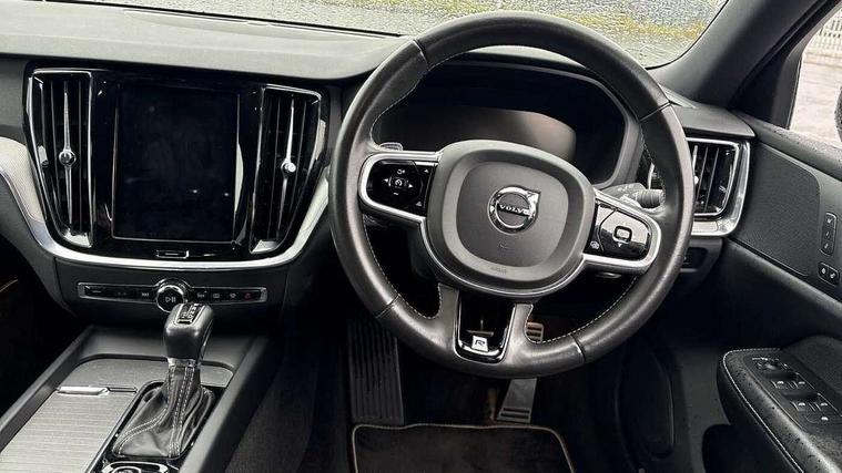 12.3" Active TFT crystal driver's instrument display, 9" centre console touch screen, Adjustable steering wheel force, Bluetooth hands free telephone kit, Drive mode settings, Driver alert control with lane keeping aid, E-call, Information centre, Oncoming Lane Mitigation, Power operated tailgate, Sensus navigation with European mapping and traffic information, Service interval indicator, Speed limiter, Speed sensitive steering, Trip computer, Voice activated control for key functions, Volvo on call, 8 speed automatic transmission with start/stop + manual change functions, DAB Digital radio, Active bending headlights with adaptive shadow technology, Adaptive brake lights with high level LED brake lights, Auto dimming interior mirror, Automatic headlight levelling system, Automatic LED Headlights + Active high beam incorporating daytime running lights, Body colour bumpers, Colour coordinated auto folding and heated power door mirrors, Dark tinted windows for rear side windows and cargo area, Dual integrated exhaust pipes with high gloss black surround, Headlight cleaning system, High gloss black door mirrors and window surround, High gloss black mesh front grille with silk metal surround, Home safe and approach lighting, Integrated roof rails in high gloss black, LED front fog lights with static cornering light function, Power front and rear windows, R Design tread plates, Rain sensor with automatic windscreen wiper activation, Rear side wing doors, Rear wiper, Roof antenna, Roof spoiler, Visible VIN plate, 12V socket in cargo area, 12V socket in front + rear tunnel console, 2 zone electronic climate control with Clean zone air quality system + pollen filter, 3 seat bench in 2nd row, A-pillar parking ticket holder, B Pillar ventilation, Black headlining, Bright metal luggage compartment threshold, Cargo load hooks, Centre console cupholders and storage, Contour sports seats with nappa leather/textile upholstery, Extended front seat cushions, Front footwell illumination, Front head restraints, Front reading lights + Theatre lighting and centre armrest storage illumination, Front/rear door pockets and front cupholder illumination, Glovebox compartment with illumination, Heated front seats, Height/reach adjustable steering column, High gloss black steering wheel remote infotainment controls, Illuminated vanity mirrors + ticket holder, Isofix attachments on rear seats, Leather sports steering wheel with gearshift paddles, Load cover, Load protection net, Lockable glovebox, Lockable load floor, Luggage compartment illumination, Multi directional lumbar support, Multicolour theatre lighting and puddle lights, Nappa Leather Key Integrated Remote, Power driver seat with memory + exterior mirrors memory, Rear armrest with storage + cupholders, Rear footwell and side step illumination, Rear head restraints, Single front passenger seat, Sport leather gear knob, Sports floor mats, Sports pedals, Tailgate illumination and ambient door lighting, Underfloor cargo storage, Versatile split folding rear seat - 60/40, WHIPS - Whiplash Protection System, 5 x 3 point seatbelts, City safety with steering support with Pedestrian + cyclist + large animal detection + front collision warning with full auto brake, Dual stage driver/passenger airbags, First aid kit, Hill start assist, IC (Inflatable Curtains) - Full Length, Passenger airbag cut-off switch, Power parking brake with auto hold function, Road sign information display, Run off Road Mitigation, Run off Road Protection, Seatbelt reminder and pretensioners for all seats, SIPS (Side Impact Protection System), SIPS airbags, Slippery road and hazard light alert, Stability and Traction Control with Spin control, Engine Drag Control and Corner Traction Control, Tyre pressure monitoring system, Vehicle deceleration control with Anti-lock Brake System, Electronic Brake Distribution and Emergency Brake Assist, Warning triangle, Anti-theft alarm including immobiliser/volume sensor + level sensor, Key integrated remote control central locking + fuel flap with deadlocking system and auto open/close power windows, Keyless drive (incudes keyless entry and start) with remote tag and handsfree tailgate open/close, Keyless Start, Locking wheel nuts, Private locking for tailgate, Metal mesh inlays,