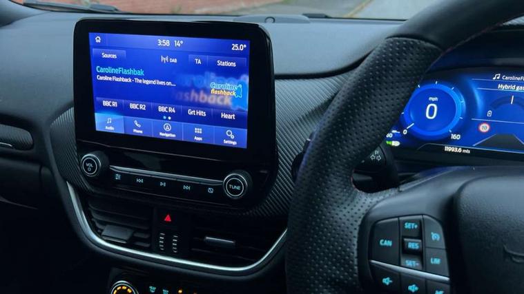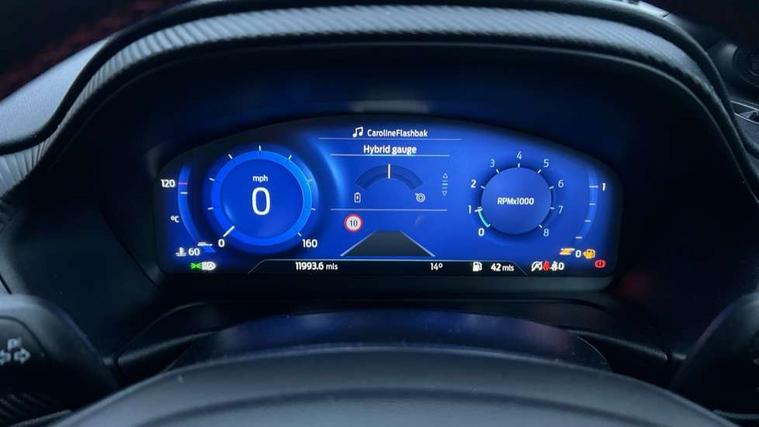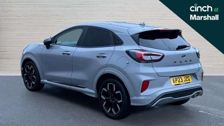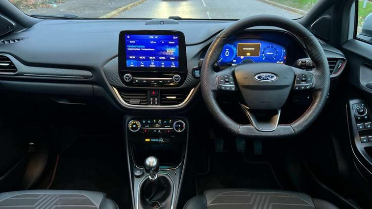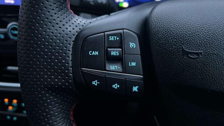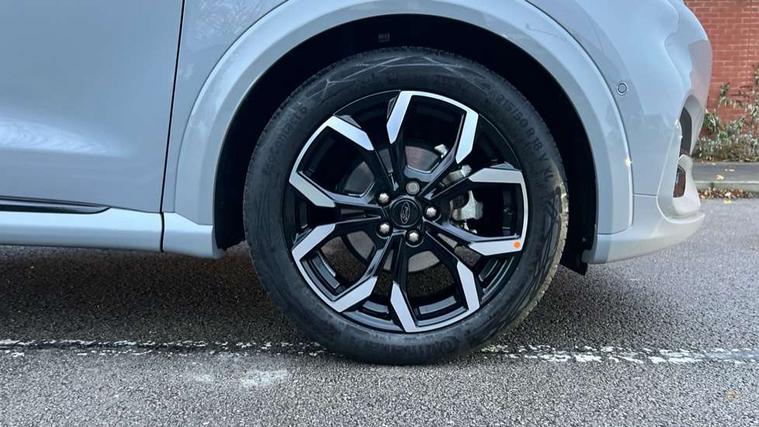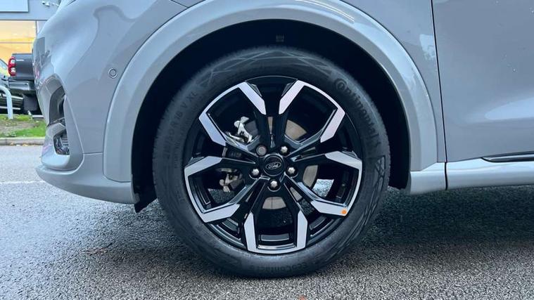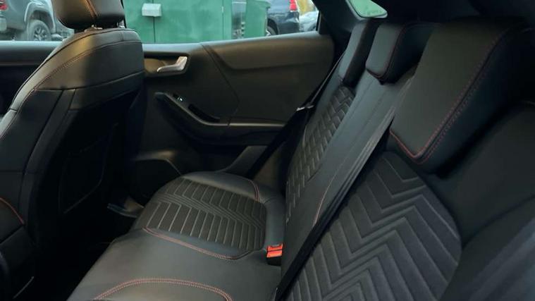 Driver impairment monitor, Emergency call service, Ford easy fuel, Full digital 12.3" instrument cluster, Lane keeping aid with lane departure warning, Power assist steering, Power start button, Rear parking sensor, Selectable drive modes(Normal, sport, Eco, trail, slippery), Speed sign recognition, Sport suspension, Automatic headlights with auto high beam, Automatic rain sensing wipers, Front fog lamps, LED daytime running lights, LED rear lamps, Power foldable heated door mirrors with puddle lamps, Privacy glass to side rear windows and tailgate glass, Quickclear heated windscreen, Rear side wing doors, Rear wiper, ST-Line body styling kit with unique grille and large body colour rear spoiler, Third brake light, 3 seat bench in 2nd row, Centre console with armrest and stowage, Ford megabox extended bootspace, Front and rear head restraints, Front floor mats, Manual 4 way driver seat adjust with lumbar adjustment, Manual 4 way passenger seat with lumbar seat adjustment, Sensico partial premium upholstery, Single front passenger seat, ST-Line flat bottomed sensico leather steering wheel with leather handbrake and aluminium gear knob, Wireless charging pad with electronic air temperature control (EATC), B&O Premium Audio system + Ford SYNC 3 navigation pack - Puma, 3 rear seatbelts, Child safety lock, Electronic stability control (ESC) and hill start assist, Pedestrian/cyclist detection & post-collision braking, Pre collision assist system, Tyre pressure monitoring system (TPMS), Thatcham alarm, Carbon look interior deco spears,