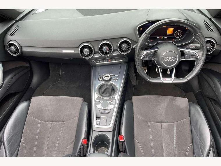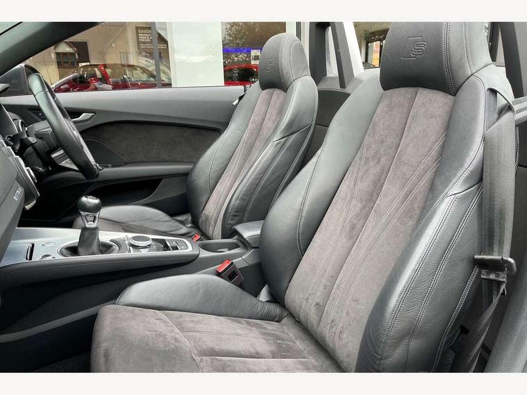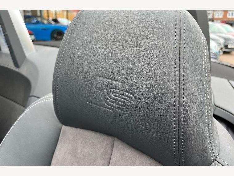 Audi drive select, Audi virtual cockpit - 12.3" high-resolution LCD display with fully customisable instrument cluster, Cruise control + speed limiter, MMI touch panel, Mobile phone preparation with bluetooth interface, Progressive power assisted steering, Seat belt microphone, Service interval indicator, Audi music interface, Auxiliary input socket, Bluetooth audio streaming, DAB Digital radio, MMI Radio with CD player and SD/XC card slot, Auto headlight range control, Automatic coming/leaving home lighting function, Body colour bumpers, Body colour door mirrors, Electric front windows, Fully automatic acoustic hood, Green tinted heat insulating glass, Headlight wash system, High gloss black front grille, LED daytime running lights, LED rear lights, Rain and light sensors, Rear diffuser, Retractable rear boot spoiler, S Line body styling, 3 spoke leather multifunction sports steering wheel, Aluminium door sill trims, Electric lumbar support, Extended aluminium look with stainless steel pedals, Front centre armrest, Front head restraints, Front passenger seat isofix location point, Height/reach adjust steering wheel, Perforated leather gearknob, Top tether anchor plate for isofix child seat, 3 point front seat belts, ABS, ASR traction control, Curtain airbags, Driver/Front Passenger airbags, EDL traction control, Electromechanical parking brake, ESP, First aid kit, Front passenger airbag deactivation, Front side airbags, Head airbags, Roll over bars, Seatbelt warning, Tyre pressure warning, Warning triangle, Anti theft alarm, Immobiliser, Keyless Start, Locking wheel bolts, Remote central locking, Matt brushed aluminium inlays, Tyre repair kit,