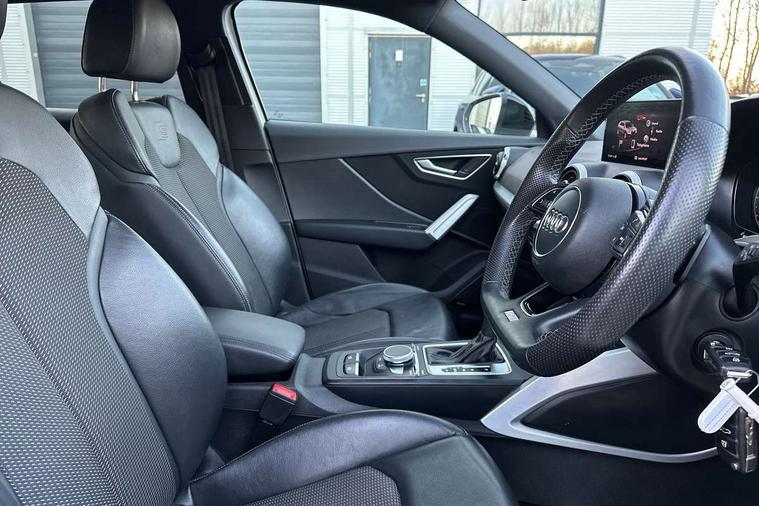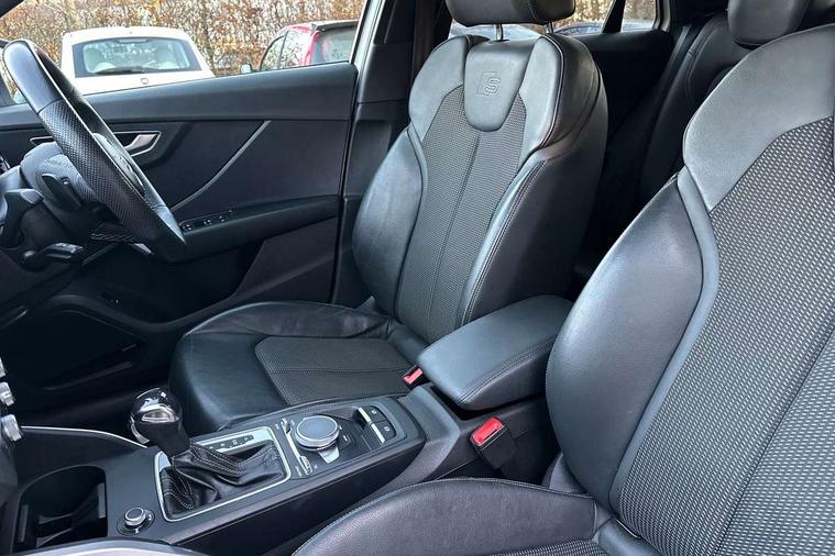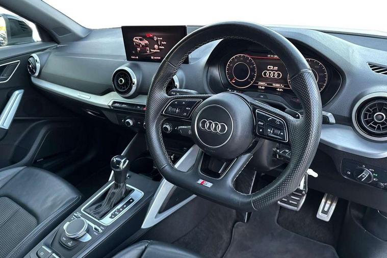 Audi connect navigation and infotainment includes innovative services, Audi connect remote and control connects your vehicle to your smartphone, Audi drive select, Audi drive select - Power steering assistance + engine + gearshift, Audi drive select with efficiency, Audi smartphone interface, Audi virtual cockpit, Automatic start/stop system with recuperation, Bluetooth interface includes bluetooth audio streaming, Cruise control, E-call, MMI navigation plus with MMI touch, Power operated tailgate, Progressive steering, Rear parking sensors, 2 x SDXC card reader, 8 passive loudspeakers, DAB Digital radio, DVD Drive, Auto dimming rear view mirror, Black window trims, Bumper in full body colour paint finish, Electrically adjustable, folding, auto dimming and heated door mirrors with integrated LED side indicators, Front windscreen with grey tinted sunband, LED daytime running lights, LED headlights with LED rear lights, LED third brake light, Privacy glass - dark tinted rear and rear side windows from B-pillar backwards, Rear side wing doors, Rear wiper, Variable front intermittent wipers, Wheel arch trims in manhattan grey, 12V socket in front, 3 seat bench in 2nd row, 3 spoke flat bottomed multi-function leather sport steering wheel with gear shift paddles, 4-way electric lumbar support for front seats including seat height adjustment for both front seat, 60/40 split folding rear seat bench, Black cloth headlining, Front and rear head restraints, Front centre armrest, Front/rear floor mats, Height/reach adjust steering wheel, Illuminated door sill trims with S logo, ISOFIX child seat mounting for front passenger with airbag deactivation and outer rear seat including top tether attachment point for outer rear seats, Single front passenger seat, Stainless steel pedals, Black styling pack - Q2, 3x3 point rear seatbelts, 6 airbags - Front, curtain and front side airbags, Electromechanical parking brake, Electronic stabilisation control including ABS, ASR and EDL, Hill hold assist, Pre-sense front with pedestrian recognition, Seatbelt monitoring, Tyre pressure warning light, Warning triangle and first aid kit, Anti theft alarm, Anti theft wheel bolts, Electronically operated child locks, Remote central door locking, Aluminium interior element, Matt brushed aluminium trim inlays, Tool kit,