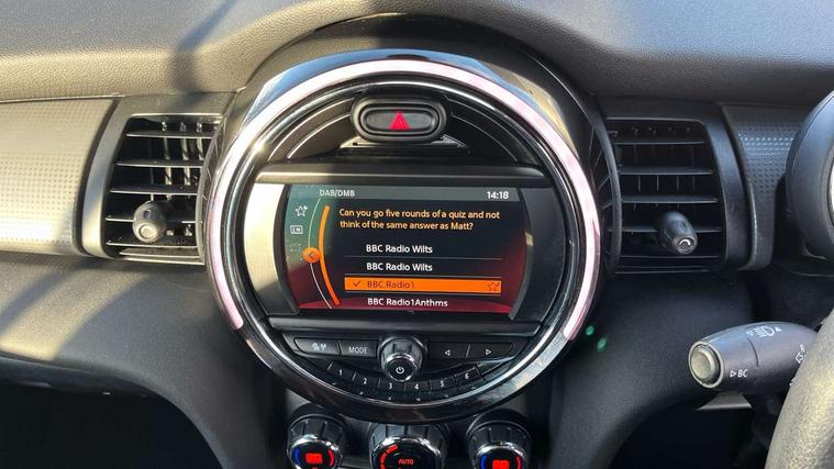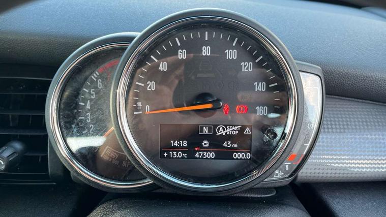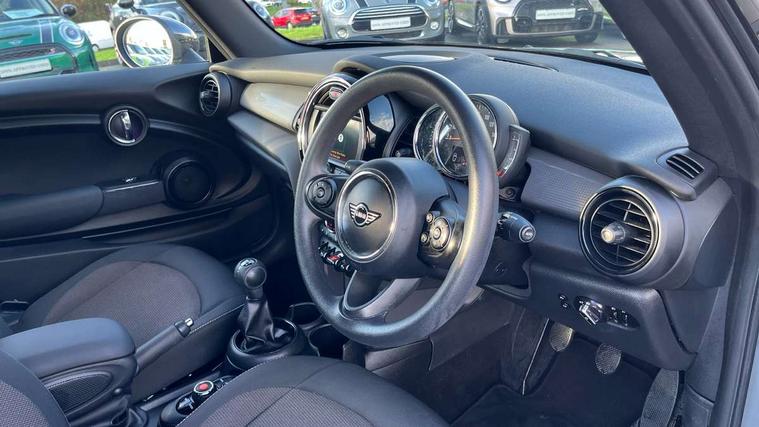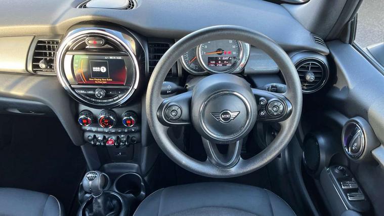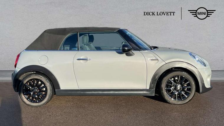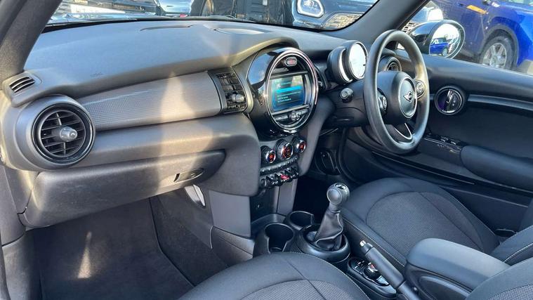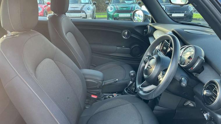 Automatic start/stop function with brake energy recuperation, Compatible mobile phone bluetooth with audio streaming, Electro-mechanical speed dependant steering assistance, Gear change indicator, Instrument cluster, Mini E-call, MINI TeleServices, On board computer, Rear park distance control, Service interval indicator, Double Vanos system, Fully variable valve control, High precision injection, 6.5" touchscreen with LED ring, FM tuner and DAB digital radio, Automatic headlight activation switch, Body colour fuel filler cap, Chrome border high gloss black slats radiator grille, Dynamic brake lights, Electric windows, Fully electric black softtop with integrated sunroof functionality, Heated rear window, Heated windscreen washer jets, LED headlight with closed ring and daytime driving lights, Left exhaust tailpipe with chrome finisher, Metal door sill strips with MINI imprint, Model logo Cooper on right of tailgate, Rain sensor window wipers, Rear fog lights, Rear LED lights with union jack design, Side scuttle panel with integrated indicator, Sun/heat protection glass, White indicator lenses, 12V Accessory socket in centre console, 4 lashing eyes in luggage compartment, 50/50 split folding rear seats, Chrome interior highlights, Colour line - Carbon black, Cupholders, Easy Load boot handles, Front and rear head restraints, Front and rear isofix with front passenger airbag deactivation, Glove compartment, Height and length steering column adjustment, Interior lighting with 12 basic colours selectable via toggle switch in roof, Leather gearshift lever and handbrake gaiters, LED reading lights, vanity mirror lights, front foot well light and spotlight on front seats, Manual air conditioning, Mechanical seat adjustment, driver seat height adjust, forward/back and front seats backrest, Mini logo projection on floor from drivers exterior mirror, Multifunction steering wheel, Storage compartments in doors, Sunvisors with vanity mirrors, Tool kit, 3 point seatbelts on all four seats, 6 Airbags - front, side and seat belt tensioners, Active rollover protection, Anti-lock braking system (ABS), DSC - Dynamic Stability Control, Front and rear disc brakes, Hill start assist, Single tone fanfare horn, Tyre pressure monitoring system, Alarm system with tilt sensor, monitoring doors, bonnet interior and tailgate, Electronic vehicle immobiliser, Keyless Go,