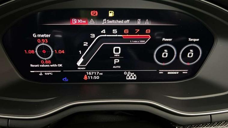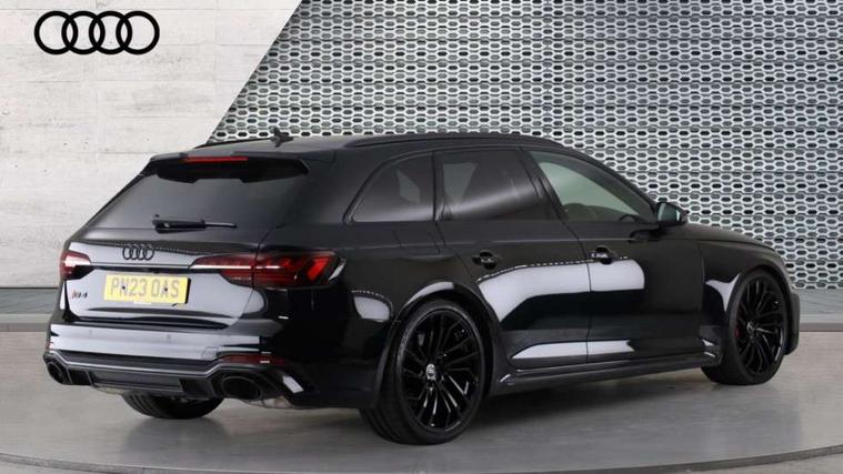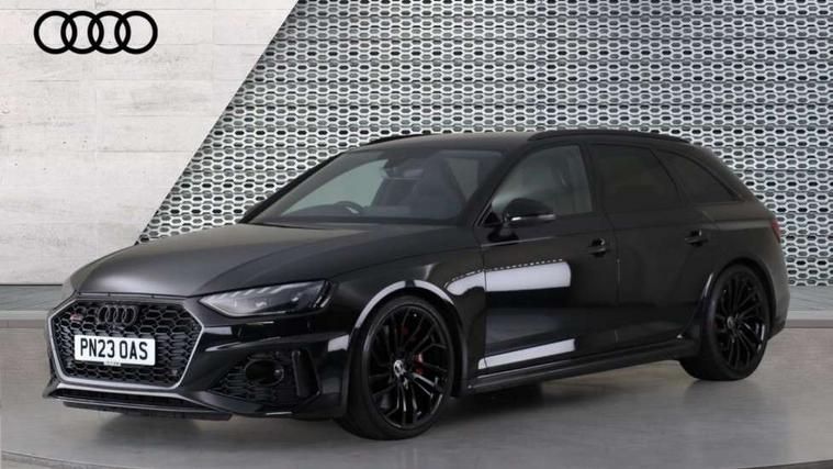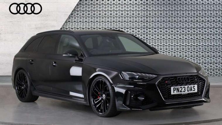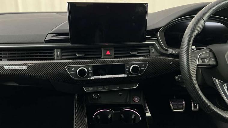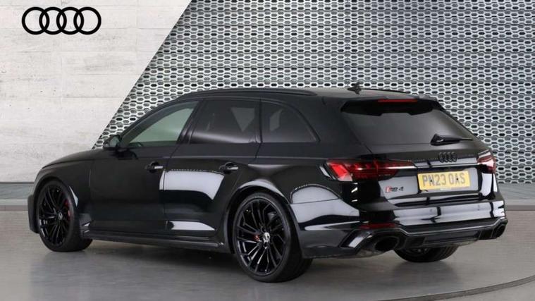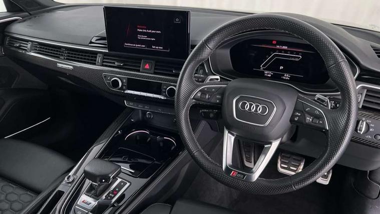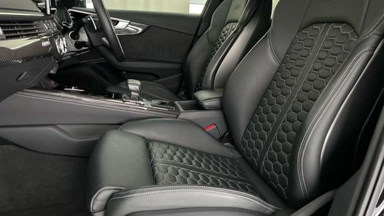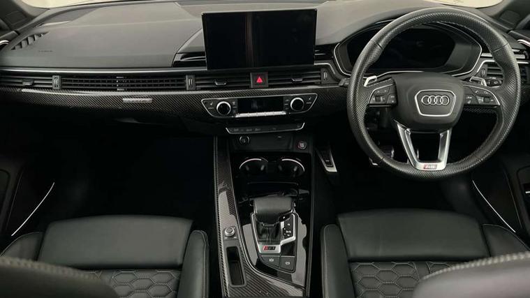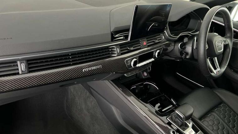 7" Colour driver information system, Amazon alexa Integration, Audi connect safety and service (e-call), Audi drive select, Audi side assist, Audi smartphone interface, Audi virtual cockpit with RS specific display, Automatic start-stop system with coasting functionality and efficiency programme, Bluetooth interface, Electromechanical power steering, Email, calendar and text messages displayed via MMI, MMI Navigation plus with MMI touch includes 10.1" high resolution colour MMI display, 3D map, Power opening/closing tailgate, Service interval indicator, Voice control system, 58 Litre fuel tank, Quattro sports differential, 2 USB charging ports, Audi sound system, DAB digital radio module, 3rd brake light, Acoustic windscreen, Audi Beam uses LEDs to project the RS logo onto ground as you exit your RS4, Audi matrix LED headlights with LED rear lights + dynamic front and rear indicators, Audi rings and lettering glossy black, Auto dimming rear view mirror, Automatic headlights + automatic windscreen wipers, Black roof rails, Blue tinted glass, Body colour door handles, Electric front windows, Electric rear windows, Electrically folding auto dimming/adjustable/heated door mirrors with memory function, LED side indicators and kerb view function for passenger side, Flared front and rear wheel arches, Front bumper with enlarged air inlets, Headlight range control, High beam assistant, High gloss black door mirror housing, High gloss black triangular aperture at rear door, Honeycomb design grille with quattro logo, Lateral air inlets next to front headlights, LED daytime running lights, LED indicators in door mirrors, Privacy glass with rear acoustic glazing, Rain and light sensors, Rear side wing doors, Rear wiper, Roof spoiler, RS 4 badges on grille and rear, RS4 dual branch chrome tailpipes with left and right oval pipes, 3 seat bench in 2nd row, 3 spoke multifunction plus leather steering wheel with heating and RS badging, 40/20/40 split folding rear seats with rear centre armrest, Black cloth headlining, Deluxe 3 zone electronic climate control, Electric load area cover, Electrically adjustable front seats, Fine nappa leather with contrast honey comb stitching + super sports seats with pneumatic massage function, Front centre armrest, Front headrests, Front/rear floor mats, Heated front seats, Height and reach adjustable steering wheel with full size airbag, Illuminated door sill trims with RS4 logo, ISOFIX child seat mounting and top tether, Leather door armrests and knee pad, Luggage compartment carpet, Perforated leather gear lever knob with contrast stitching, Rear headrests, Retractable load area cover, Single front passenger seat, Stainless steel pedals, Sunvisors with vanity mirrors, Carbon black styling pack - RS4, LED Interior light pack - RS4, Non Smokers pack, 3 point seatbelts on all rear seats, Adaptive driver and front passenger airbags, Electromechanical parking brake, Electronic stabilisation control including ABS, ASR and EDL, Enhanced braking system, Front head airbags, Front seatbelt pretensioners + load limiters, Front side airbags, Hill hold assist, Manual child lock in rear doors, Multi-Collision braking, Pop-up bonnet for pedestrian protection, Pre sense city, Rear side airbags, Seatbelt monitoring, Traction control, Tyre pressure warning, Variable restraint system, Warning triangle and first aid kit, Anti theft alarm, Anti-theft wheel bolts, Immobiliser, Keyless Go, Remote central locking, Remote control key with RS emblem, Carbon twill inlays, 20" 5 segment spoke evo design glossy black sport alloy wheels, Tool kit, Tyre repair kit,