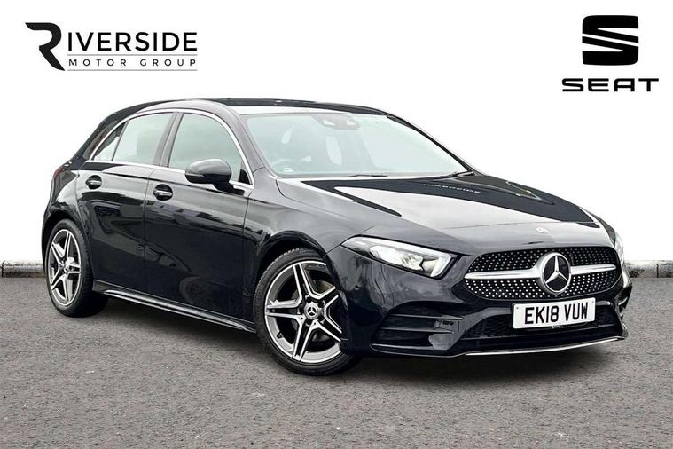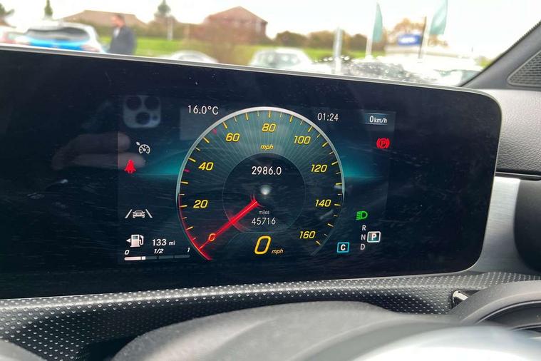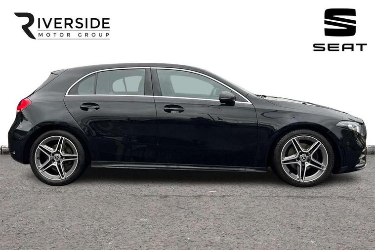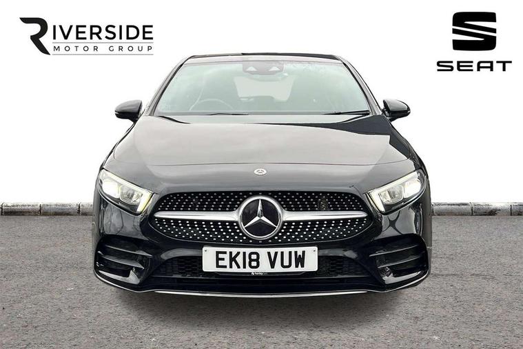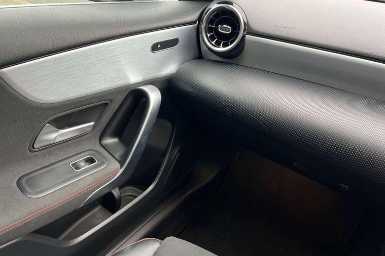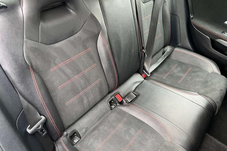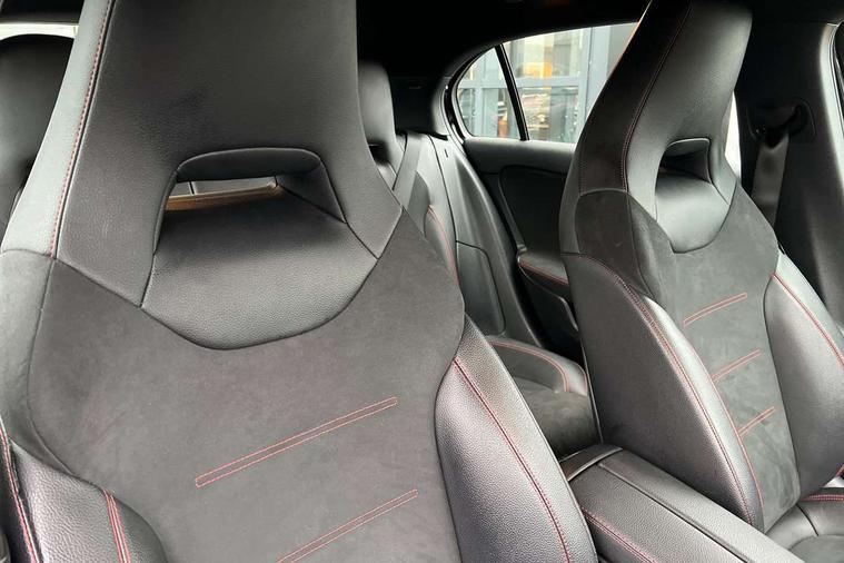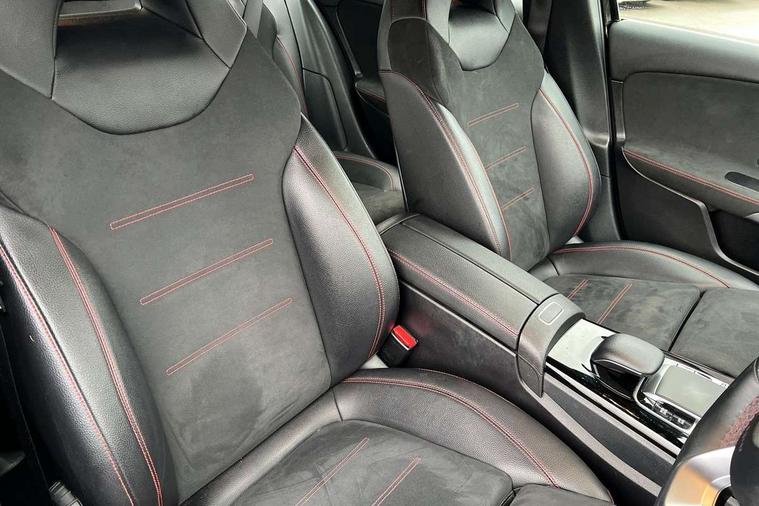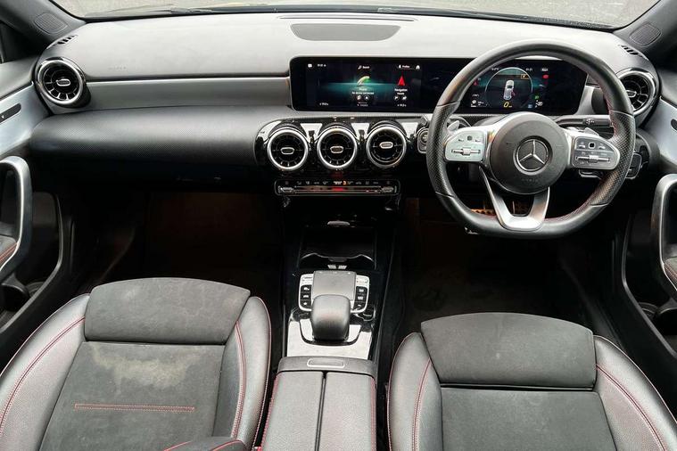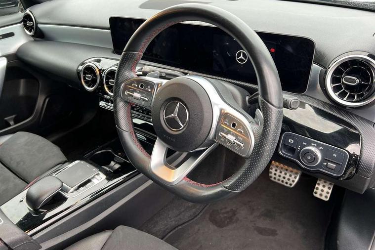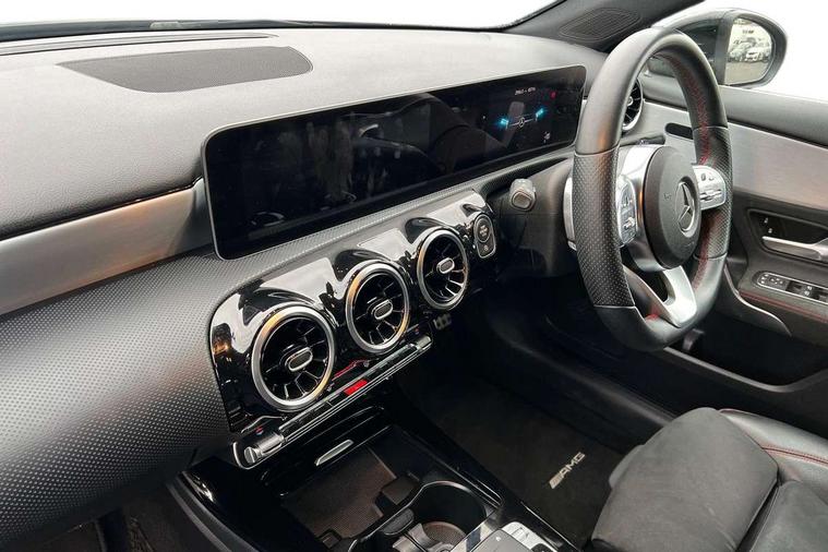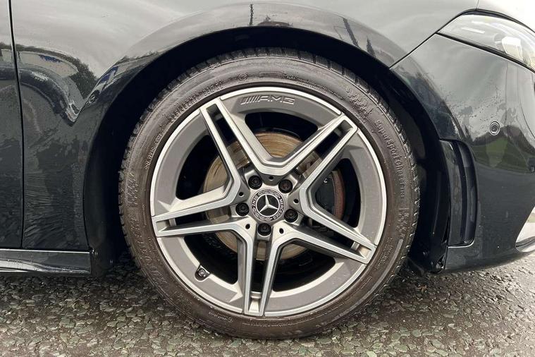 10.25" display screen, Active lane keep assist, Active park assist with parktronic system, Attention assist, Bulb failure indicator, Collision prevention assist plus, Cruise control + speed limiter, DYNAMIC SELECT with a choice of driving modes (ECO, Comfort, Sport, Sport+ and Individual), External temperature gauge, Low fluid warning light, Mercedes connect me with remote online services, Reversing camera, Service indicator (ASSYST PLUS), Speed sensitive power steering, Trip computer, Voice control system, Lowered sports suspension, 2 USB ports in centre console, DAB Digital radio, Multimedia System, SD card slot, Adaptive brake lights, AMG body styling, Auto dimming driver's door mirror, Auto dimming rear view mirror, Body colour bumpers, Body colour door handles, Body colour side skirt, Body coloured door mirrors, Chrome beltline trim, Diamond radiator grille with chrome pins and silver louvre + chrome insert, Electric adjustable heated door mirrors, Electric folding door mirrors, Electric front windows, Electric rear windows, Headlamp assist, Heated rear window with timer, LED daytime running lights, LED Headlights, LED rear lights, Rain sensor windscreen wipers, Rear wiper, Twin Trapezoidal tailpipes, 1/3 to 2/3 split folding rear seats, 12V socket, 3 spoke flat bottomed nappa leather sport steering wheel, AMG floor mats with red stitching, Artico man-made leather/Dinamica upholstery, Auto Mercedes-Benz child seat recognition sensor, Black headlining, Brushed stainless steel sports pedals with rubber studs, Dual zone automatic climate control, Footwell lights, Front and rear reading lights, Front centre armrest with storage compartment, Front door sills with Mercedes Benz lettering, Front head restraints, Front seat backs luggage nets, Front sport seats, Gearshift paddles on steering wheel, Heated front seats, Height adjustable front seats, Height/reach adjustable steering column, Illuminated cup holders, Illuminated glovebox, Illuminated storage compartment, Integrated head restraints, Isofix rear child seat preparation, Load securing rings in luggage compartment, Luggage compartment cover, Multifunction steering wheel, Oddments tray lighting, Rear head restraints, Storage compartment under load area floor, Sunvisors with illuminated vanity mirrors, Twin front cupholders, Seat comfort pack - A Class, 3 rear 3 point seatbelts, ABS with Brake Assist, Active bonnet, Adaptive brake system, Brake calipers with Mercedes-Benz lettering + perforated brake discs, Child proof door locks, Crash responsive emergency lighting, Drivers knee airbag, Dual stage driver/passenger airbags, Electronic parking brake, ESP with ASR, Front and rear seatbelt reminder, Front head airbags, Front passenger seat occupancy sensor, Front side airbags, Hill start assist, Tyre pressure monitoring system, Warning triangle and first aid kit, Window airbags, Alarm system/interior protection/immobiliser, Keyless ignition, Remote central locking, Chrome air vent surrounds, 18" AMG 5 twin spoke light alloy wheels in titanium grey with highsheen finish, Tirefit sealant with electric air pump,