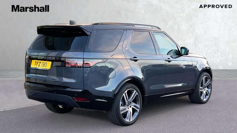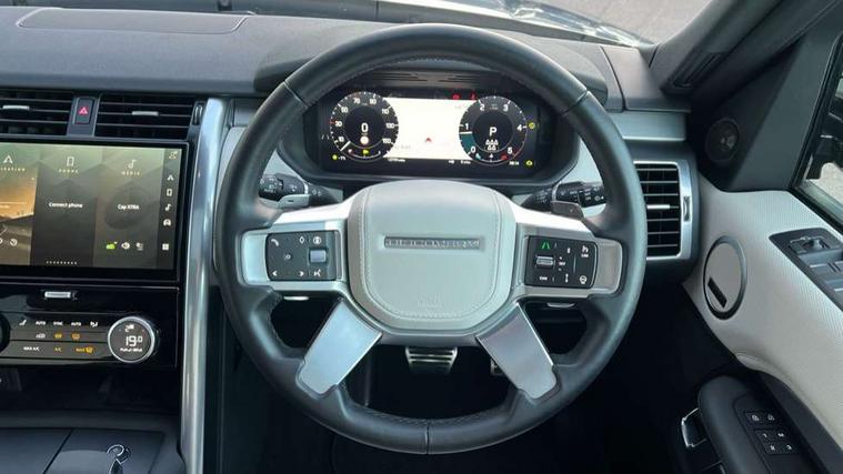 11.4" touchscreen, 3D surround camera, Adaptive cruise control, Android Auto, Apple car play, Blind spot assist, Driver condition monitor, Electric power assisted steering (EPAS), Emergency services call system, Front and rear parking aid, Interactive driver display, Lane keep assist, Power inner tailgate, Power tailgate/boot lid, Push button start, Rear collision monitor, Rear traffic monitor, Remote, Remote boot release, Service interval indicator, Speed proportional steering, Sportshift selector, Stop/start system, Traffic sign recognition with adaptive speed limiter, Trip computer, Wade Sensing, Adaptive dynamics, Dynamic stability control, Electronic air suspension, Front axle open differential, Digital Audio Broadcast radio-DAB, Dynamic volume control, Pivi pro connected, USB/aux input socket, Acoustic laminated windscreen, Animated directional indicators, Auto dimming interior rear view mirror, Automatic headlight levelling, Automatic headlights, Body colour bumpers, Body colour door handles, Centre high mounted stop light, D300 badge, Electric heated/power fold memory door mirrors with approach lights and auto dimming driver side, Electric windows with one touch open/close and anti-trap, Heated rear window, Heated windscreen, LED darkend tail lights, Matrix LED headlights with signature DRL, Narvik black Discovery script, Privacy glass, Puddle lights, Rain sensing windscreen wipers, Rear fog lights, Rear side wing doors, Rear wash/wipe, Trailer stability assist, Variable intermittent wiper, 12V power sockets, 12V USB charging socket in loadspace, 2 seat bench in 3rd row, 3 seat bench in 2nd row, 60/40 electric heated folding rear seats with manual slide and powered recline, centre headrest and armrest, Central hinged twin lidded storage, Configurable cabin lighting, Ebony morzine headlining, Electric adjustable steering column, First and second row door bins, Footwell lights, Front and rear 12V with front USB, Front passenger seat isofix location point, In-facia storage, Isofix child seat preparation for front passenger seat, Leather steering wheel, Loadspace cover, Loadspace Hook, Loadspace light, Lockable glovebox, Lower centre console storage, Luggage tie downs in loadspace, Multi function steering wheel, Overhead lighting console, Premium carpet mats, Rear ISOFIX, Shopping bag hook, Single front passenger seat, Storage glovebox, Sunvisors with illuminated vanity mirrors, Third row storage, Treadplates with metal inserts, Twin front cupholders with cover, USB with 12V socket in centre console, Black exterior pack - Discovery Dynamic SE/HSE, Online pack with data plan - Discovery, 3x3 point rear seatbelts, Anti-lock braking system (ABS), Brake pre-fill technology, Cornering brake control, Curtain airbags, Customer configurable autolock, Driver and passenger airbags, EBD - Electronic brakeforce distribution, Electronic traction control, Emergency brake assist, Emergency braking, ESP, Front side airbags, Gradient acceleration control, Hill descent control, Hill launch assist, Power operated child locks, Rear airbags, Roll stability control, Seat belt reminder, Torque vectoring brake, Tyre pressure monitoring system, Immobiliser, Intrusion sensor, Keyless entry, Locking wheel nuts, Remote central locking, All terrain tyres,