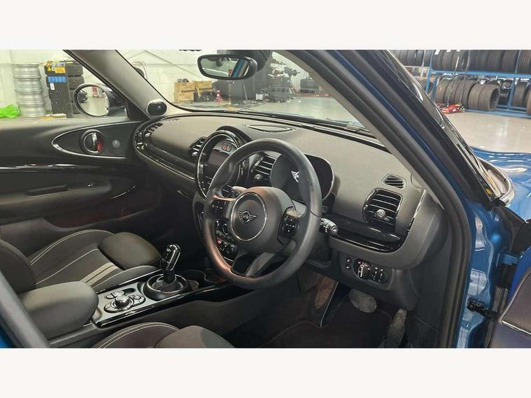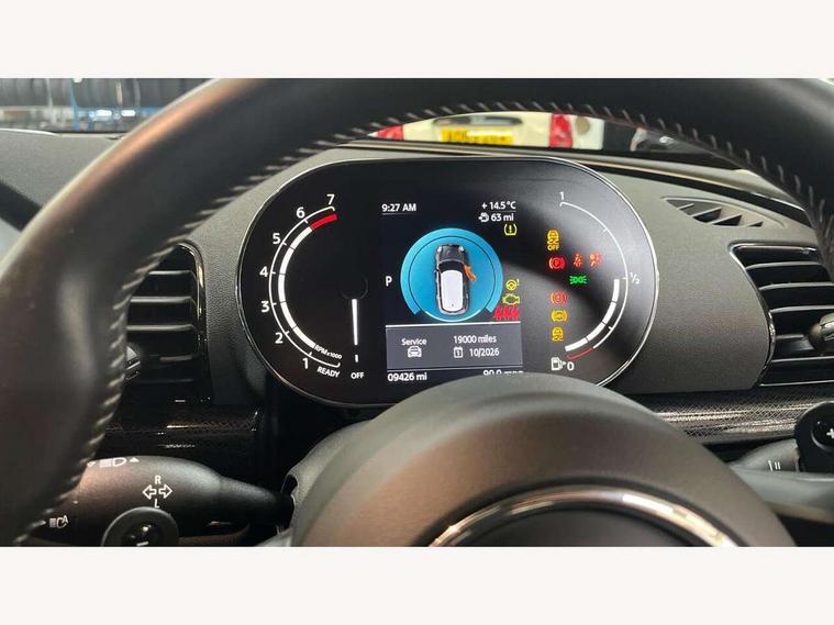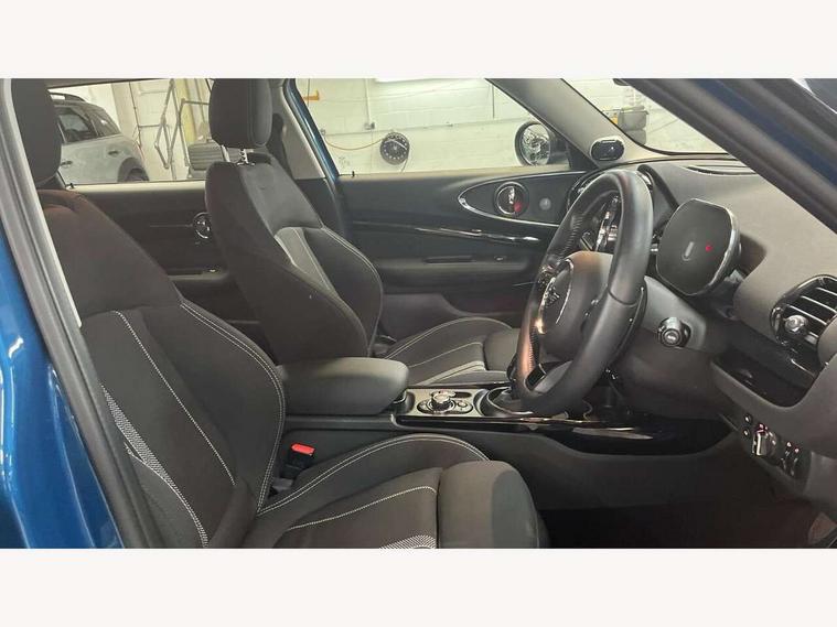 Active Guard incl speed limiting and lane departure functions with auto steering, and front collision warning with brake intervention, Automatic start/stop function with brake energy recuperation, Compatible mobile phone bluetooth with audio streaming, Digital cockpit, Electro-mechanical speed dependant steering assistance, Instrument cluster, Mini E-call, MINI TeleServices, On board computer, Double Vanos system, Fully variable valve control, High precision injection, Performance Control, Steptronic transmission with double clutch, FM tuner and DAB digital radio, Bonnet scoop, Chrome border honeycomb structure radiator grille with S badge, Chrome fuel filler cap, Dynamic brake lights, Electric windows, Heated rear window, Heated windscreen washer jets, LED headlights with closed ring as daytime driving lights, LED rear light with union jack design, Metal door sill strips with Cooper S imprint, Model logo, Model logo on rear doors, Rain sensor with auto headlights, Rear fog lights, Rear window wiper, Side scuttle panel with integrated indicator, Split rear doors, Sun/heat protection glass, Twin exhaust tailpipe, White indicator lenses, 12V Accessory socket in centre console, 3 spoke sport leather steering wheel + limiter function and audio controls, 360L luggage compartment capacity, 4 lashing eyes in luggage compartment, 60/40 split folding rear seat, Chrome interior highlights, Cupholders, English handbook, Front and rear head restraints, Glove compartment, Headliner with grab handles and clothes hooks, Height and length steering column adjustment, Interior lighting with 12 basic colours selectable via toggle switch in roof, Isofix rear child seat preparation, Leather gearshift lever and handbrake gaiters, LED reading lights, vanity mirror lights, front foot well light and spotlight on front seats, Manual air conditioning, Mechanical seat adjustment, driver seat height adjust, forward/back and front seats backrest, Multifunction steering wheel, Storage compartments in doors, Sunvisors with vanity mirrors, Toolkit, Excitement pack - Clubman, Navigation pack - Clubman, 2 tone horn, 3 point seatbelts on all seats, 6 Airbags - front, side, head and seat belt tensioners, Anti-lock braking system (ABS), DSC - Dynamic Stability Control, Electronic handbrake, Front and rear disc brakes, Tyre pressure monitoring system, Alarm system with tilt sensor, monitoring doors, bonnet interior and tailgate, Auto drive away locking, Deadlocking function, Electronic vehicle immobiliser, Locking wheel bolts, Start/stop toggle with keyless go, Tyre repair kit,