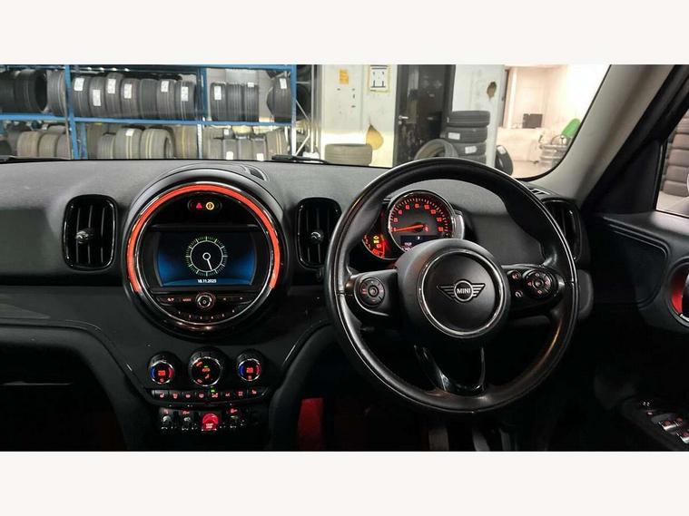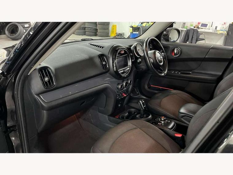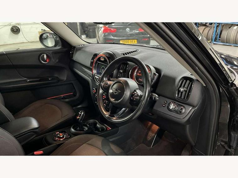 Active Guard incl speed limiting and lane departure functions with auto steering, and front collision warning with brake intervention, Automatic start/stop function with brake energy recuperation, Electro-mechanical speed dependant steering assistance, Instrument cluster, Mini E-call, MINI TeleServices, On board computer, Rear parking distance control, Double Vanos system, Fully variable valve control, High precision injection, Steptronic transmission with double clutch, FM tuner and DAB digital radio, Body colour fuel filler cap, Day time driving lights, Door sill strips, Dynamic brake lights, Electric windows, Heated rear window, Heated windscreen washer jets, Left exhaust tailpipe with chrome finisher, Model logo, Model logo on Tailgate, Radiator grille, Rain sensor with auto headlights, Rear fog lights, Rear window wiper, Side scuttle panel with integrated indicator, Split rear doors, Sun/heat protection glass, White indicator lenses, 12V Accessory socket in centre console, 360L luggage compartment capacity, 4 lashing eyes in luggage compartment, 40:20:40 split folding rear seats, Chrome interior highlights, Colour line - Carbon black, Cupholders, English handbook, Front headrests, Glove compartment, Headliner with grab handles and clothes hooks, Height and length steering column adjustment, Isofix rear child seat preparation, Leather gearshift lever and handbrake gaiters, LED reading lights, vanity mirror lights, front foot well light and spotlight on front seats, Manual air conditioning, Mechanical seat adjustment, driver seat height adjust, forward/back and front seats backrest, Multifunction steering wheel, Passenger seat height adjuster, Rear headrests, Storage compartments in doors, Sunvisors with vanity mirrors, Excitement pack - Countryman, Navigation pack - Countryman, 2 tone horn, 3 point seatbelts on all seats, 6 Airbags - front, side, head and seat belt tensioners, Anti-lock braking system (ABS), DSC - Dynamic Stability Control, Electronic handbrake, Front and rear disc brakes, Hill start assist, Tyre pressure monitoring system, Alarm system with tilt sensor, monitoring doors, bonnet interior and tailgate, Auto drive away locking, Deadlocking function, Electronic vehicle immobiliser, Locking wheel bolts, Start/stop toggle with keyless go, Tool kit,