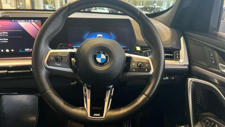 Attentiveness assist, Automatic start/stop function, BMW Live Cockpit Plus with 10.25" instrument cluster and 10.7" display, BMW Operating system 9 with BMW Maps, real-time traffic information, in-car experiences, remote services and smartphone integration, BMW Teleservices, Brake pad wear indicator, Condition based service, Connected eDrive Services, Drive off assistant, Electrically opening/closing tailgate with opening/closing with remote control and contactless opening and closing, iDrive controller, Language version English, My Modes, Parking Assistant with Reversing Assistant, active PDC, Lateral Parking Aid, Rear View Camera and Park Distance Control, Personal Profile - automatic lock when driving away selectable, Servotronic PAS, Tyre puncture warning system, Widescreen display, EU6 emissions management, Larger Fuel Tank, M Adaptive suspension, Performance Control, Petrol Particulate Filter, Steptronic transmission with double clutch and gear shift paddles, xDrive intelligent four wheel drive system, BMW Personal eSim, DAB Digital radio, Badge on engine compartment lid and tailgate, Dynamic brake lights, Electric adjustable heated door mirrors, Electric windows - front and rear, with open/close fingertip control, anti-trap facility and comfort closing, Folding door handles integrated flush with surface, Follow me home headlights, Front and rear bumper panel with M specific design, in body colour with inserts in black high gloss, Front door exit lights, Front entry sills aluminium inserts with M inscription, Heated rear window, High gloss shadowline, Invisible exhaust tailpipe, Key with M identification, LED 3rd brake light integrated in rear spoiler, LED daytime running lights, LED number plate light, M identification on the sides, M roof rails high gloss shadow line, M specific radiator grille in satinated aluminium, Matt black roof strips, Rain sensor including auto headlights activation, Rear side wing doors, Rear wiper, Side sill covers with M specific design in body colour, Trailer stabilisation logic, Windscreen washer nozzle for rear view camera, Windscreen wipers front with heated washer nozzles, 12V - Power sockets with front centre console and luggage compartment, 2 bag hooks in luggage compartment, 2 cup holders in front, 2 x USB Type C ports for charging in front centre console + 2 x USB Type C ports for charging in rear centre console, 3 rear headrests, 3 seat bench in 2nd row, 3 upper retaining strap clips integrated into rear panels of seat backrests, 40:20:40 split folding rear seats, Ambient interior lighting, Anthracite headlining, Anthracite Velour front and rear floormats, Bottle trays in all doors, Child seat ISOFIX attachment for two outer rear seats and front passenger seat with anchorage points, Clothes hook rear, Driver and front passenger heated seats, Dual zone automatic air conditioning, Front and rear door pockets, Front centre console storage compartment, Front/rear adjustable head restraints, Glove compartment, Light on right in luggage compartment, M sport leather steering wheel, Manual steering column height and depth adjustment, Middle centre console storage compartment, One piece parcel shelf opens together with tailgate and removable, Rear armrest in door trim panel, Single front passenger seat, Sport leather multifunction steering wheel with thumbrests and operation of instrument display, audio, telephone and driver assistance, Storage compartment net in left side trim panel, Storage compartment with folding cover under centre console armrest cushion, Storage tray in right side trim panel, Tilt adjustment incl. cargo function of 2nd row of seats, ABS/EBD, Automatic hold function, Automatic Stability Control (ASC), BMW emergency call, Braking readiness, Cornering brake control (CBC), Crash Sensor - activates hazard/interior lighting + unlocks doors, Driver/Front Passenger airbags, Driver/front passenger side airbags, Dry braking, Dynamic brake control, Dynamic stability control + (DSC+), Electromechanical parking brake, Energy recovery system, First aid kit, Front and rear brake discs, Front and rear head airbags, Front passenger airbag deactivation, Integrated brake system, PC iBrake PostCrash approach control warning with light braking function, Rear door child safety locks, Three point seat belts in all seats, Tyre pressure monitor, Warning triangle, Alarm system with tilt sensor, monitoring doors, bonnet interior and tailgate, Closing system with central locking, Locking wheel bolts, Luxury instrument panel, Tyre repair kit (including Tyre sealant and 12V Compressor),