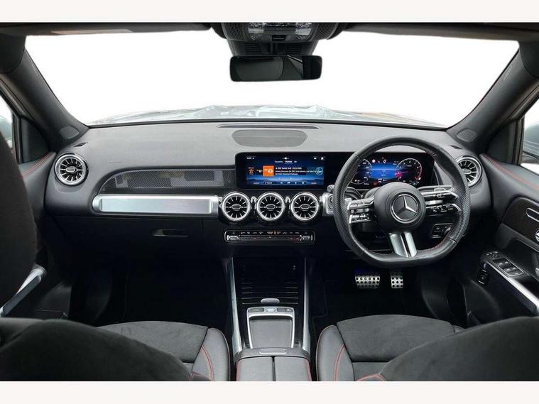 10.25 inch touchscreen central media display, 10.25" Digital instrument cluster display screen, 360 degree camera, Active parking assist with PARKTRONIC, Attention assist - Monitors steering behaviour and long journey fatigue, Blind spot assist, Bluetooth connection, Brake pad wear indicator warning light, Car wash mode, Convenience opening and closing, Direct steering, DYNAMIC SELECT with a choice of driving modes (ECO, Comfort, Sport and Individual), ECO start/stop function, Engine start/stop button, Exit warning function, Fluid level warning indicator for fuel, oil, coolant and washer fluid, Hard disk navigation, Hey Mercedes Voice activation, Lamp failure indicator, Lane keep assist, MBUX augmented reality for navigation, MBUX navigation premium, Mercedes me connect including emergency call system, accident recovery, breakdown management and maintenance, Mercedes me remote services, Outside temperature gauge, Owners manual and service booklet in English, Pre-installation of private car share, Preinstallation for parking damage notification, Radio aerial integrated into front and rear windshields, Remote boot closing, Service indicator (ASSYST), Smartphone integration with Apple CarPlay and Android auto, Speed limit assist, Traffic sign assist, Trip computer in multifunction display with current consumption indicator, Ultrasound sensors - positioned in the handle of the tailgate, Wireless charging, Comfort suspension with ride height lowering, Rear axle multi-link, 1 USB-C port in the oddments compartment (Charge + Data transfer), 2 USB-C ports for the rear on the centre armrest (Charge only), 2 USB-C ports under the front centre armrest (Charge + Data transfer), DAB digital radio tuner, MBUX multimedia system, Mercedes Benz sound system (225 W) with 10 speakers, 1 central speaker, speakers on doors, a tweeter on door, one sub woofer + boost amplifier, Pre installation for Mercedes Benz Link, Adaptive brake lights, Air vents with silver chrome surrounds, AMG front apron with front splitter in the colour of the vehicle with chrome trim element, AMG rear apron with visible tailpipe trim and chrome trim element, AMG specific/dual flow exhaust pipes in chrome (non-functional), Auto dimming rear view mirror, Beltline trim and window line trim strip in high gloss aluminium, Black grained side sill trim with chrome inlay, Body coloured door handles, Electric adjustable and heated door mirrors with integrated LED side indicators, Electric folding door mirrors, Electric panoramic glass sunroof, Front and rear electric windows, Headlamp assist automatic headlamp activation, Heat insulating dark-tinted glass starting from B-pillar, Heated glass rear windscreen + timer control, High level LED third brake light, Illuminated door sill panels with Mercedes-Benz lettering, Interior mirror with black reading lamps and frameless, LED daytime running lights, LED tail lamp, Multibeam LED headlamps and tail lamp with adaptive high beam assist, Polished aluminium roof rails, Radiator grille as a diamond grille with chrome pins and central Mercedes star, Rain sensor windscreen wipers, Rear fog lamp, Rear side wing doors, Rear wiper, Single louvre in matt grey with chrome inserts and black highlights, Two visible tailpipe trim elements exhaust, Ultrasonic sensors - positioned in the front and rear bumpers, Wheel arch liners in the colour of the vehicle, 12V socket in the oddments compartment, 3 seat bench in 2nd row, 3 twin spoke flattened multifunction steering wheel in nappa leather - horizontal twin spoke in high gloss black, vertical twin spoke in silver chrome, 4 way adjustable lumbar support, 40:20:40 split folding rear seats, Air conditioning - Two zone thermotronic luxury automatic climate control with display, AMG floor mats, AMG sports pedals with brushed stainless steel surfaces and black rubber studs, Automatic child seat recognition sensor, Black roof lining, Door handles with chrome inserts, Electrically adjustable front memory seats, Front and rear headrests, Front centre armrest with stowage, Galvanised steering wheel gearshift paddles in silver chrome, Handle recess lighting, Heated front seats, Height adjustable head restraints, Height/reach adjustable steering column, Interior lighting - 64 colour Ambient lighting, Luggage net on driver/front passenger seat backrest, Single front passenger seat, Sports seats, Stowage compartment with retractable cover, Sun visors with illuminated vanity mirrors, Third row of seats for two people on rear seat, Twin front cup holders, Two outer rear seat isofix and top tether child seat fixing points, Easy pack tailgate, Interior lighting with light and sight pack - GLB, Seat comfort package - GLB, 3 rear 3 point seatbelts, Active bonnet pedestrain safety measure which detects an impact and raises bonnet by 65mm, Active brake assist includes forward collision warning system with autonomous braking, Adaptive brake assist with hold function and hill start assist, Airbags - kneebag for driver, Anti-lock braking system (ABS) with brake assist, Black seatbelts, Bonnet with power domes, Childproof locks manually operated for rear doors and electrically operated for rear power windows, Crash responsive emergency lighting, Curve dynamic assist, Driver and front passenger head and sidebags, Driver and front passenger windowbags, Dual stage driver and front passenger airbags, Electric parking brake, Electronic stability programme with acceleration skid control, Front and rear seatbelt reminder, Front brake callipers with Mercedes Benz lettering, Front passenger seat occupancy sensor, Perforated front brake discs, Tyre pressure monitoring system, Warning triangle and first aid kit, Guard 360 degree vehicle protection - Anti theft alarm system, tow away protection with visual, acoustic warning and alarm, Interior monitoring system, KEYLESS GO access and drive authorisation system, KEYLESS-GO starting function, Remote central locking and crash sensor with emergency openi
