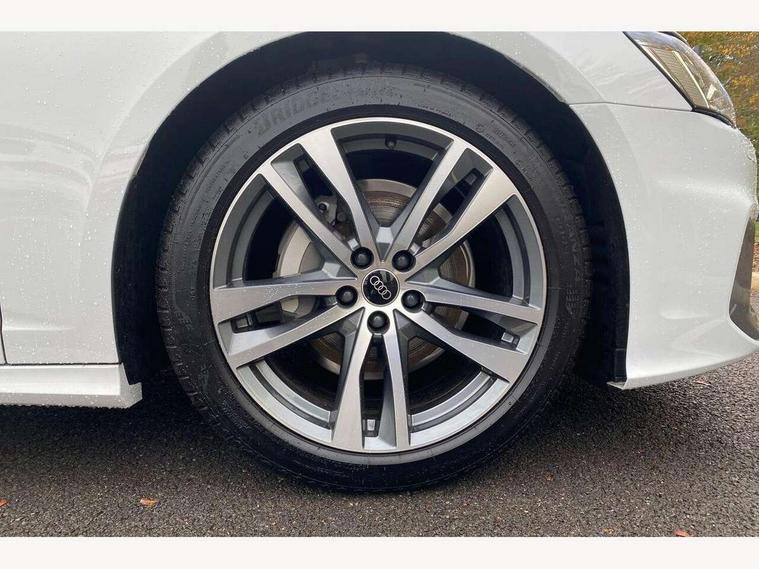 Audi connect safety and service (e-call), Audi connect with Amazon Alexa Integration, Audi drive select, Audi parking system plus - acoustic and visual park assist system for front and rear, Audi virtual cockpit, Automatic start/stop system with coasting functionality, Bluetooth interface, Camera based traffic sign recognition, Electric boot lid release, Lane departure warning system, MMI navigation plus with 10.1" and 8.6" touch screens, Progressive steering, Rear view camera, Service interval indicator, Smartphone interface includes wireless Apple carplay/Android Auto, Voice control system, Sports suspension, Audi front music interface, Audi sound system, Auxiliary input socket, DAB Digital radio, USB connection, Body coloured door mirrors, Electric front/rear windows, Electrically adjustable heated and folding + automatically dimming exterior mirrors with memory function, Frameless auto dimming interior rear view mirror, Front intermittent wipers, Heat insulating darkened glass in side and rear windows, Heat insulating glass in windshield, LED rear lights with dynamic indicators, LED signature front daytime running light, LED third brake light, Matrix LED headlights, Matt black rear diffuser with diffuser strip and tailpipes in chrome, Matt black side air intake grille with inlay in matt aluminium, Privacy glass, Radiator grille in anthracite black matt, single frame in chrome and horizontal struts in matt aluminium silver, Rain and light sensors, Rear boot, Rear side wing doors, 2 zone deluxe electronic climate control, 3 spoke high multi-function perforated leather steering wheel with contrast stitching and shift paddles, 40/20/40 split folding 3 rear seat bench in 3 parts with rear centre armrest, Audi phone box light, Black cloth headlining, Electrically adjustable front seats including seat height, fore/aft position, backrest angle and 4-way lumbar with memory for driver's seat, Front and rear floor mats, Front centre armrest, Front head restraints, Heated front seats, Height/reach adjust steering wheel, Illuminated door sill trims with S logo, Illuminated sun visors with vanity mirrors, Leather gear knob, Rear headrests, Single front passenger seat, Stainless steel pedals and foot rest, Tool kit and car jack, LED Interior Ambient Lighting Pack - A6, Non smoking pack - A6, S line exterior style pack - A6, 3 point seatbelts on all seats, Airbags - Front side, front and rear including head, Audi pre-sense front, EBD - Electronic brakeforce distribution, Electromechanical parking brake, Electronic Stability Control (ESC) including ABS, ASR and EDL, Extended pedestrian protection measures, ISOFIX child seat mounting for front passenger seat and ISOFIX child seat mounting with Top Tether for outer rear seats, Manual child proof rear door locks, Seatbelt monitoring, Tyre pressure warning light, Warning triangle and first aid kit, Anti theft alarm with tow away protection, Anti-theft wheel bolts and wheel loosening detection, Immobiliser, Keyless Go, Remote central locking, Matt brushed aluminium inlays,