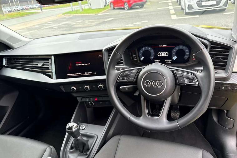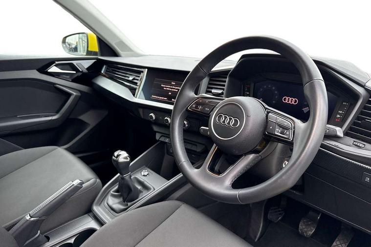 10.25" Digital instrument cluster display classis style instrument dials + speed, odometer, time, outside temperature, telephone menu + fuel level warning, Audi smartphone interface with connect compatible smartphone via USB directly MMI display + Nav, music, third party apps controlled via MMI controller, Automatic start/stop system, Bluetooth interface, Driver's information system, Electromechanical power steering, Emergency e-call, Emergency services call system, Lane departure warning system, Service interval indicator, Speed limiter, Voice control system, Washer fluid level indicator, Dynamic suspension, 1 x SDXC card reader, 2 x USB type C connection points, 6 passive loudspeakers, DAB Digital radio, MMI radio plus with 8.8" colour MMI display screen and MMI touch, Auto dimming rear view mirror, Body coloured bumpers, Body coloured door mirrors, Electric front and rear windows, Electrically adjustable, heated, folding door mirrors with integrated LED side indicator, Front side air inlets with front spoiler lip and rear diffuser in matt black grained, Heat insulating glass windscreen and side windows, Heated rear windscreen, High level LED brake light, LED headlights with LED rear lights + dynamic rear indicators + headlight adjustment and high beam, turning light + LED daytime running lights, Radiator grille in matt black, Rain and light sensors, Rear fog lights, Rear side wing doors, Rear wing door, Rear wiper, 12V socket in centre console with two cup holders, 3 rear seats with headrests, 3 seat bench in 2nd row, 3 spoke leather multifunction plus steering wheel, 40:60 Split folding rear seat or folded fully, Air vents, door handle recesses and centre console in black, Delta cloth upholstery, Driver and passenger seat with manual height adjust with forward and backwards adjustment, Front head restraints, Front passenger seat, Front/rear floor mats, Height and reach adjustable steering wheel, ISOFIX child seat mounting for front passenger and outer rear seats including top tether attachment point of outer rear seats, Leather gear knob with aluminium trim, Leatherette handbrake grip, Luggage compartment light with front and rear reading lights, Manual air conditioning, Titanium grey cloth headlining, Luggage compartment pack - A1, 3x3 point rear seatbelts, Audi pre-sense front with pedestrain and cyclist recognition, Brake assist function, Driver and front passenger airbag with front side and head airbags, Electronic Stability Control including ABS, EBD, ASR and EDL, Front passenger airbag deactivation switch, Hill hold assist, Manual rear child locks, Seatbelt height adjustment for front seats, Seatbelt monitoring, Tyre pressure warning light, Warning triangle and first aid kit, Anti theft alarm, Anti theft wheel bolts and loose wheel warning, Immobiliser, Remote central locking with 2 foldaway keys, Black inlays polygon structure, 15" 5 arm design alloy wheels,
