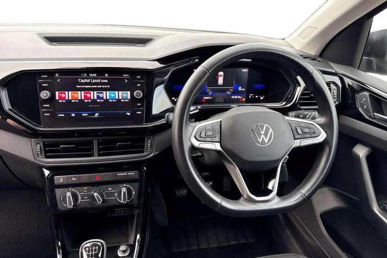 'Lights On' Reminder warning buzzer, Adaptive cruise control including front assist, forward collision warning, autonomous emergency braking, speed limiter, Blind spot monitoring, Bluetooth telephone and audio connection for compatible devices, Car information display, Digital cockpit, Driver alert system, eCall emergency call system, Lane assist, Low washer fluid warning light, Multifunction computer with visual gear change recommendation for fuel consumption, Operating permit alteration, Power assisted speed sensitive steering, Speedo, rev counter, electronic odometer, trip, service interval display, exterior temperature and fuel gauge, Stop/start system, Warning sound and light for doors and tailgate open, Warning sound and light for front seatbelts unfastened, We Connect Go Dongle, Wireless Car net app connect with Apple CarPlay, combined functionality of Apple CarPlay/Android Auto and MirrorLink, Battery regeneration during braking, Misfuel prevention device, 2x USB connection with USB charging sockets and in rear centre console, DAB Digital radio receiver, Diversity antenna for FM reception, Multi device interface (MDI) with USB connection, Music playback - MP3, WMA and AAC files, Premium USB cable for Apple or Android smartphone compatibility, Simultaneous pairing of 2 compatible mobile devices, Title and cover art display, Automatic hazard lights activation under emergency braking, Black door mirrors, Black roof rails, Body colour door handles, Body coloured bumpers, Dusk sensor + automatic driving lights, Electrically foldable, adjustable and heated door mirrors with reverse activated kerb view adjustment on passenger's side, Front and rear electric windows, Front fog lights with static cornering function, Galvanised body, Heated rear window, LED third brake light, Lower door sills and door pillars in black, Radiator grille with high gloss surface and chrome strip, Rear fog light on one side, reversing light on both sides, Rear lights incorporating LED technology, Rear side wing doors, Rear tinted glass 65% approx light absorbing from B pillar backwards, Rear window aerial, Rear windscreen washer and wiper with interval delay, Reflectors in all doors, Tailgate with integrated roof spoiler, Windscreen wipers/ intermittent wipe + 4 position delay, 12V Accessory socket in centre console, 3 rear head restraints and 3 rear three point seat belts with ECE label, 3 seat bench in 2nd row, 60/40 split folding rear seat backrest, Comfort front sport seats, Diag cloth upholstery, Drawer under drivers seat, Driver and front passenger sunvisor with vanity mirror, Driver's sunvisor with ticket holder, Dust and pollen filter, Front + rear carpet mats, Front and rear reading lights X 2, Front centre armrest with storage compartment, Front seat back storage pockets, Front seats with adjustable lumbar support, Glovebox, Heating and fresh air system with 4 stage blower, Height/reach adjust steering wheel, Instrument lighting white adjustable panel illumination, Interior light with delay, Isofix child seat preparation for 2 rear child seats, Luggage compartment cover, Luggage compartment lighting, Manual air conditioning, Moveable and foldable Rear bench seat, Single front passenger seat, Storage compartment in drivers and front passengers door, Three spoke multi-function leather trimmed steering wheel and gearknob, Variable boot floor, Anti-lock Braking System (ABS) with Hydraulic Brake Assist (HBA), Automatic post collision braking system, Driver and front passenger safety-optimised head restraints, Drivers and Front Passengers airbags with front passengers airbag deactivation switch, ESC with EDL, ASR, EDTC and trailer stabilisation function, Front and rear curtain airbags, Front disc brakes and rear drum brakes, Front seat side impact airbags, Height-adjustable front three-point seat belts with tensioners, Hill start assist, Pre crash preventive occupant protection, Rear door child safety locks, Rigid safety cell with front and rear crumple zones, Single torn horn, Tyre pressure loss indicator, Volkswagen roadside assistance, Alarm with interior protection and deactivation via infotainment system, Child security locks in rear doors, Electronic engine immobiliser, Remote tailgate unlocking using key fob, Decorative inserts transition high gloss black/platnium grey, 17" Manila black diamond turned surface alloy wheels + anti theft wheel bolts, Breakdown kit,