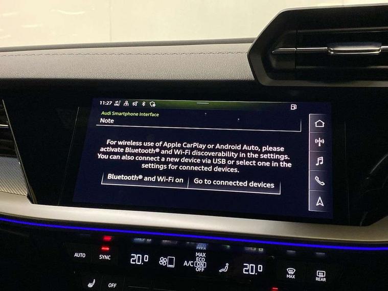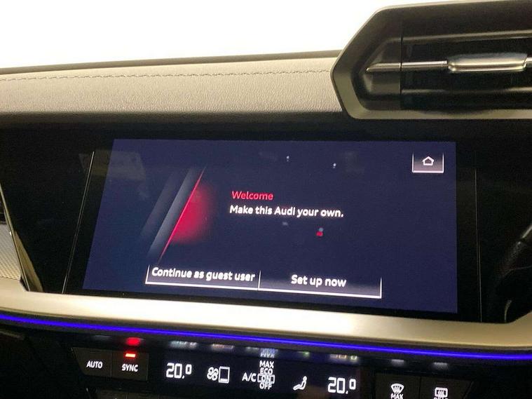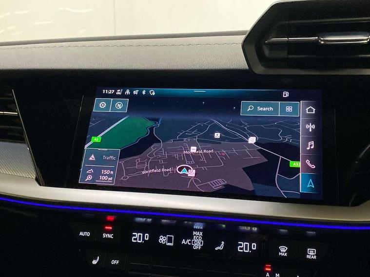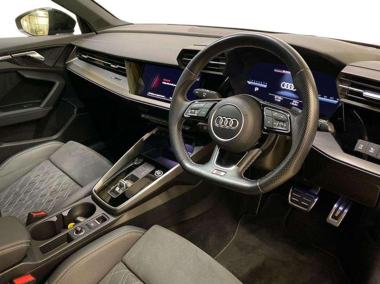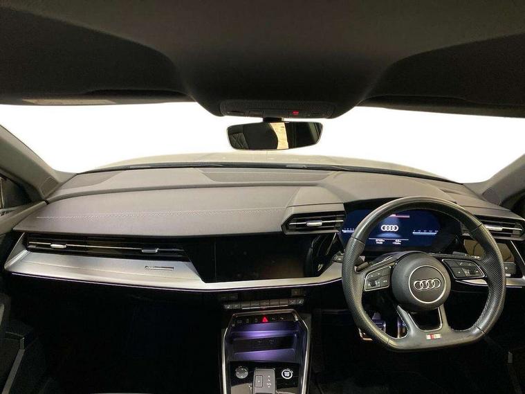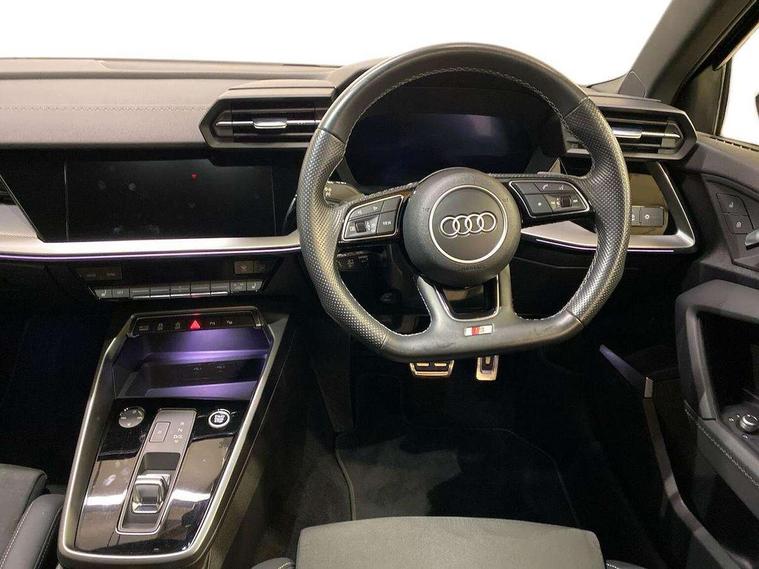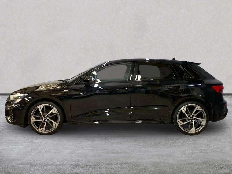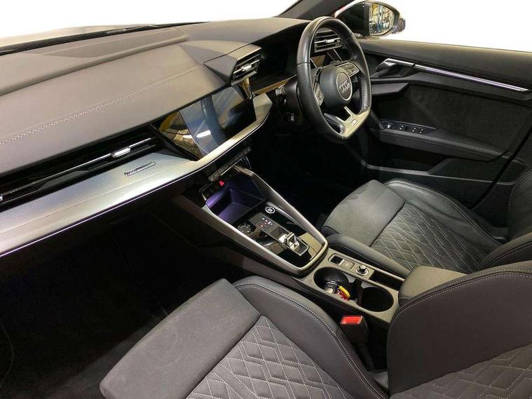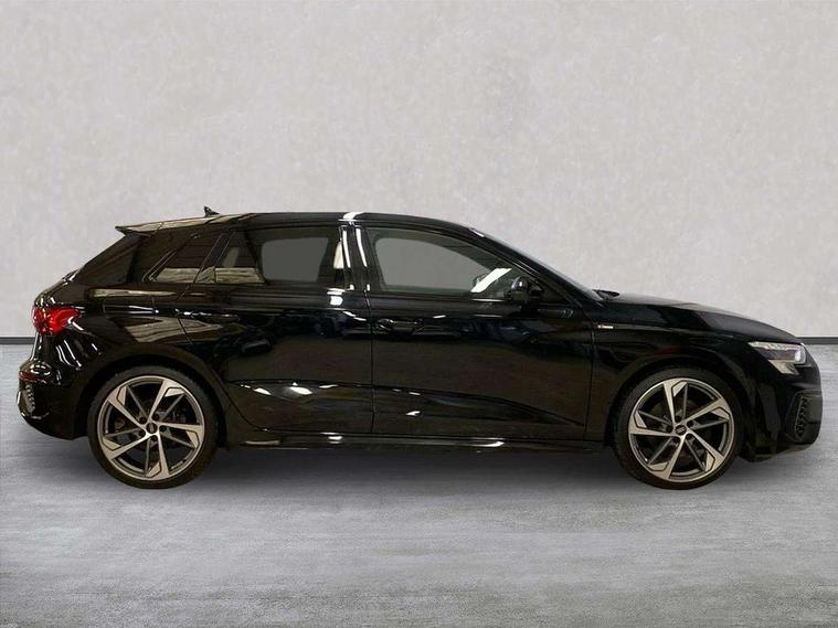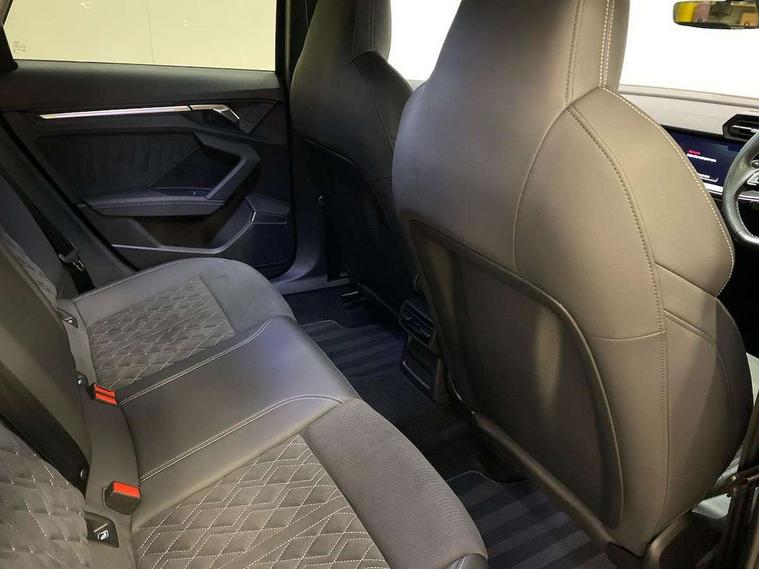 Audi connect emergency call and service, Audi drive select (Auto, Comfort, Dynamic, Efficiency and Individual), Audi smartphone interface, Audi virtual cockpit plus - 12.3" full HD resolution dynamic digital instrument cluster, Automatic start/stop system with recuperation, Bluetooth interface, Collision avoidance assistant, Electromechanical power speed sensitive steering, Lane departure warning system, MMI Navigation Plus with high resolution 10.1" colour touch screen display, Service indicator, Trip computer, Voice control system with natural language interaction, Sports suspension, 2xUSB-C connection with data and charging functions, 6 passive loudspeakers, DAB Digital radio, 3rd brake light, Acoustic glass windscreen, Audi matrix LED headlights with LED rear lights + dynamic front and rear indicators, Auto dimming frameless rear view mirror, Body colour front spoiler blade, Electrically adj heated/folding + automatically dimming exterior mirrors + automatic kerb side function for passenger side exterior mirror, Front electric windows, Headlight washers, Illuminated aluminium inserts front door sills with S logo, Integrated LED indicators in door mirrors, LED daytime running lights, Light and rain sensors, Privacy glass - dark tinted rear window, rear door and side windows, Rear diffuser in grained matt black, Rear electric windows, Rear side air outlets in grained matt black, Rear wiper, S roof spoiler, 12V socket and storage compartment in front centre console, 4 way electrically adjustable lumbar support for driver and front passenger, 40/20/40 split folding rear seat bench with cupholder, Black cloth headlining, Dual zone electronic climate control, Electrically adjustable front seats for driver's side, Front and rear centre armrest in leather, Front and rear headrests, Front/rear floor mats, Heated front seats, Height and reach adjustable steering wheel, Interior lighting - glove compartment light and right hand side, Luggage compartment floor covering, Seat side bolsters, Stainless steel pedals and front footrest in black, Aluminium interior elements pack - A3 Sportback, Black styling pack - A3 Sportback, Dinamica microfibre/mono.pur 550 artificial leather pack - A3 Sportback, Extended ambient lighting pack - A3 Sportback, LED interior lighting pack - A3 Sportback Edition 1/Vorsprung, 3x3 point rear seat belts, Driver and front passenger airbag with passenger airbag deactivation, Electronic Stabilisation Control (ESC) including ABS, ASR and EDL, First aid kit with warning triangle and 2 safety vests, Front side airbags with head airbags and interaction airbag, Hill hold assist, Pre-sense front with pedestrian and cyclist detection, Seatbelt monitoring, Tyre pressure loss indicator, Anti theft alarm, Anti-theft wheel bolts, Electronically operated child lock, Immobiliser, Remote control central locking, Accent surfaces in the dashboard and centre console in platinum grey silk effect paint finish, Dark spectrum aluminium inlays, 19" 5 arm trapezoid design alloy wheels in titanium matt grey with diamond cut finish,