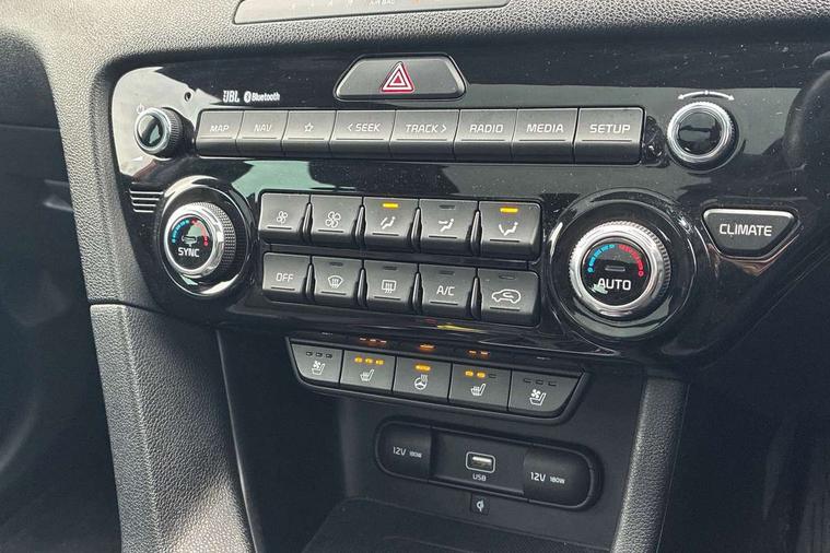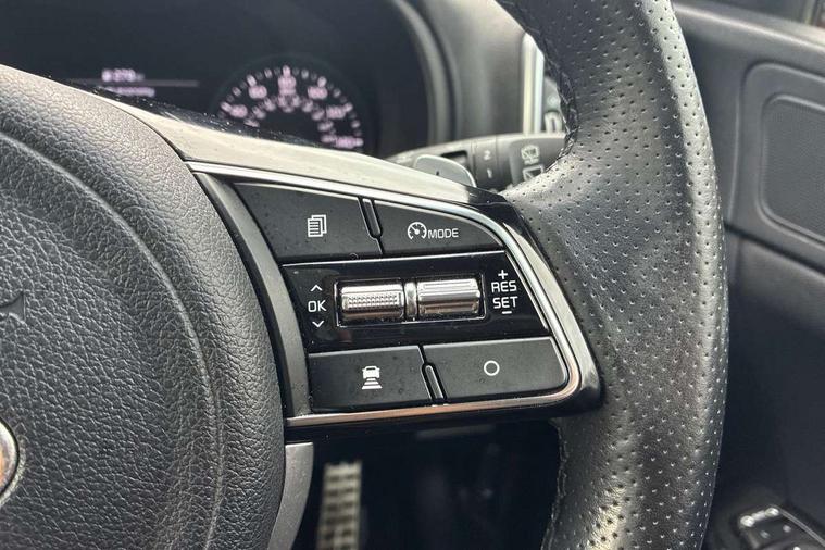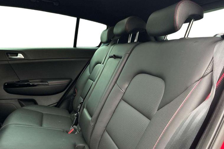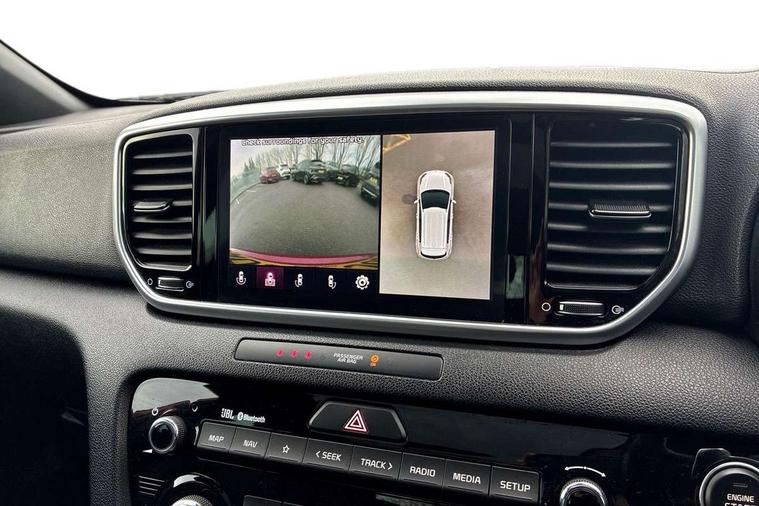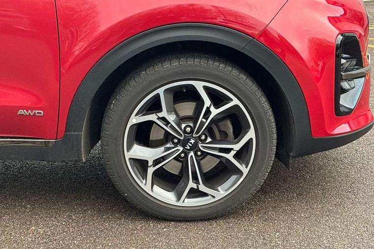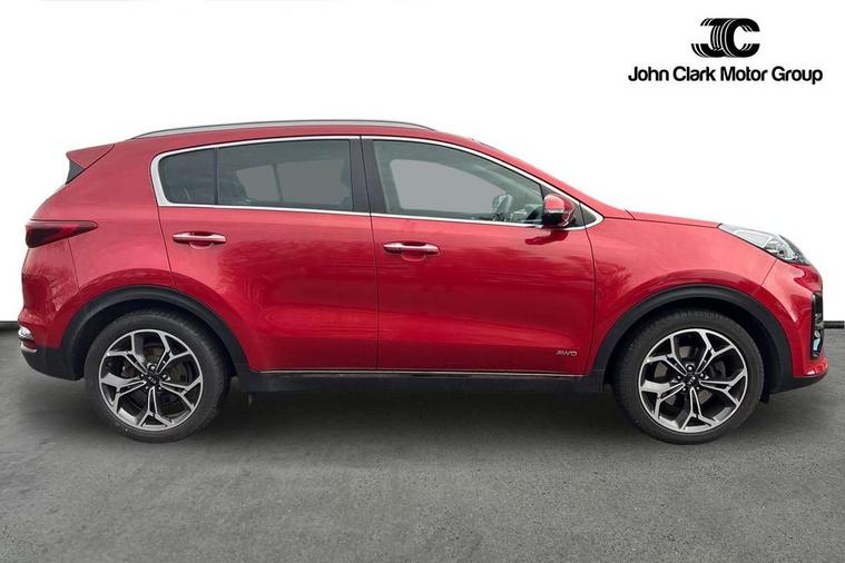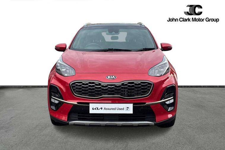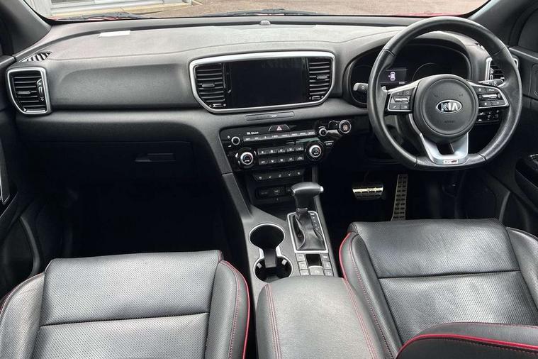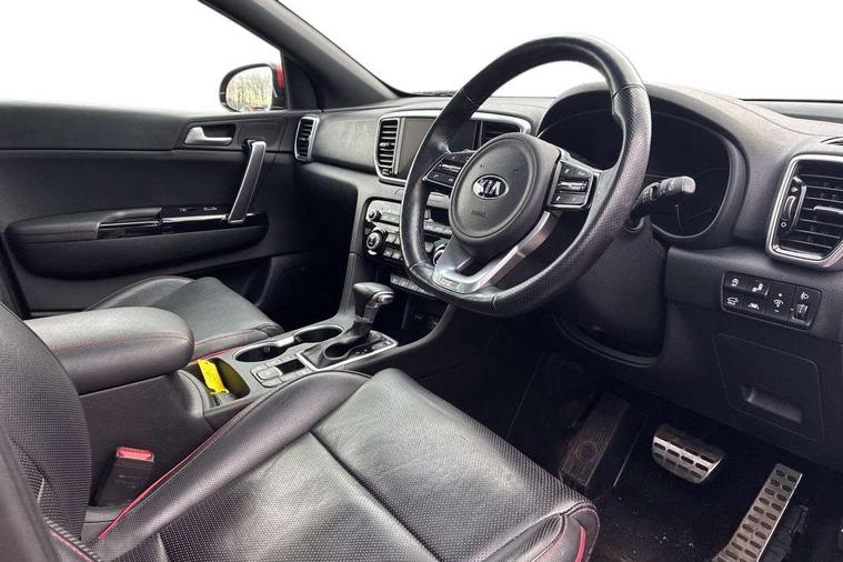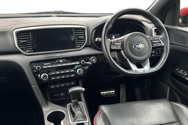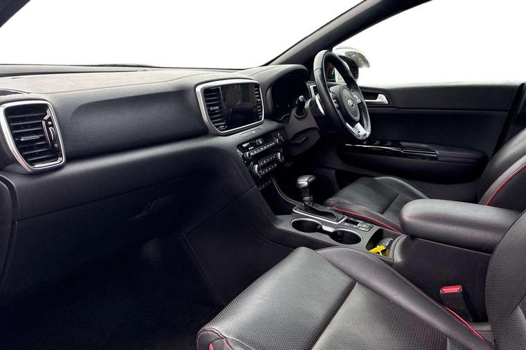 360 degree around view monitor, 4.2" supervision colour cluster display, 8" touchscreen satellite navigation with European mapping and traffic messaging channel, Android auto with voice control, Apple car play with voice control, Blind spot collision warning, Drive mode selector, Driver attention warning, Emergency stop signalling system, Forward collision avoidance assist, Front parking sensor, Kia connected services featuring TomTom live, Lane keep assist, Rear parking sensor, Reversing camera, Smart cruise control with stop and go functionality, Smart power tailgate, Speed limit information, Speed sensitive power steering, Telematics system with UVO connect services, Trip computer, Windscreen washer level indicator, Wireless Smartphone charger, Intelligent Stop and Go, Bluetooth audio streaming, DAB Radio with MP3, JBL Premium sound system with 8 speakers, external amp, subwoofer and front centre speaker, Rear USB port, Steering wheel mounted audio controls, USB/iPod/auxiliary input connections, All round electric windows with drivers and front passenger auto up/down function, Auto dimming rear view mirror, Automatic lighting control, Automatic window defogger, Black wheel arch body mouldings and side sills with dark chrome insert, Body colour door handles with chrome inserts, Body colour door mirrors, Chrome window surround, Dark chrome front bumper insert, Dark chrome front grille surround, Electric panoramic glass sunroof (Electric one touch with safety function), Electrically adjustable/heated/folding door mirrors with LED indicators, Front wiper de-icer, High beam assist, High gloss black blade mesh radiator grille, LED Bi-Function headlights, LED daytime running lights, LED ice cube front fog lights, LED rear lights, Privacy glass - Rear windows and tailgate, Rain sensing front wipers, Rear spoiler, Rear wiper, Roof rails, Shark fin antenna, Silver painted front and rear skid plates, Tinted glass, Trailer stability assist, Welcome and follow-me home light functionality, Wide view drivers door mirror, 10 way driver/8 way passenger electrically power adjustable seats, 12V power in front and rear centre console, 3 x passenger assist grips, 60/40 split folding rear seat, Air filter, All-round height adjustable headrests, Aluminium door scuff plates, Aluminium pedals, Black headlining, Centre console storage box, Chrome boot sill guard, D-Shaped sports leather steering wheel and perforated inserts with GT-Line logo, Driver and front passenger side sunvisors with illuminated vanity mirrors, Drivers seat power lumbar support, Dual zone automatic air conditioning, Front and rear door storage, Front cabin LED map light with sunglasses case, Front door courtesy reflectors, Front seat and rear pockets, Front/rear centre armrests, Gear shift indicator, Glovebox illumination, Heated front and outer rear seats, Heated steering wheel, Interior door lock/unlock function, ISOFIX Child seat top tethers and anchor fixings, Leather trimmed door armrests, Leather trimmed gearshift, Leather upholstery with red piping and stitching, Luggage area LED light, Luggage area load cover, Luggage net with hooks, Paddle shift controls, Rear centre armrest with cupholder, Rear coat hooks, Satin chrome interior door handles, Side cabin LED lights, Tilt/telescopic adjustable steering wheel, Ventilated front seats, Ventilation ducts to rear compartment, Active front headrests, All round 3-point seatbelts, Anti-lock braking system with electronic brakeforce distribution, Dual front side airbags, Electronic parking brake, Electronic stability control with downhill brake control, Front passenger airbag cut-off switch, Front seatbelt pretensioners + load limiters, Height adjustable front seatbelts, Hill start assist control (HAC), Impact sensing auto door unlocking, Rear door child safety locks, Traction control, Twin curtain airbags with roll over sensor, Twin front airbags, Tyre pressure monitoring system, Advanced anti-theft system including immobiliser and alarm, Door deadlocks, Engine Start/Stop Button with Smart Entry System, Locking wheel nuts, Speed sensitive auto door locking, Visible vehicle identification number, High gloss black centre fascia, 19" alloy Wheels B-type, Tyre mobility kit,