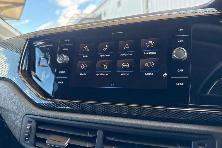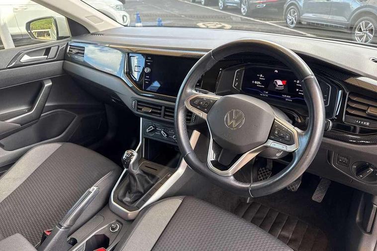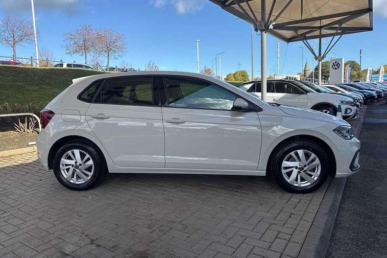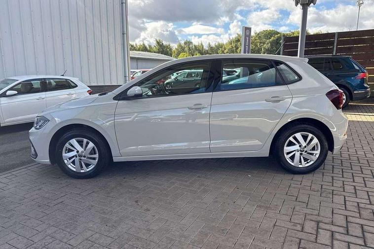 Adaptive cruise control without follow-to-stop and speed limiter, Bluetooth mobile phone interface, Driver alert system, Emergency call service, Front assist system, Power assisted speed sensitive steering, Preparation for We connect and We connect plus, Speedo and rev counter, electronic odometer, trip, service interval display and fuel gauge, Standard rear axle, Travel Assist - Lane keeping system and traffic jam assist, Travel assist including emergency assist, Trip computer, Warning signal and warning light for front and rear seatbelts not fastened, Washer fluid level indicator, Wireless app connect, Front wheel drive, Rear shock absorpion, Start-stop system with battery regeneration (recuperation - energy recovery during braking), DAB Digital radio, Diversity antenna for FM reception, Front and rear 6 speakers, Automatic dimming interior rear view mirror, Body colour bumpers, Body colour door handles, Body colour door mirrors, Electric front windows, Heat insulating darkened glass in side and rear windows, Heat insulating glass windscreen, Power folding adjustable/heated exterior mirrors and front passenger exterior mirror lowering function, Rain sensor, Rear electric windows, Rear fog light, Rear side wing doors, Rear windscreen washer and wiper with interval delay, Third brake light, 12V power socket in centre console, 2 front and 2 rear reading lights, 2 USB-C ports in the front, 2 USB-C charging sockets on the center console in the rear, 3 rear head restraints, 60/40 split folding rear seat and rear seat bench not split, Ceramique headliner, Chrome plated radiator grille inserts, air vent surrounds and light switch surrounds, Door and side trim panel, Driver and front passenger seat height adjustment, Driver/passenger sunvisors with illuminated vanity mirrors, Front centre armrest, Front seat backrest storage pockets, Front standard seats, Handbrake lever handle in leather, Hartley/Thomas cloth upholstery, Isofix child seat preparation easy-fit (for two outer rear seats, and front passenger seat) compatible with I-size, Leather trimmed gear knob, Luggage compartment cover, Luggage compartment floor, Luggage compartment lighting, Multifunction steering wheel, Single front passenger seat, Standard pedal cluster, Light and vision pack - Polo, 3 point height adj front seatbelts + pretensioners, 3x3 point rear seatbelts, ABS, Driver and front passenger airbag with front passenger airbag deactivation, Drivers and front passengers safety optimised head restraints, ESC (Electronic stability control) + EDL (Electronic Differntial lock) and ASR (Traction control), Extended and predictive pedestrian/ cyclist protection, Front curtain and side airbags with center airbag, Front disc brakes, Hill hold control, Manual child lock in rear doors, Rear drum brakes, Single tone horn, Tyre pressure loss indicator, Alarm with interior protection, Anti-theft alarm system with interior monitoring, backup horn, and towing protection, Anti-theft wheel bolts, Electronic engine immobiliser, Lava stone black gloss/matt decorative inserts in dash and front door panels, Low rolling resistance tyres,