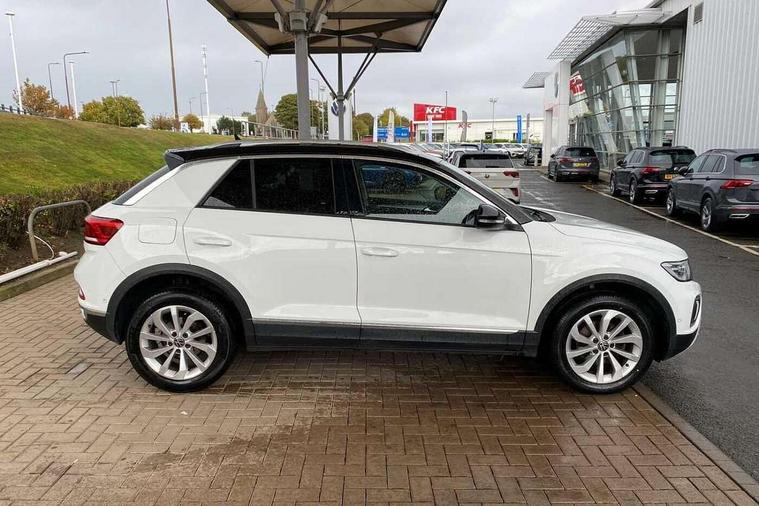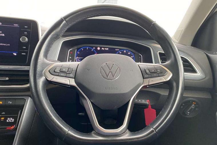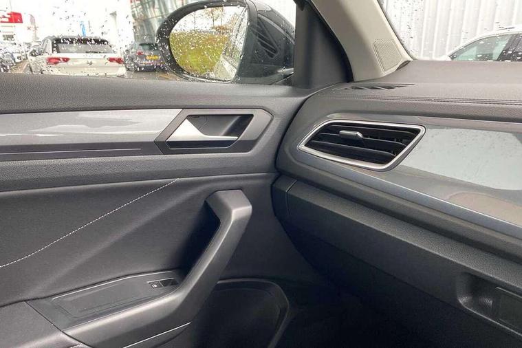 10.25" Digital cockpit pro, Bluetooth mobile phone interface, Driver alert system with fatigue detection, Driver tips and journey analysis, Dynamic road sign display, Emergency call service, Lane keeping system Lane Assist, Modified key software - reduce switch off time for key status change to Long no motion, Online services, Park assist including front and rear parking sensors, Power assisted speed sensitive steering, Service interval indicator, Tailgate/trunk lid release from outside, Think blue trainer driver tips and journey analysis, Warning sound and light for front seatbelts unfastened, Wireless app connect, Battery regeneration during braking, Front shock absorption, Rear shock absorption chassis with increased ride height, Start/stop function with battery regeneration, Diversity antenna for FM reception, Front and rear 6 speakers, Music playback - MP3, WMA and AAC files, Premium USB cable in choice of either Apple or Android smartphone compatibility, SD card slot, Simultaneous pairing of 2 compatible mobile devices, Title and cover art display, We Connect and We Connect Plus functionality, 3rd brake light, Auto dimming interior rear view mirror, Automatic hazard lights activation under emergency braking, Automatic headlight control with LED separate daytime running lights with coming/leaving home function, Body colour sports bumpers with silver metallic underbody fascia, Dynamic headlight range control with self adjusting whilst driving, Extended roof spoiler, Exterior mirrors aspherical on driver side, convex on front passenger side, External USB type C socket and charging sockets, Front windscreen wiper with intermittent wipe and 4 position delay, Heated rear window, LED Plus headlamps, LED rear combination lamps, LED rear number plate lights, LED tail lamp rear comination lamps, Light mode for poor weather, rain, fog or snow, Power windows with comfort operation and circuit breaker, Rain sensor, Rear exhaust tailpipe, Rear fog light on one side and reversing lights on both sides, Rear side wing doors, Rear wash/wipe with intermittent wipe setting, Remote electrically foldable door mirrors, puddle lights and reverse activated passenger's door mirror, 12V power socket in centre console, 3 rear head restraints, 3 seat bench in 2nd row, 4 load lashing points in luggage compartment, Air care climatronic air conditoning system with active combination filter and 2-zone temperature control, Chrome plated radiator grille inserts, air vent surrounds and light switch surrounds, Door and side trim panel with leatherette insert, Drawer under drivers seat, Front + rear carpet mats, Front centre armrest, Front comfort sports seats, Front cupholders x 2, Front footwell illumination, Instrument lighting, white adjustable panel illumination, Interior ambient lighting and surround lighting, Interior light delay, Isofix child seat preparation, Leather gearshift handle, LED interior light with switch off delay/dimmer and 2 front/rear LED reading lights, Load-through provision with cup holder when folded down ('Unsplit rear seat bench, split folding backrest, with centre armrest), Luggage compartment lighting, Non-folding front passenger seat backrest, Single front passenger seat, Storage compartment in left and right luggage area, Storage compartment in rear doors, Storage compartments in driver and front passenger doors, Sunvisors with illuminated vanity mirrors, Variable boot floor, height adjustable and removable, Driver assistance pack without proactive passenger protection - T-Roc, 3 point height adj front seatbelts + pretensioners, 3 point seatbelts in outer rear with ECE label, ABS, Child locks on rear doors, Driver and front passenger airbag with front passenger airbag deactivation, Driver and front passenger safety-optimised head restraints, Drivers seatbelt reminder, Electronic parking brake, Electronic Stability Control (ESC) inc EDL (Electronic Differential Lock) and ASR (Traction Control), Front and rear passengers curtain airbag system including front side airbags, Front assist with city emergency braking and pedestrian monitoring, Front disc brakes, Front seat side impact airbags, Predictive pedestrian protection, Rear disc brakes, Single tone horn, Tyre pressure loss indicator, Volkswagen roadside assistance, Alarm with interior protection, Anti-theft alarm system with interior monitoring, backup horn, and towing protection, Remote central locking with SAFELOCK, radio remote control with 2 remote control folding keys, Trims for alloy wheels,