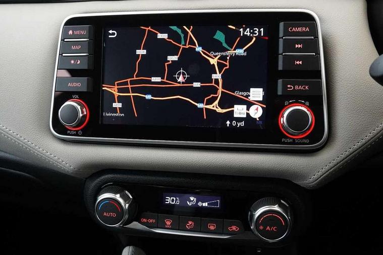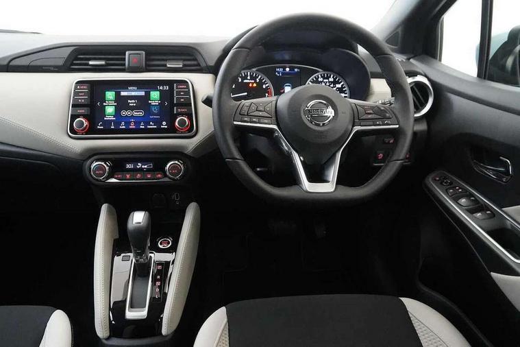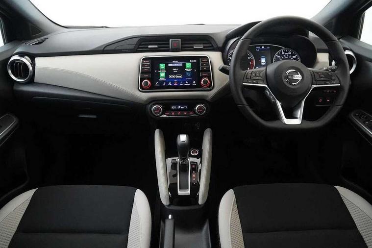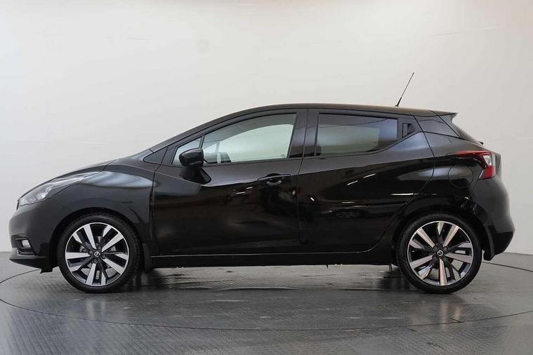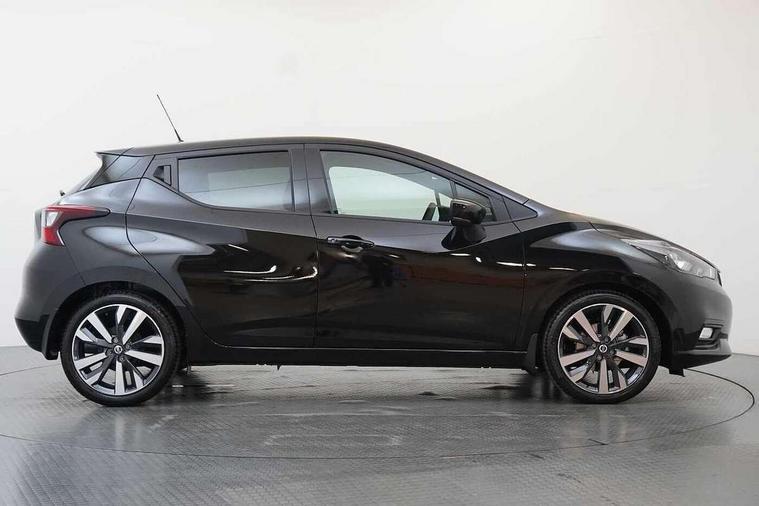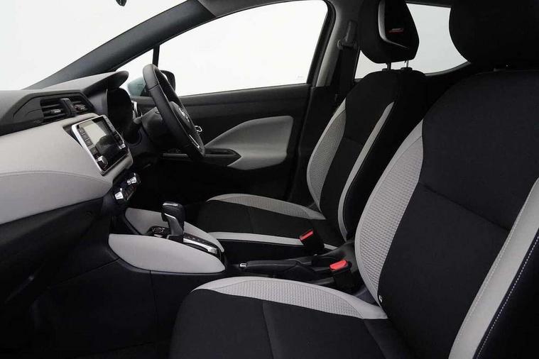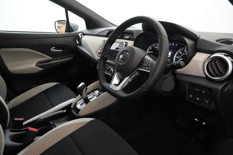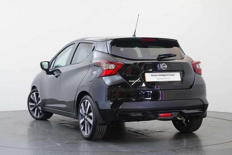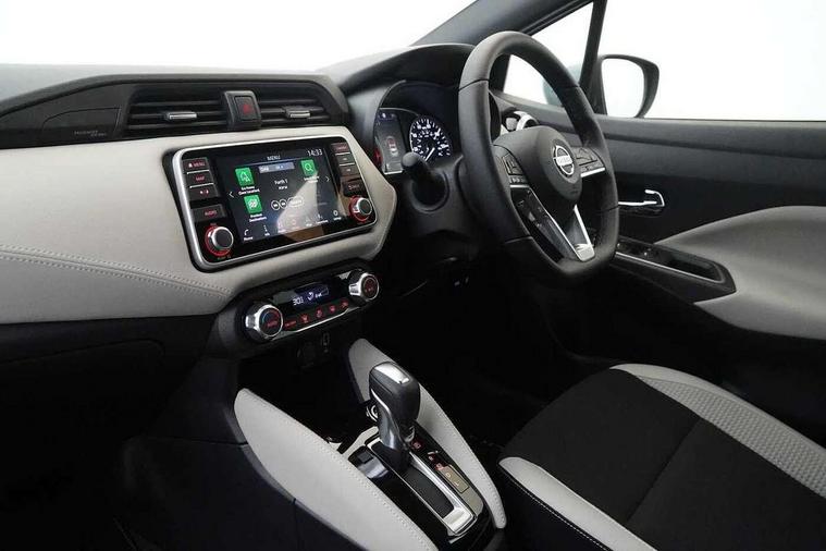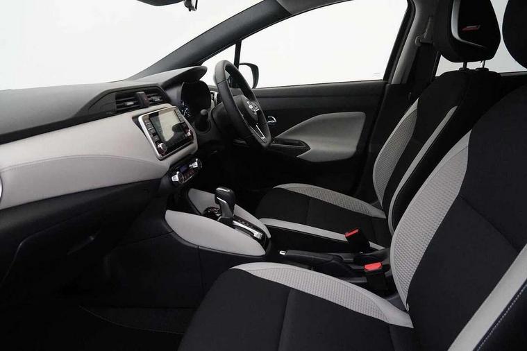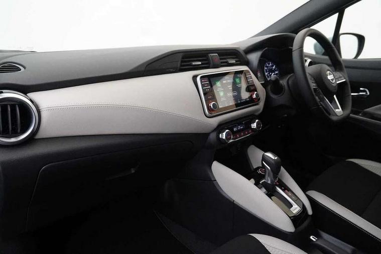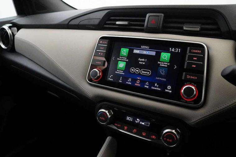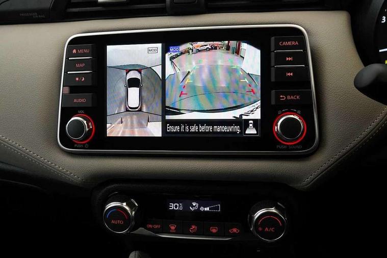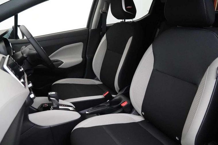 360 degree around view monitor, Adjustable speed limiter, Bluetooth system, Cruise control, Lane departure prevention, Lane departure warning system, Nissan Connect touchscreen navigation and Entertainment system, Outside temperature gauge, Power assist steering, Rear parking sensors, Rear view camera, Smartphone integration with Apple CarPlay and Android auto, Stop/start system, Traffic sign recognition, Trip computer, Audio system with MP3, BOSE sound system with 6 speakers, DAB Digital radio, USB/iPod connection, 4 pocket halogen headlights with signature finisher, Antenna, Auto dimming rear view mirror, Automatic activation of hazard warning lights, Automatic headlights, Body colour front door handles, Body coloured bumpers, Body coloured door mirrors, Concealed rear door handles, Electric folding door mirrors, Front and rear electric windows, Front fog lights, Heated door mirrors, High beam assist, High mounted stop lamp, Jacknife key type x1, LED daytime running lights, LED Headlights, Rain sensor windscreen wipers, Rear privacy glass, Rear roof spoiler, Rear wiper with reverse link, 12V power point front, 2 height adjustable rear headrests, 3 cupholders, 60/40 split folding rear seat, Automatic air conditioning, Boot compartment cover, Boot light, Chrome interior door handles, Driver's seat manual height adjust, Driver/passenger sunvisors and vanity mirrors, Front and rear door pockets with bottle holders, Front console storage box, Gear shift indicator, Height adjustable front headrests with satin sliver decoration, Illuminated electric window switch, Isofix front passenger and rear seat preparation, Leather wrapped gear shift knob, Leather wrapped parking break, Leather wrapped steering wheel, LED ambient lighting, Map reading lamp, Parcel shelf, Passenger seat back pocket, Reclining front seats, Synthetic leather front door pads, Synthetic leather instrumental panel inserts, ABS+EBD+Brake assist, Crash sensor, Driver/Front Passenger airbags, Front and rear curtain airbags, Front side airbags, Height adjustable front seatbelts with pre-tensioners and load limiters, Hill start assist, Intelligent emergency braking with pedestrian recognition, Passenger airbag deactivation system, Rear seatbelts with pre-tensioners and load limiters, Seatbelt warning, Three 3 point rear seatbelts, Tyre pressure monitoring system, Warning triangle and first aid kit, Anti-theft immobiliser, Intelligent key with push button ignition, Remote central locking, 17" Diamond cut alloy wheels, Tyre repair kit,