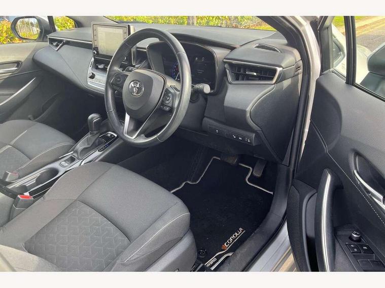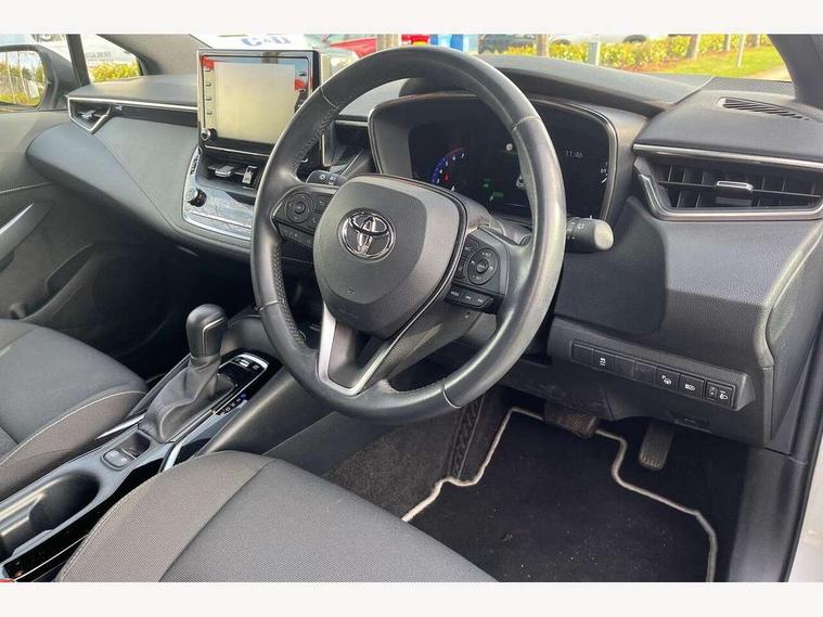 Adaptive cruise control, Bluetooth telephone connectivity, E-call, Electrically assisted power steering, Front parking sensor, Intelligent park assist, Push button start, Rear parking sensor, Reversing camera, Voice activation, Vehicle Stability Control (VSC), 2 ring combimeters with 7" colour TFT screen, 6 speakers, 8" multimedia and back monitor, AM/FM radio, DAB Digital radio, Toyota touch 2 with go navigation system, USB/AUX connectivity, Anti-jam protection on power windows, Auto high beam, Auto up and down function on all power windows, Automatic headlights, Body coloured bumpers, LED daytime running lights, LED Headlights, Power front windows, Power heated mirrors, Power rear windows, Rear window wiper, Shark fin antenna, 3 rear headrests, Clean air filter, Dual zone automatic air conditioning, Fabric upholstery, Front head restraints, Heated seats, ISOFIX seat fixing (2 fixings on rear outer seats), Leather steering wheel and gear knob, Pollen filter, Power lumbar support, Tilt/telescopic steering column, Whiplash Injury Lessening (WIL) feature (active headrest) for seats, Parking pack - Corolla, Toyota safety sense 2 - Corolla, 3x3 point rear seatbelts, Anti lock braking system + Electronic brake force distribution, Brake assist function, Electronic parking brake, Front passenger airbag on/off switch, Front seatbelt reminder, HAC - Hill start assist control, Rear seat belt reminder, Seatbelt pretensioners and force limiters, Supplemental restraint system (SRS) airbags - 7 airbags including driver, front passenger, curtain, side and knee airbags, Traction control, Tyre pressure warning system, Alarm/immobiliser, Space saver spare wheel,