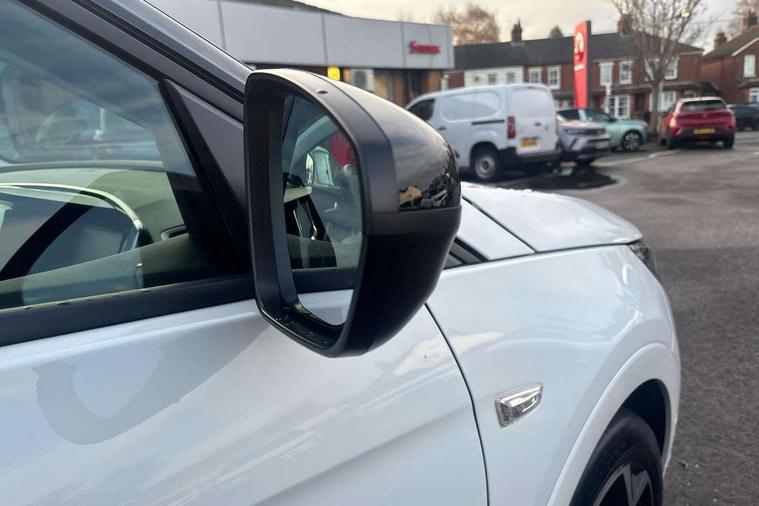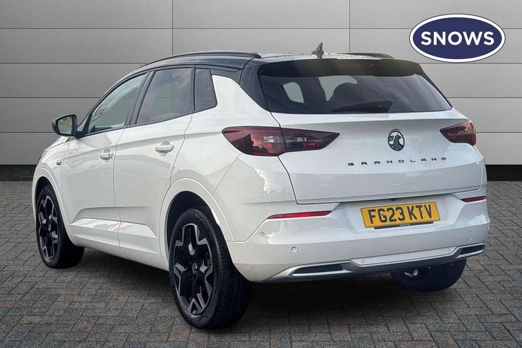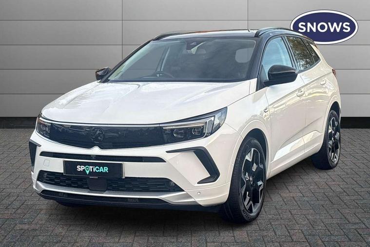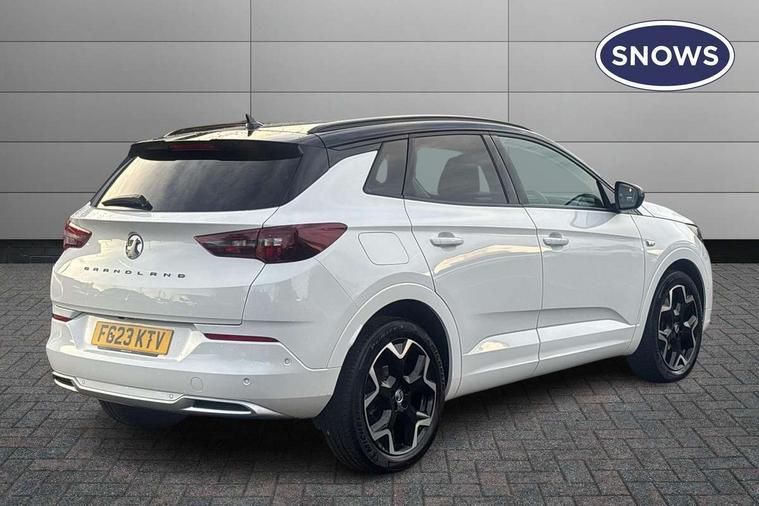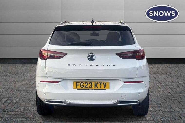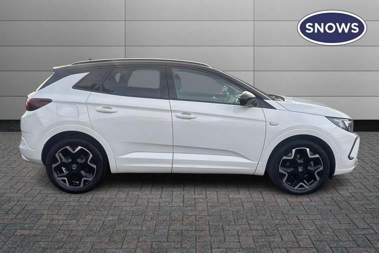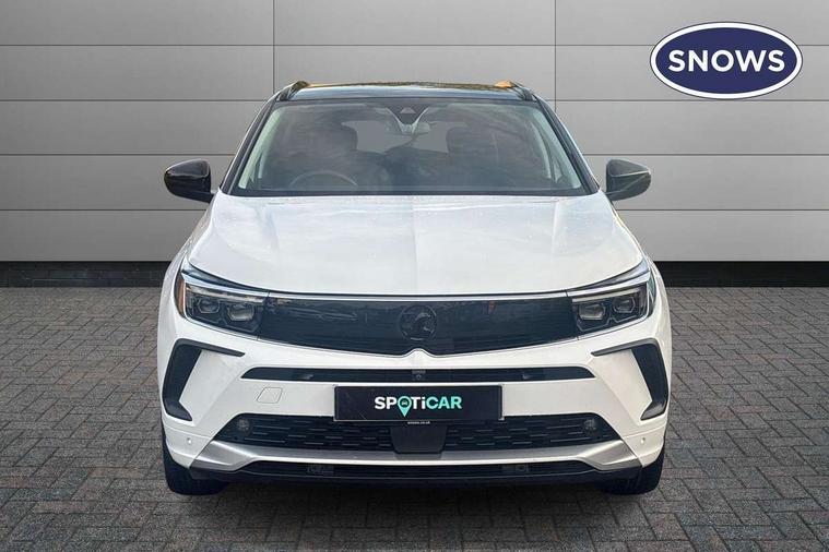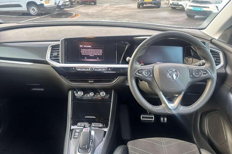 12" colour digital cluster, Central facia display with digital clock, outside air temperature and audio information, Digital fuel gauge with low fuel level warning light, Digital rev counter, Digital speedometer, Digital water temperature gauge with warning light, Driver drowsiness alert system, Driver information - Total mileage, service indicator, oil life, Front and rear parking distance sensors with 360 degree rear view camera and advanced park assist, Gearshift up/down indication light, Highway integration assist (Lane positioning assistant and Adaptive cruise control), Lane departure warning system, Lane keep assist, Lights on audible warning, Multi function trip computer - Trip odometer, vehicle range, average speed and fuel economy, instantaneous fuel economy and driving time, Multimedia navi pro with 10" colour touch+ sat nav+AM/FM/DAB radio, bluetooth audio streaming/mobile phone portal, Apple carplay/Android auto, USB, Power operated tailgate with foot sensor, Side blind spot alert, Speed sensitive electric power assisted steering, Speed sign recognition, Vauxhall connect including Emergency call (SOS e-call) and Breakdown call (b-call), Wireless charger for mobile devices, Anti-roll bars, Compound crank rear suspension with coil springs and gas pressure dampers, Independent decoupled MacPherson strut front suspension with gas pressure dampers and coil springs, Six speaker - four front + two rear, Steering wheel mounted audio/phone/cruise controls, Alloy effect front and rear skid plates, Automatic lighting control, Automatically dimming anti dazzle rear view mirror, Black door mirrors, Black side window trim, Body colour door handles, Body colour lower front and rear bumpers, protective wheel arches and lower door cladding, Body colour upper front bumper, Collapsible windscreen wipers, Dark tinted rear side and tailgate windows, Door to door illumination, Electric adjustable/heated/folding door mirrors, Electrically operated front and rear windows with safety auto reverse and one touch up/down facility, Front wiper system spraying directly from wipers, Hazard warning lights, Heated rear screen with timed cut off, High beam assist, High gloss black exterior detailing, High gloss black Griffin for Vizor and tailgate with high gloss black Grandland tailgate lettering, High gloss black roof rails, High level centre rear brake light, IntelliLux adaptive LED pixel headlights and LED tail lights, Intermittent rear window wash/wipe, LED daytime running lights, LED front fog lights, Magic wash, Manual headlight beam levelling, Partial heated windscreen, Rain sensor windscreen wipers, Rear side wing doors, Rear spoiler, Reversing light, Shark fin aerial, Soundproof insulated windscreen, Two speed windscreen wipers with variable intermittent wipe, Upper and lower bumper design, Vizor front grille, Welcome lighting, 12v plug in front console and 12v plug in boot, 3 bench rear seats in 2nd row, 3 spoke flat bottom leather steering wheel with satin chrome effect bezel, 4 way electric driver lumbar support, 4 way passenger electric lumbar support, 60/40 split folding rear seat with centre rear seat armrest and load though facility, Advanced predictive logic control system using a sun sensor, Alcantara upholstery, Alloy sports pedals, Ambient centre console downlighter, Automatic air direction and fan speed with manual override, Charcoal filter, Chrome effect interior door handles, Covered storage compartment in centre console and in driver armrest, Driver's centre armrest, Drivers and front passengers seat with height, reach, tilt, backrest adjustment and seat cushion extension, Dual zone electronic climate control, Ergonomic active drivers sports style seat, Ergonomic active front passenger sports style seat, Front door pockets with 2.6 litre capacity, Front seat back storage pockets, Fully carpeted luggage area, Height adjustable headrests, Illuminated driver/passenger sunvisors with vanity mirror, Illuminated luggage area, ISOFIX on front passenger and rear outer seats, Luggage compartment cover, Reach + rake adjustable steering column, Rear centre seat head restraint, Rear door pockets with 1.8 litre capacity, Rear passenger compartment heating ducts, Rear reading lights, Two drinks holders in centre console, Winter pack - Grandland, Anti-lock braking system (ABS), Automatic emergency braking with pedestrian detection, Child proof locks on rear doors, CSC - Cornering stability control, Deactivation switch for front passenger front and side impact airbags, Deflation detection system, Driver airbag, Dual seatbelt pretensioners on front seats, EBD - Electronic brakeforce distribution, Electronic parking brake, Electronic stability program (ESP) including traction control, Forward collision alert, Front brake ventilated disc 304mm diameter, Front passenger airbag, Front seat side impact airbags, Full-size curtain airbags for driver and front passenger, Hill start assist, Hydraulic Brake Assist (HBA), Inertia reel lap and diagonal seatbelts for all seats, Load limiters on outer rear seatbelt retractors, Pretensioners on outer rear seatbelt retractors, Rear brake ventilated disc 268mm diameter, Smart seatbelt reminder for front and rear seats, Tyre pressure monitoring system, Central locking, Deadlocking system, Electronically protected audio equipment, Engine deadlock immobiliser, Keyless entry and start, Locking wheel nuts, Remote security alarm system, Black door panels with black premium leather effect inserts, Dax decor facia panel with palladium medium finish, 19" diamond cut bi-colour alloy wheel, Tyre inflation kit,