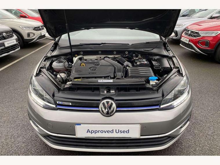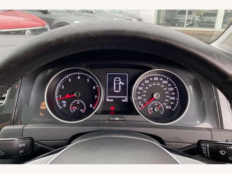 'Lights On' Reminder warning buzzer, 8" colour touch screen, ACC - Adaptive cruise control with front assist, forward collision warning, distance monitoring, city emergency brake and speed limiter, App-Connect, Bluetooth telephone and audio connection for compatible devices, Brake pad wear indicator warning light, Drive mode selector, Driver alert system, Driver profile selection, Front assist, radar sensor controlled distance monitor, city emergency braking + predictive pedestrian protection, Front assistant collision mitigation, Instrument cluster in white, Multifunction computer with visual gear change recommendation for fuel consumption, Power assisted speed sensitive electro-mechanical steering, Speedo, rev counter, electronic odometer, trip, service interval display, exterior temperature and fuel gauge, Stop/start system, Ultrasonic front and rear optical and audible parking sensors, Warning buzzer and light for front seatbelts unfastened, Battery regeneration during braking, XDS electronic differential lock, 8 Speakers, Composition media system, DAB Digital radio receiver, MP3/WMA compatability, SMS Functionality, USB and SD card connectivity, Aerodynamic black radiator grille with chrome trimmed insert, Automatic coming/leaving home lighting function, Automatic dimming rear view mirror/rain sensor, Black rear diffuser, Body colour bumpers, Body colour door handles, Body colour door mirrors with integrated indicators, Electric front windows, Electric rear windows, Electrically adjustable and heated door mirrors, Glavanised body, Heated rear windscreen, High level 3rd brake light incorporating LED Technology, Range adjustable headlights via infotainment system with LED daytime running lights, Rear number plate lights incorporating LED technology, Rear window aerial, Rear window wash/wipe with intermittent wipe, Reflectors in all doors, Remote electrically foldable door mirrors, door mirror puddle lights and reverse activated kerb-view adjustment on passengers door mirror, Tailgate with integrated rear roof spoiler, Windscreen wipers/ intermittent wipe + 4 position delay, 12V socket in luggage compartment, 3 rear headrests, 4 load lashing points in luggage compartment, 60/40 split folding rear seat backrest, Bag hook in luggage compartment x 2, Cooled glovebox, Dust/pollen filter, Front and rear reading lights incorporating LED technology, Front centre armrest with storage compartment and two rear air vents, Front seat back storage pockets, Grab handles front x 2, rear x 2 with integrated coat hooks, Height and reach adjustable steering wheel, Illuminated vanity mirrors, Instrument lighting white adjustable panel illumination, Interior light delay, Isofix preparation for 2 rear child seats, Load through provision with rear centre armrest and cupholders x2, Luggage compartment light, Multifunction leather steering wheel with leather trimmed gear knob, Overhead storage box, Pearl grey headlining, Storage box in luggage compartment, Storage compartment in roof console with cover, Storage compartments in front doors, Storage compartments in rear doors, Stowable luggage compartment cover, Sun visors, Three spoke multi-function leather trimmed steering wheel and gearknob, Variable boot floor, height adjustable and removable, Mirror pack - Golf, 3 rear three point seatbelts, Airbags - Driver's and front passenger's, curtain airbag, Driver's knee, front side impact and passenger's airbag deactivation switch, Anti-lock Braking System (ABS) with Hydraulic Brake Assist (HBA), Automatic post collision braking system, Child locks on rear doors, Driver/Passenger optimised head restraints, Electronic parking brake with auto hold, Electronic stability control (ESC) including Electronic differential lock (EDL) and ASR (Traction control) with deactivation via infotainment system, Pre crash preventive occupant protection, Three point height adjustable front seatbelts with tensioners, Tyre pressure loss indicator, Alarm with interior protection, Electronic engine immobiliser, Remote central locking with 2 remote folding keys, Brushed dark silver decorative inserts in dash and door panels, Chrome plated air vent surround, Chrome-plated light switch surround, Polar night black centre console, Steel space saver spare wheel,