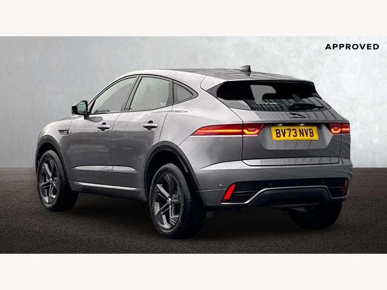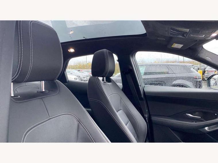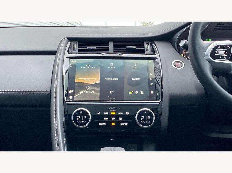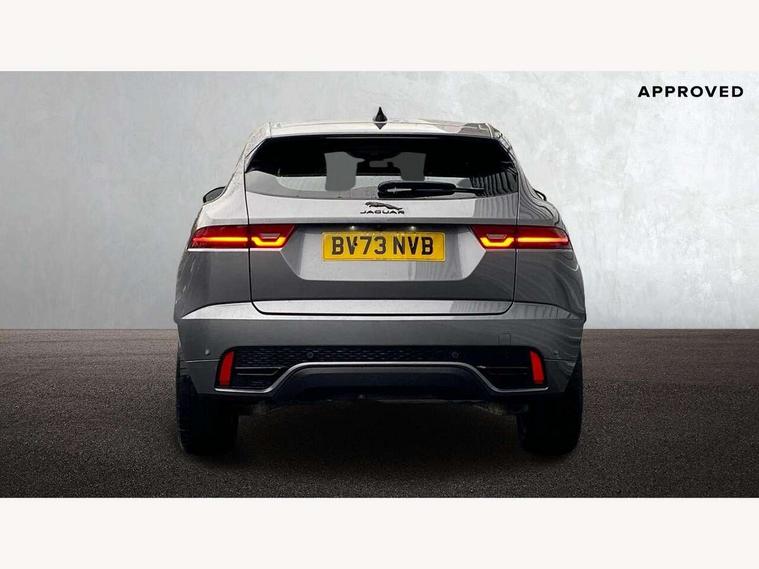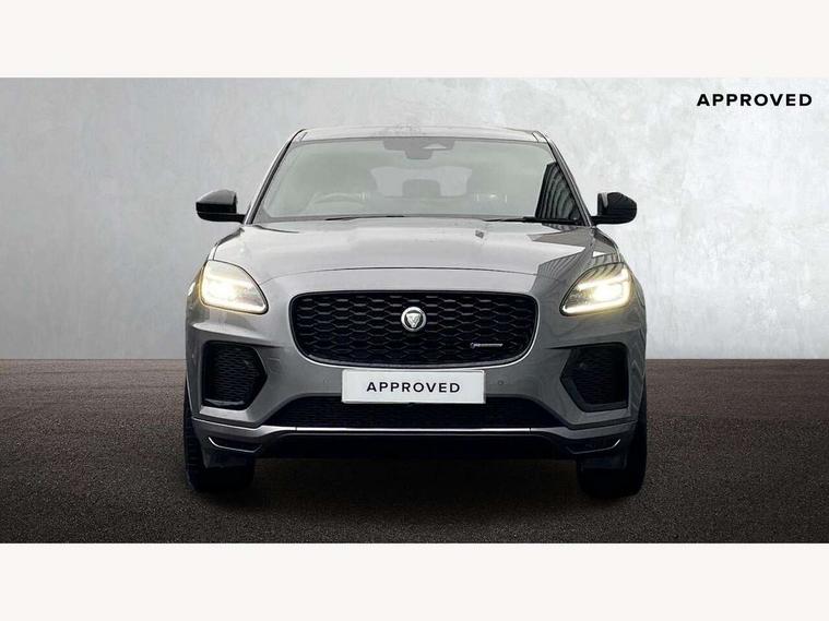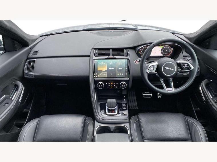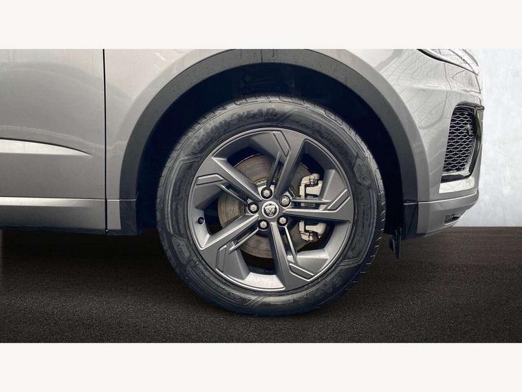 11.4" touchscreen with central ICP, Adaptive cruise control, Android Auto, Apple car play, Blind spot assist, Driver condition monitor, Eco driving style assistant, Electric power assisted steering, Emergency services call system, Front and rear parking aid, InControl remote, Interactive driver display, Jaguar drive control with adaptive surface response, Jaguar Toggle sport shift selector, Lane keep assist, Outside temperature gauge, Pivi pro connected infotainment system with smart settings and navigation pro, Push button start, Rear collision monitor, Rear traffic monitor, Speed proportional steering, Traffic sign recognition with adaptive speed limiter, Trip computer, Voice control system, Configurable dynamics, Diesel particulate filter, Efficient Driveline, Large fuel tank, Passive suspension, Bluetooth connectivity including audio streaming, DAB digital audio broadcast, Dynamic volume control, 3 flash lane change indicators, Approach Illumination, Automatic headlights, Body colour door handles, Body colour front and rear lower bumper main moulding and lower side cladding, Body colour upper spoiler, Body coloured side sills, Centre high-mounted stop light, Dark satin grille tips, Electric front/rear windows with one touch/auto up/down, Electric heated/power fold memory door mirrors with approach lights and auto dimming driver side, Fixed panoramic glass sunroof, Heated washer jets, Heated windscreen, Jaguar script and leaper, Leaper for duo leather and embossed leaper for windsor leather, LED tail lights, LED third brake light, Metal load space scuff plates, Narvik black antenna pod and side pillar finisher, R Dynamic badge, R Dynamic body colour bumpers, Rain sensor windscreen wipers, Rear fog lights, Rear side wing doors, Rear wash wiper, Satin black grained front outer grille, low grill mesh and low bumper valence, side fender vent mesh and finisher, rear tow eye cover and grille mesh, Twin exhaust tailpipe, Variable front intermittent wipers, 3 rear head restraints, 3 seat bench in 2nd row, 40:20:40 rear seat fold, Bright metal pedals, Carpet mats, Centre console with armrest, Enhanced ambient lighting, Hooks loadspace, ISOFIX on outer rear seats, Leather steering wheel, Loadspace cover, Loadspace light, Loadspace storage net, Luggage tie-downs in loadspace, Manual height/reach adjust steering wheel, Multifunction steering wheel, Overhead lighting console, Passive front head restraints, Power sockets, Rear air vents, Rear bench seats, Satin chrome gearshift paddles, Single front passenger seat, Sunvisors with illuminated vanity mirrors, Twin front cupholders, Two zone climate control, Online pack with data plan - E-Pace, 3x3 point rear seatbelts, ABS, All surface progress control (ASPC), Child locks on rear doors, Customer configurable autolock, DSC - Dynamic Stability Control, Electronic brake force distribution, Electronic parking brake, Emergency brake assist, Emergency braking, Front airbags with passenger seat occupant detector, Front and rear curtain airbags, Front and rear seatbelt reminder, Front passenger airbag deactivation, Front seatbelt pretensioners, Front side airbags, Height adjustable front seatbelts, Hill start assist, Low friction launch, Power child locks, Torque vectoring brake, Tyre pressure monitoring system, Intrusion sensor and alarm, Keyless entry, Locking wheel nuts, Remote central locking,