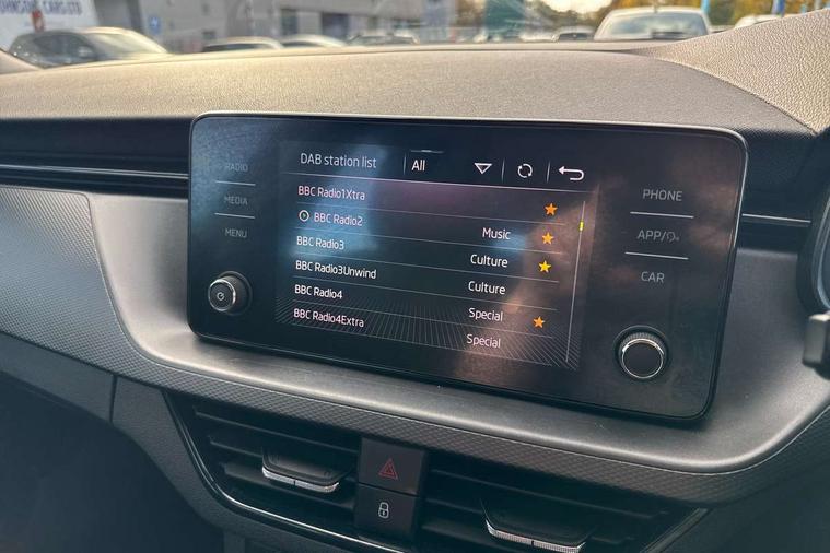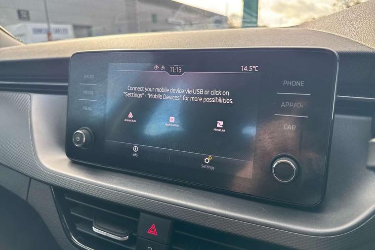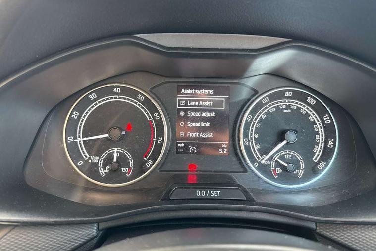Bluetooth system, E-call, Front assist system, PAS, Service indicator, Speed limiter, Wireless Smartlink for Apple CarPlay (wired for Android Auto), 8 Speakers, Auxiliary input socket, DAB Digital radio, Body colour bumpers, Body colour door mirrors and handles, Chrome grille surround, Dimming rear view mirror with black surround, Electrically adjustable and heated door mirrors, Front and rear electric windows, Headlight range control, Heated rear window, LED rear lights - low functionality, LED third brake light, Light sensors, Rain sensor, Rear fog lights, Rear side wing doors, Rear wiper, 12V Accessory socket in centre console, 3 seat bench in 2nd row, Chrome inner door handles, Cloth upholstery, Front head restraints, Glove compartment with illumination, Ice scraper, Isofix child seat fittings on outer rear seats, ISOFIX on front passenger seat, Manual lumbar support for front seats, Rake/reach adjustable steering wheel, Reading lights, Single front passenger seat, Sun visors with illumination on front passenger, Textile floor mats, Third rear headrest, Top tether for front passenger seat, Umbrella in driver's door, 3x3 point rear seatbelts, Airbags - driver and front passenger, ESP, Front passenger airbag deactivation switch, Front side airbags with curtain airbags, Hill hold control, Manual parking brake, Manual rear child locks, One tone horn, Rear disc brakes, Seatbelt reminder for driver an co-driver, Traction control, Tyre pressure monitor, Anti-theft alarm system with interior monitoring, backup horn, towing protection and remote central locking with SAFE system, Anti-theft wheel bolts, Electronic engine immobilizer,