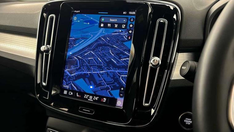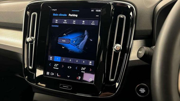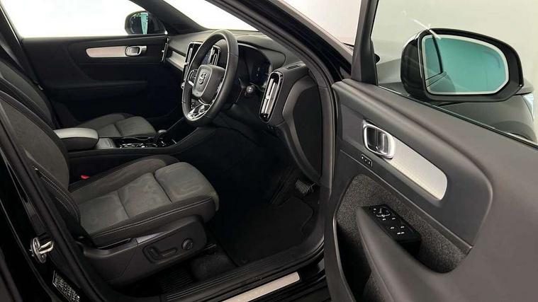 12.3" Progressive Driver Display, 9" centre console portrait touch screen, Adjustable steering wheel force, Bluetooth hands free telephone kit, Cruise control, Driver awareness - blind spot information system with steer assist, cross traffic alert with autobrake, rear collision warning and migitation, E-call, Front park assist, Google automatic services - Nav with google maps, apple carplay/android auto, voice recognition with google assistant, Hands free power tailgate, Lane keep assist with driver alert control, Oncoming Lane Mitigation, Rear park assist, Rear park assist camera, Speed limiter, Speed sensitive steering, Wireless/Inductive Mobile Phone Charging, Dynamic chassis, DAB Digital radio, High performance sound, 8 speakers/250W, front USB and 2 rear type C USB, Steering wheel mounted remote controls, Adaptive brake lights with high level LED brake lights, Auto dimming feature for exterior door mirrors, Auto dimming interior mirror, Automatic headlamp levelling, Automatic LED Headlights + Active high beam incorporating daytime running lights, Front aluminium tread plates, Front and rear electric windows, High gloss black front and rear skid plate, High gloss black mesh front grille with high gloss black surround, High gloss black window trim, Home safe and approach lighting, Integrated roof rails in high gloss black, LED front fog lights, Puddle lights, Rain sensor with automatic windscreen wiper activation, Rear side wing doors, Rear wiper, Roof antenna, Roof spoiler, Visible VIN plate, 12V socket in front tunnel console and luggage compartment, 2-Zone electronic climate control with CleanZone air quality system and pollen filter, 3 seat bench in 2nd row, 3 Spoke tailored steering wheel with chrome trim, 60/40 versatile split folding rear seat, A-pillar parking ticket holder, Ambient front door and instrumental panel lighting, Centre console cupholders and storage, Flexible load floor and grocery bag holder, Floor mats, Front door pocket and front cupholder illumination, Front footwell illumination, Front headrests, Front reading light and theatre lighting, Front seat cushion extensions, Front tunnel pocket, Glovebox bag hook, Heated front seats, Height adjustable passenger seat, Height/reach adjustable steering column, High gloss centre tunnel deco, Illuminated glovebox, Illuminated luggage compartment, Illuminated tailgate, Illuminated vanity mirrors, Integrated waste bin, Isofix attachments on outer rear seats, Load protection net, Multi directional lumbar support, Power driver seat with memory + exterior mirrors memory, Rear armrest / integral cup holders / storage tray, Rear headrests, Rear reading and courtesy lights, Single front passenger seat, Underfloor cargo storage, Climate pack without heated front seats - XC40, 3x3 point rear seatbelts, City safety with steering support with Pedestrian + cyclist + front collision warning with full auto brake and rear auto brake, Drivers knee airbag, Dual stage driver/passenger airbags, Electronic parking brake with auto hold, First aid kit, Front and outer rear seatbelt reminder and pretensioners, Front seats SIPS airbags, Hill descent control, Hill start assist, Inflatable curtain, Passenger airbag cut-off device, Power child locks on rear doors, Road sign information display, Run off Road Mitigation, Run off Road Protection, SIPS (Side Impact Protection System), Slippery road and hazard light alert, Stability and Traction Control with Spin control, Engine Drag Control and Corner Traction Control, Tyre pressure monitoring system, Vehicle deceleration control with Anti-lock Brake System, Electronic Brake Distribution and Emergency Brake Assist, Warning triangle, WHIPS whiplash protection system - front, Anti-theft alarm including immobiliser/volume sensor + level sensor, Key integrated remote control central locking + fuel flap with deadlocking system and auto open/close power windows, Keyless drive includes keyless entry and keyless start, Locking wheel nuts,