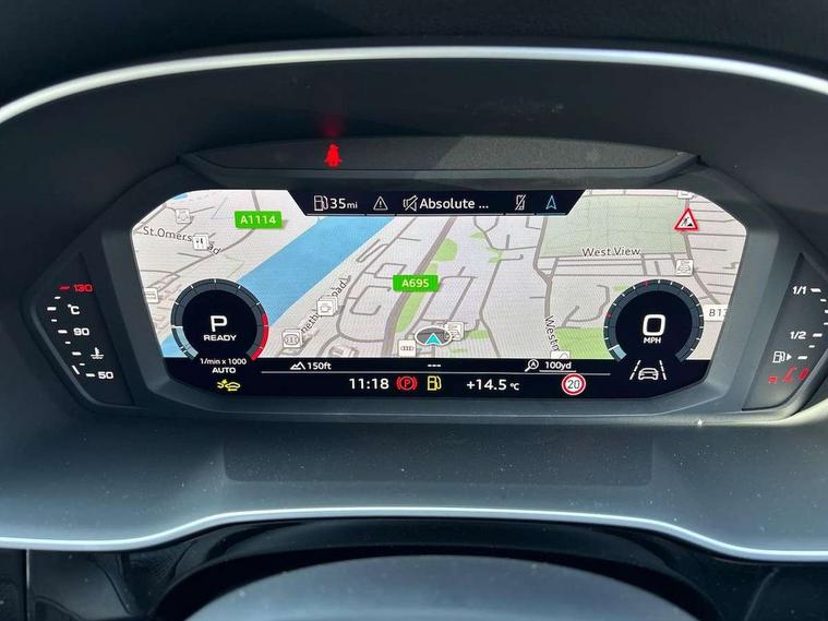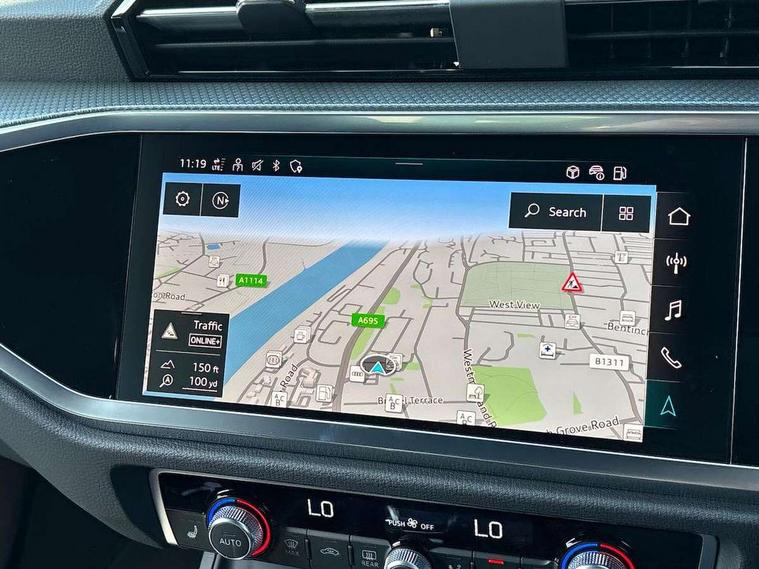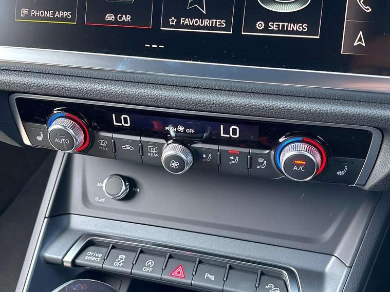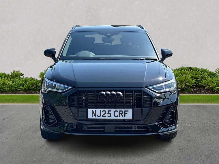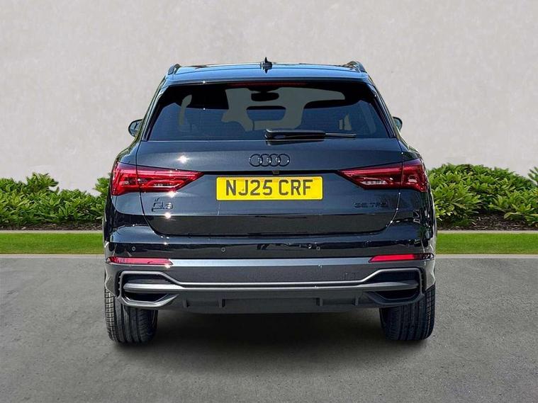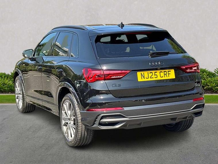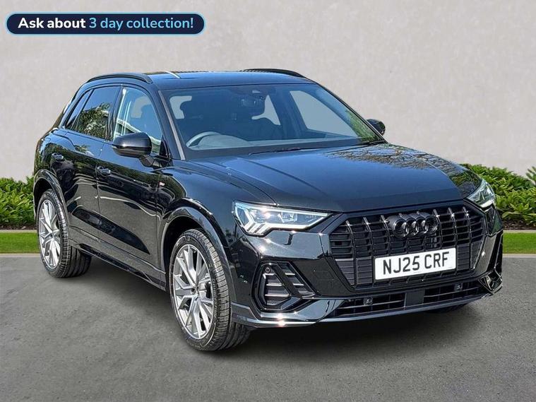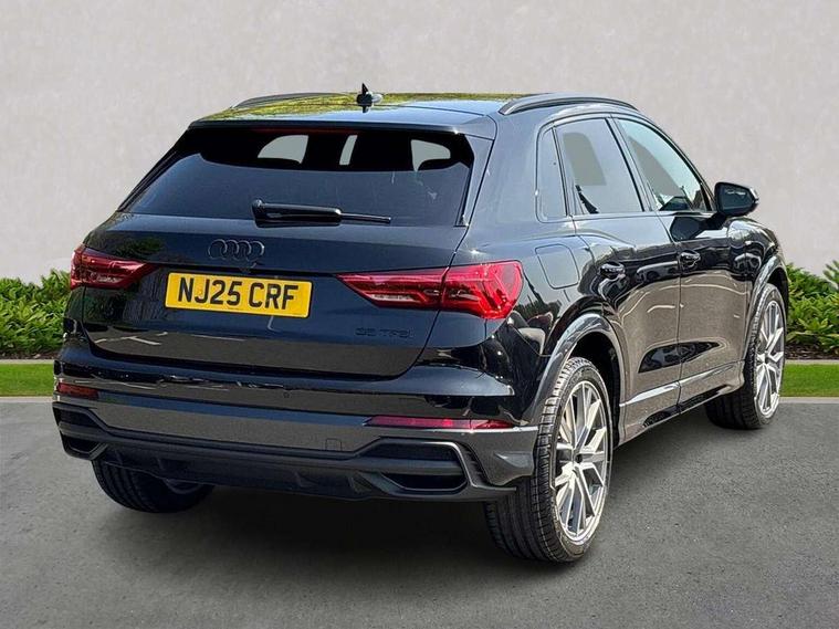 Amazon alexa Integration, Audi connect safety and service, Audi drive select, Audi lane departure warning, Audi Virtual Cockpit - 10.25" display, Bluetooth interface, Camera based traffic sign recognition, Distraction and Fatigue warning, Legal emergency call, MMI Navigation Plus with high resolution 10.1 inch touchscreen colour display, Power operated tailgate, Progressive steering, Service interval indicator, Smartphone interface includes wireless Apple carplay/Android Auto, Start stop system with recuperation, Voice control system with natural language interaction, Sports suspension, 2 USB-C ports with charge and data functions, 6 passive loudspeakers, DAB digital radio module, Acoustic windscreen, Audi Beam uses LEDs to project the Audi logo onto the ground as you exit your Q3, Auto dimming door mirrors, Auto dimming frameless rear view mirror, Black roof rails, Electrically folding, adjustable and heated door mirrors with integrated LED side indicators and kerb view function for passenger side, Front and rear electric windows, Front fog lights, Grille vertical bars in aluminium silver/Matt, High gloss black finish B and C pillars, LED Dynamic rear indicators, LED headlights with LED daytime running lights, LED rear lights, LED third brake light, Privacy glass dark tinted rear and rear-side windows (from B-pillar backwards), Rain and light sensors, Rear diffuser grille in grained matt black, Rear diffuser strip in matt anthracite black, Rear side wing doors, Rear wiper, S line bumpers in contrasting Manhattan grey, Variable front intermittent wipers, 12V socket in rear centre console, 3 seat bench in 2nd row, 40:20:40 folding with manual adjustment for 60:40 forwards/backwards position and backrest angle, Adjustable rear seat bench/backrest with centre armrest and cupholder, Black cloth headlining, Dual zone electronic climate control, Electric lumbar support, Front and rear black floor mats with contrast stitching in rock grey, Front and rear headrests, Front centre armrest, Height and reach adjustable steering wheel, Illuminated door sill trims with S logo, ISOFIX child seat mounting for front passenger with airbag deactivation and outer rear seat including top tether attachment point for outer rear seats, Manual front seats with height adjustment, Perforated leather gearknob, Single front passenger seat, Stainless steel luggage compartment sill finisher, Stainless steel pedals, Twin leather upholstery with front sport seats + S embossing, Black styling pack - Q3, Non smoking pack - Q3, 3x3 point rear seatbelts, 6 airbags - Driver, front passenger, curtain and side windows, Audi pre-sense front with pedestrain and cyclist recognition, Electrically operated child locks on rear doors, Electromechanical parking brake, Electronic stabilisation control including ABS, ASR and EDL, Front seatbelt reminder, Hill descent control, Hill hold assist, Pre sense basic, Seatbelt monitoring, Tyre pressure warning, Warning triangle and first aid kit, Anti theft wheel bolts, Immobiliser, Remote central locking, Thatcham approved category 1 anti theft alarm, Aluminium look interior elements, Detail dashboard around MMI touch colour display in glass look, black with surround in aluminium look, Leatherette door armrest, Piano black inlay,