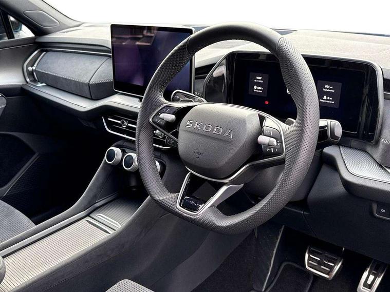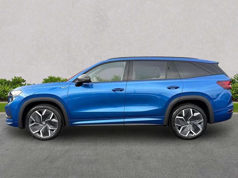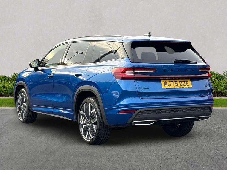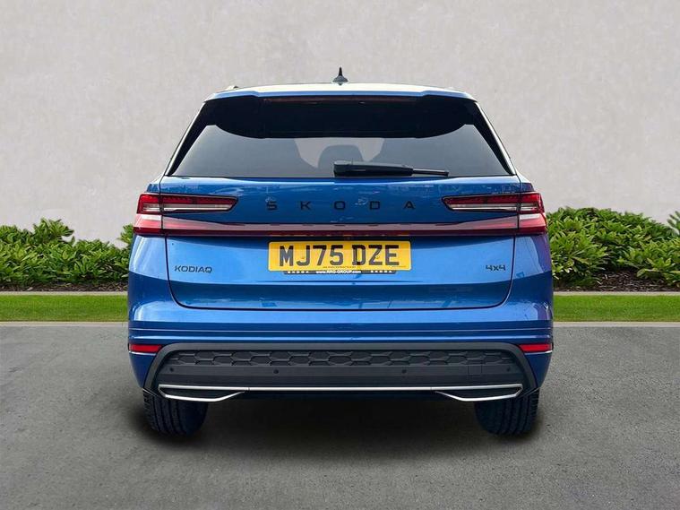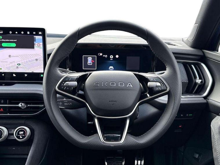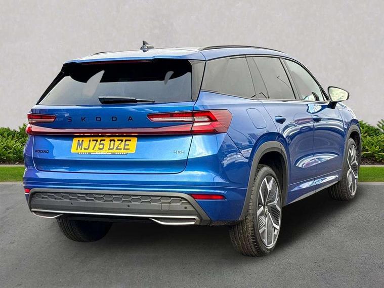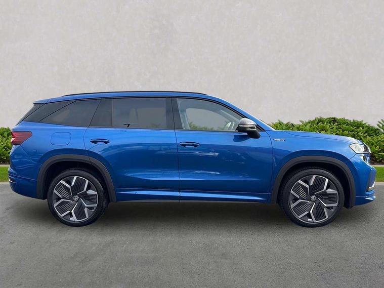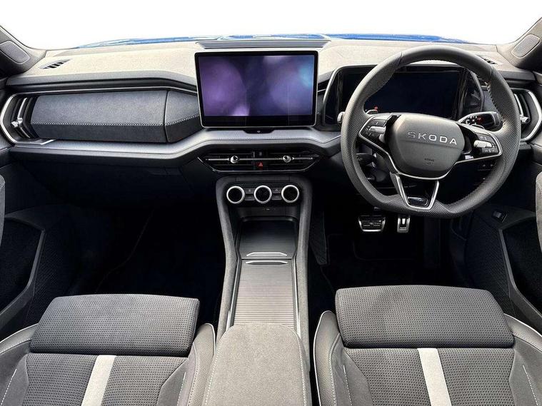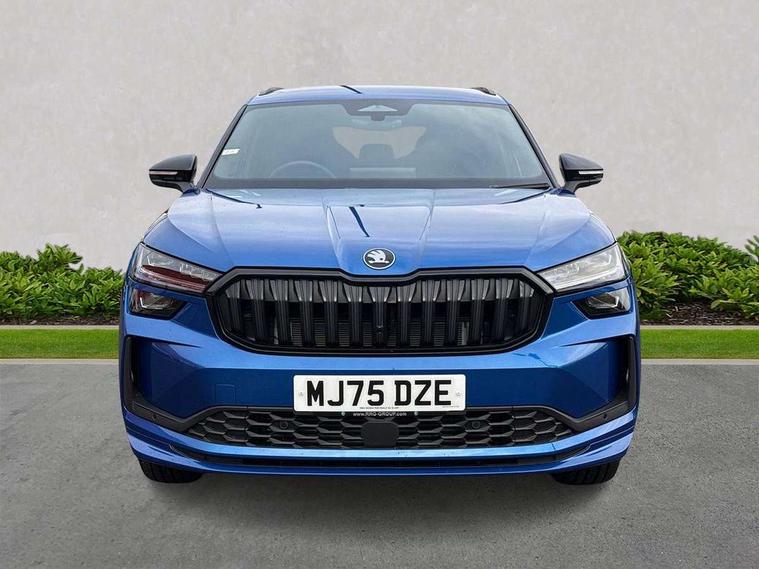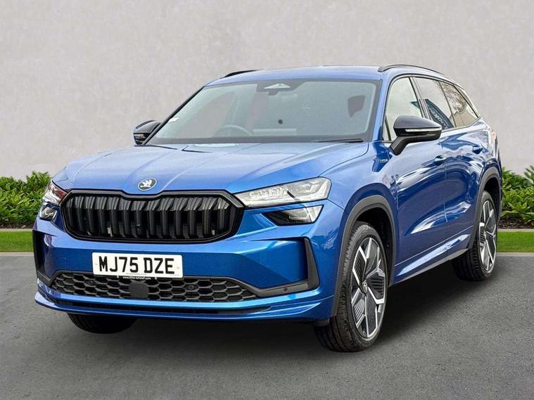 13" satellite navigation touchscreen display, Blind spot detection with door exit warning, Bluetooth system, ChatGPT functionality, Driver alert - Fatigue and drowsiness monitor, Dry display cleaner, Emergency call, Front and rear parking sensors, Front cross traffic assist, Lane assist, Off road modes, PAS, Rear traffic assist, Tailgate unlocking from outside, Traffic sign recognition, USB C Port x 2 in front centre console, Virtual Cockpit - 10.25" digital display, Voice control system, Wireless charging for two smartphones (15W) with cooling function, Wireless SmartLink for Apple CarPlay and Android Auto, Stop/start function, 2x USB-C in the rear, DAB Digital radio, Aero front windscreen wipers with intermittent function, Auto dimming rear view mirror, AWL (all weather lighting) and all weather light with cornering function, Black diffuser and decorative tailpipe with a unique dark chrome finish, Black roof rails, Black sports styling including front grille and window surrounds, Black wheel arch surrounds, Body colour door handles, Cornering light and poor weather light, Electric folding /adjustable/separted heated/folding door mirrors, auto dimming with boarding sports and memory function, Electric front and rear windows, Exterior black decorative trims, Front and rear sports bumpers including lower rear chrome strip, Gloss black door mirrors, Gloss black window frame and D pillar, Heat insulating glass in windshield, Heated rear window, Ice scraper in fuel tank cap, LED daytime running lights, LED third brake light in rear spoiler, Light assistant with automatic headlight control and coming home feature, Logo projection in door mirrors, Privacy glass, Rear roof spoiler, Rear side wing doors, Rear window wiper, Red decorative strip between rear LED lights, Safety reflectors on front and rear doors, Sportline badge on front fenders, Tailgate lettering in Black, Unique dark chrome design logo on alloy wheels, Window control switches with black trim, Windscreen wipers with rain sensor, Without engine designation, 1.5l bottle holder points in all door, 1x centre rear reading light, 2 seat bench in 3rd row, 3 configurable smart dials with 32mm coloured display, 3 seat bench in 2nd row, 4 foldable roof handles with rear coat hooks, Aluminium pedals, Ambient interior lighting - Dashboard, front-door stowage compartments, front and rear door panels and footwell lighting, Automatic gear selector on steering column, Chrome interior door handles, Driver/front passenger reading lights, Fabric headlining, Fixed bench 40:60:40 split folding backrests, Front and rear floor mats, Front centre armrest with jumbo box storage compartment, cup holder and 12V socket, Front sport seats, Height adjustable front headrests, Interior black decorative trims, Isofix child seat fittings in outer middle row rear seats and front passenger with top tether, Manually adjustable steering column, Pollen filter, Rear centre armrest with cupholders, Rear seat boot backrest release, Single front passenger seat, Skoda lettering on steering wheel, Storage pocket including mobile phone pockets on the backs of the front seats, Sunvisors with illuminated vanity mirrors, Three rear height adjustable headrests, Ticket holder on A Pillar, Tri zone climate control, Umbrella in door panel x1 made from sustainable materials, Upper and lower glovebox with card holder and coin compartment, USB C port by rear view mirror for charging only (15W), Acoustic package - Kodiaq, Performance package - Kodiaq, Sportline design selection pack - Kodiaq, Auto door release and activation of warning lights in the event of an accident, Driver and front passenger airbag with knee airbag and front passenger airbag deactivation, Electric child locks, Electronic parking brake, ESC (incl. ABS+EMD+MSR+ASR+EDL+HBA+DSR+RBS+ESBS+MCB+TSA+XDS), Front assist with braking reaction to vehicles, pedestrians and cyclists, Front disc brakes, Fuel cut off safety device, Height adjustable front 3 point seatbelts + pretensioners, Hill hold assist, Junction assist with automatic emergency braking, Rear disc brakes, Safety vest holder in door, Seat belt reminder for all seats, Three point rear seat belts, Two tone horn, Tyre pressure monitor, Alarm with interior monitoring and tilt sensor with safe function, Anti-theft wheel bolts, Immobiliser, Remote central locking with 2 keys, 20" Rila anthacite polished alloy wheel with black matte aero covers,