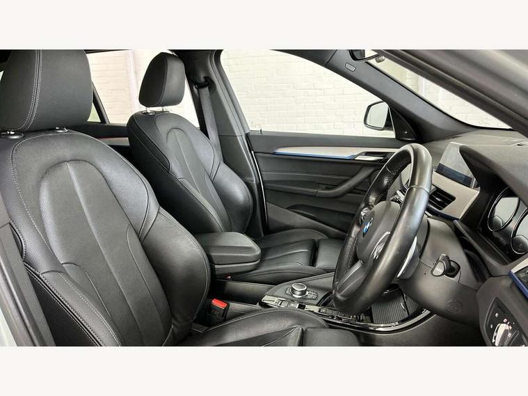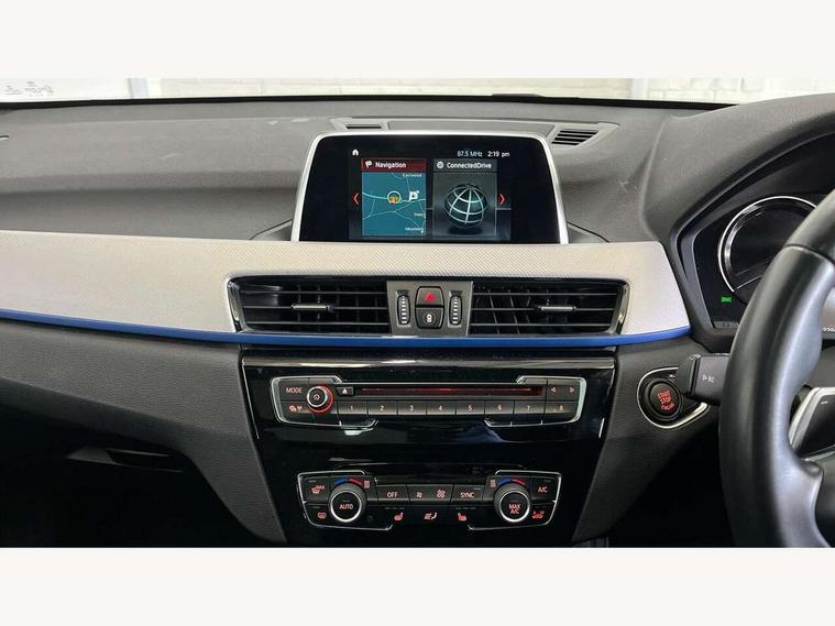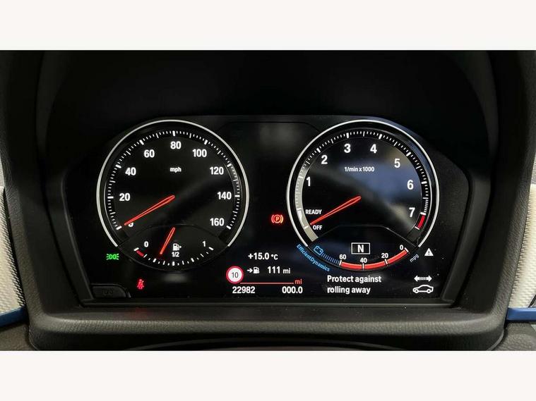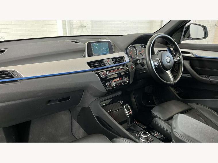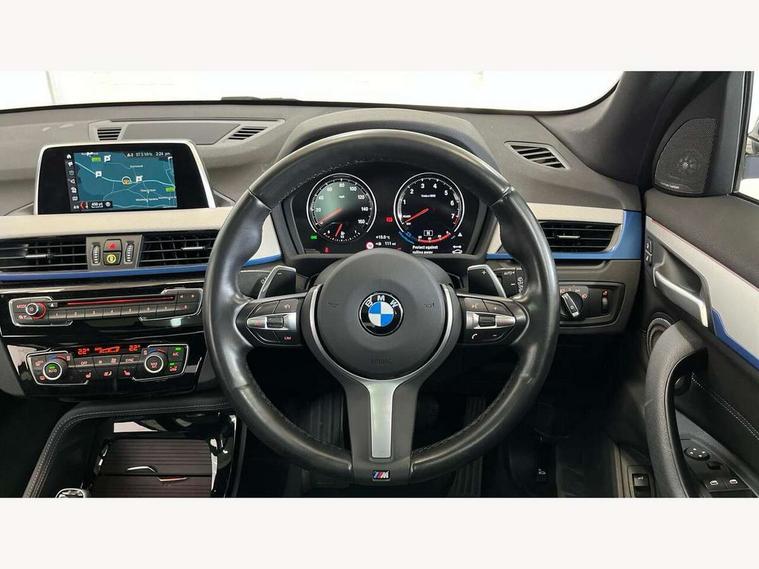 Active Guard incl speed limiting and lane departure functions with auto steering, and front collision warning with brake intervention, Ambient temperature display, Attentiveness assist, Automatic tailgate opening, BMW Online services, BMW remote services, BMW Teleservices, Brake pad wear indicator in front and rear, Instrument cluster with speedometer with miles per hour read out, tachometer and fuel gauge, Lights on warning by audio warning signal when ignition is switched off, On board computer, Outside temperature gauge, Personal Profile - automatic lock when driving away selectable, Real time traffic information, Service interval indicator, Speed limiter, Stop/start button, Tyre puncture warning system, 12V compressor with integrated sealant injection bottle and hose, Electronic differential lock, High precision injection, Performance Control, 2 USB Power socket for rear seat, BMW professional radio with CD player, DAB Digital radio, USB connection located in centre console, USB/audio interface, Adaptive LED Headlights, Adjustable headlights, Body colour bumpers, Body colour door handles, Body colour door mirrors, Clear lenses direction indicator lights, Direction indicator side lights integrated exterior mirrors, Dynamic brake lights, Electrically adjustable and heated door mirrors, Fingertip control / anti-trap function on electric window, Follow me home headlights, Front air inlets with black matt finisher and silver matt highlight, Front and rear electric windows, Front fog lights, Halogen headlights, Headlight beam throw control, Heat insulating tinted glass, Heated windscreen washer jets, High level third brake light, kidney grille with high gloss black vertical slats, LED daytime running lights, Lightweight engineering, M aerodynamic body styling, M door entry sills, M logo designation in side chrome, Rain sensor including auto headlights activation, Rear fog lights, Rear window aerial, Rear window wash/wipe, Reversing light in rear light cluster, Shark fin antenna, Sill cover in silver matt insert, Twin chrome exhaust tailpipes x2, Visible VIN plate, Welcome home function, 12v power point in centre console, 3 rear headrests, 3 spoke sport nappa leather steering wheel, 4 grab handles, Anthracite headlining, Boot light, Centre console with cupholders, Child seat ISOFIX attachment for two outer rear seats and front passenger seat with anchorage points, Driver and front passenger heated seats, Driver/passenger sunvisors with ticket holders, Drivers folding storage compartment, Dual zone automatic air conditioning, Extended storage, Front and rear door armrests, Front centre armrest/sliding cover, Front sports seats, Front/rear adjustable head restraints, Gearshift lever with M designation, Illuminated glovebox, Leather gearknob/gaiter/handbrake grip, LED ambient lighting in door trim, Luggage area underfloor compartment, Luggage compartment lighting, Luggage compartment loading edge with stainless steel insert, Multifunction steering wheel, Rake/reach adjustable steering wheel, Rear coded belt buckles, Sliding/split/reclining 40/20/40 rear seat with 60/40 split rear seat base, Steering wheel gearshift paddles, Velour floor carpets, Extended storage package - X1, 3 rear 3 point seatbelts, ABS/EBD, Audio/visual collision warning system, Automatic Stability Control (ASC), Battery safety cut-off, BMW emergency call, Brake drying, Brake energy regeneration, Braking readiness, Collision mitigation braking system, Cornering brake control (CBC), Crash Sensor - activates hazard/interior lighting + unlocks doors, Driver/Front Passenger airbags, Driver/front passenger side airbags, Dynamic brake control, Dynamic stability control + (DSC+), Dynamic Traction Control - DTC, Electronic parking brake, Front and rear head airbags, Front passenger airbag deactivation, Front seatbelt force limiters, Front ventilated disc brakes, Hill start assist, Pyrotechnically pre-tensioned front seatbelts, Rear disc brakes, Rear door child safety locks, Seatbelt warning, Side impact protection, Twin horns, Tyre pressure monitor, Warning triangle and first aid kit, Auto door lock when driving, Central locking including boot and fuel flap with deadlocks, Engine immobiliser, Locking wheel nuts, Remote control Thatcham category 1 alarm, Remote control with integrated key with M specific highlight, High gloss black centre console, Low rolling resistance tyres,