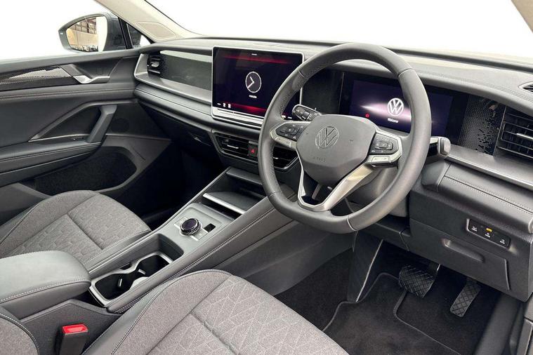 Adaptive cruise control (ACC), Digital Cockpit Pro - 10.25" high resolution dash display screen with customisable menus and information, Driver alert system, Driver attention monitoring system, Dynamic road sign display, E-Sim card for online connectivity, eCall emergency call system, Lane change system, Side assist, Rear traffic alert and Exit warning system, Multifunction front facing camera, Oncoming vehicle braking when turning including swerve support, Start/stop system with regenerative braking, Voice activation spoken voice commands for telephone and navigation system, Warning signal and warning light for front and rear seatbelts not fastened, Wireless App-Connect, Front wheel drive, Digital radio reception (DAB), Diversity antenna for FM reception, Auto dimming interior rear view mirror, Automatic headlight control system, Body colour door handles, Body-coloured exterior mirror housings, Chrome moldings on the side windows, Comfort bumpers, Coming/leaving home lighting function, Exterior mirrors convex on the left and aspherical on the right, Heat insulating glass in side and rear windows, Laminated safety glass winshield, heat insulating, LED 3rd brake light, Puddle lights, Rain sensor windscreen wipers, Rear fog light on one side, reversing light on both sides, Rear side wing doors, Rear wiper, Reverse activated passenger's door mirror, Surround lighting with welcome light, 12V outlet in center console rear and in luggage compartment, 3 rear headrests, 3 rear seat bench in 2nd row, backrest split folding with centre armrest and 2 seats in 3rd row of seats, Carpet mats, front and rear, Centre console with illuminated storage compartment with sliding cover and two drinks holders, Door and side trim panel with leatherette insert, Flat luggage compartment floor, Front centre armrest, ISOFIX anchors for child seats on outer rear seats and front passenger seat compatible with i-Size, Mechanical rear seat release, Power adjustable lumbar support in front, Single front passenger seat, Sun visors with illuminated vanity mirrors, 3 Point seat belts in front with pretensioners, 3 point seatbelts in outer rear with ECE label, Autonomous emergency braking front assist with pedestrian and cyclist monitoring, Driver and front passenger airbag with front passenger airbag deactivation, Electronic parking brake with auto hold, First aid kit with warning triangle and safety vest, Front and rear curtain airbags, Front and rear side airbags, Front centre airbag, Front disc brakes, Hill start assist, Rear disc brakes, Two tone horn, Decorative material set,