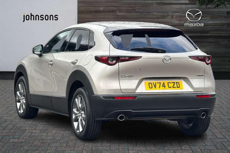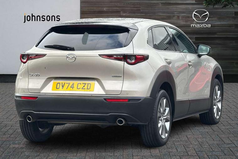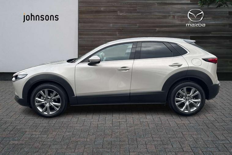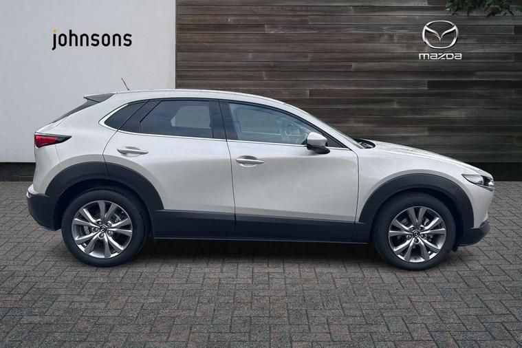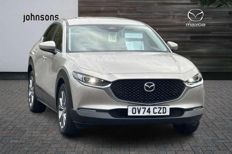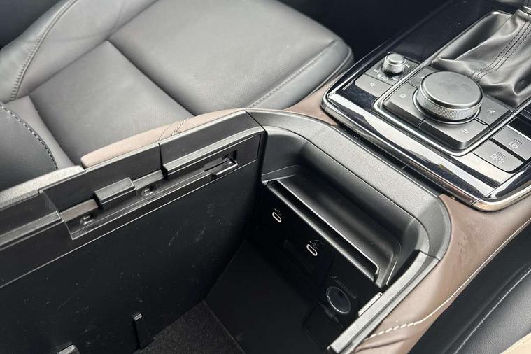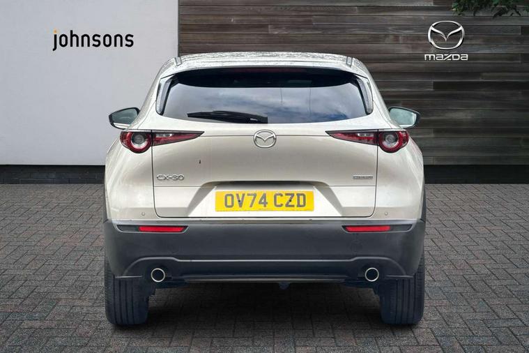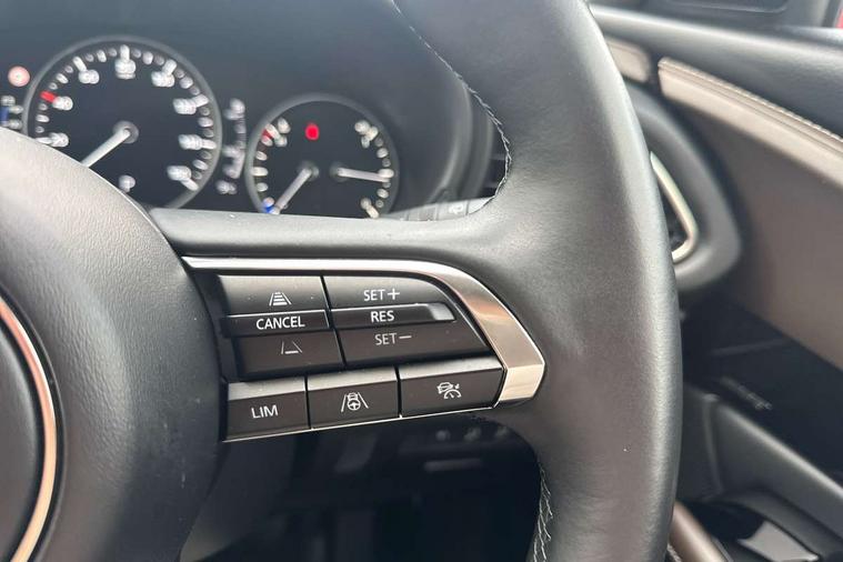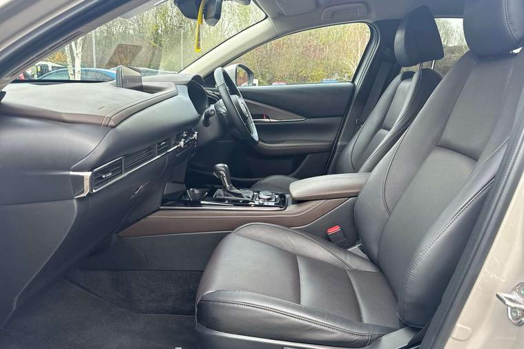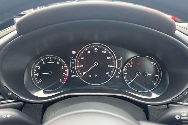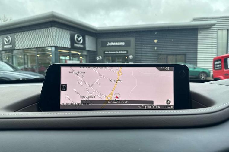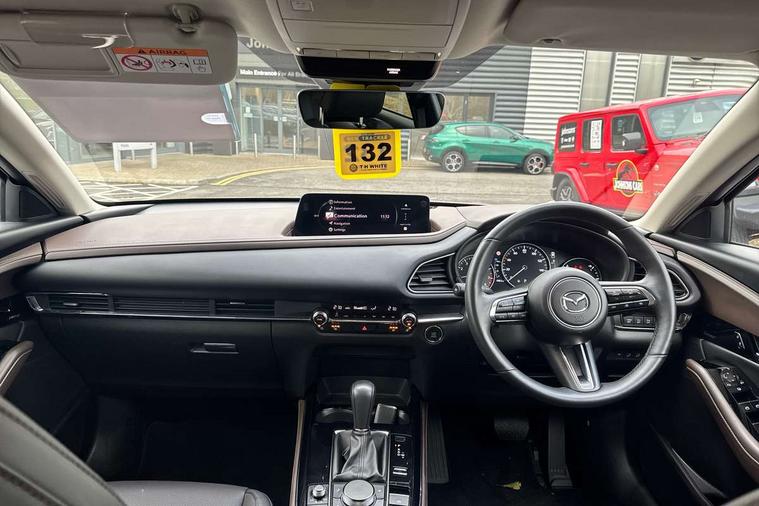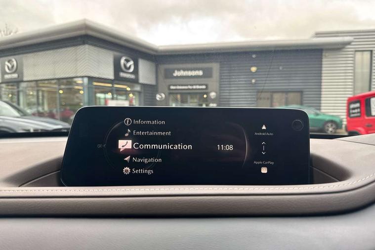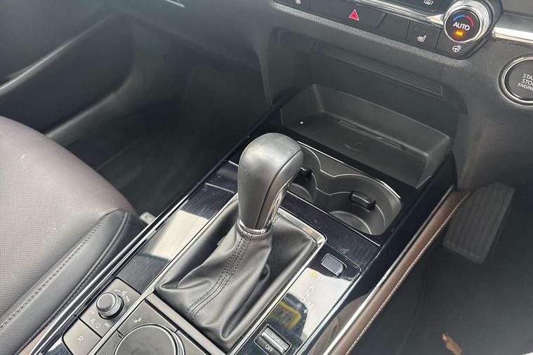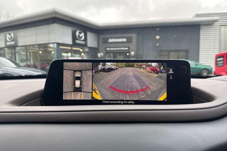 10.25" display with Mazda Connect infotainment, 360 View Monitor, 7" TFT Colour driver instrument panel display, Adaptive cruise control (Mazda radar cruise control) features stop and go, Blind spot monitoring with rear cross traffic alert, Cruising Traffic Support, Drive mode selector, Driver attention alert system, Driver monitoring system, E-call with GPS, Emergency stop signalling system, Engine start/stop button, Front and rear parking sensors, Front Cross Traffic Alert, Integrated Alexa Voice Assistant, Integrated bluetooth, Integrated Mazda navigation system, Intelligent speed assist, Lane keep assist system (LAS) with Lane departure warning system (LDWS), Mazda connected services, PAS, Power lift gate, Qi wireless charging, Service indicator, Tailgate, Traffic sign recognition, Trip computer, Windscreen projected colour active driving display (HUD), Wireless Apple CarPlay/Android Auto, Cylinder Deactivation, i-stop, 2 x USB Type-C inputs, AM/FM and DAB radio, Bose surround sound system with 12 Speaker, Bose center point, Bass match and audio pilot technology, Multimedia Commander including separate volume dial, Steering wheel mounted audio/bluetooth controls, Adaptive LED Headlights, Auto dimming driver's door mirror, B-pillar and C-pillar garnishes in gloss black finish, Body coloured, electrically adjustable, heated auto power folding door mirrors with integrated indicators, Chrome finish signature wing in front grille, Coming/leaving home lighting function, Door mirrors with adjustable memory and tilt-down function when reversing, Dual bright finish exhaust tip trim, Dusk sensing headlights, Electric front/rear windows with one touch auto up/down, Frameless auto dimming interior rear view mirror, Front kodo turn signal, Front wiper de-icer, Gloss black front grille, Gloss black rear roof spoiler, High beam assist, LED auto headlight levelling, LED signature daytime running lights, Privacy glass (rear side windows and rear screen), Rain sensing front wipers with adjustable speed and intermittent wipe, Rear fog lights, Rear side wing doors, Rear wiper, Signature LED rear combination lights, Third brake light, 12V power outlet in centre console, 3 seat bench in 2nd row, 60/40 split fold down rear seats, Bright interior trim accents with steering wheel centre bezel, surround of engine start / stop button and glove box handle, Dashboard, door cards and front centre armrest in rich brown leather, Driver and front passenger visors with covered vanity mirror and driver ticket holder, Driver's seat, power tilt, slide, recline, height and lumbar adjustment, Driver, front passenger and two rear door storage, Driver, Front passenger and two rear grab handles with coathooks, Dual zone climate control air conditioning with rear air vents, Folding rear centre armrest with two cup holders, Front and rear (x3) head restraints, Front and rear LED lighting, Front armrest, Front centre storage with two cupholders with lid, Front passenger seatback pockets, Front passengers seat manual slide, recline and height adjustment, Gear shift indicator, Glovebox illumination, Heated front seats with 3 stage setting, Heated steering wheel, ISOFIX child seat anchorage points attached on outer rear seats, Leather upholstery with interior accents, Leather wrapped gear shift knob, Leather wrapped steering wheel with telescopic and tilt adjustment, LED luggage compartment lighting, Light roof headlining and pillars, Paddle shift controls, Roof mounted sunglasses holder, Single front passenger seat, 3 point ELR front seat belts x2 with pretensioners, 3 point ELR rear seat belts, Anti-lock braking system (ABS), Drivers knee airbag, DSC - Dynamic Stability Control, Electronic parking brake with auto disengage function and auto hold function, Front and rear curtain airbags, Front and rear smart city brake support, Front dual stage driver and single stage front passenger airbags, Front passenger airbag cut-off switch, Front side airbags, G-Vectoring control plus, Hill launch assist, Manual child lock in rear doors, Mild Hybrid system with regenerative braking, Rear cross traffic braking, Seatbelt reminder for driver/front passenger and rear seats, Traction control system (TCS), Tyre pressure monitoring system (TPMS), Remote central locking with deadlocking and automatic door lock when driving, Smart keyless entry, Thatcham accredited alarm and immobiliser, Dark vinyl door panel inserts, 18" Silver metallic alloy wheels, Emergency tyre repair kit,