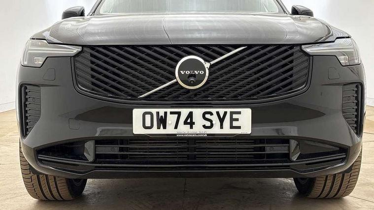 11.2" centre console touch screen, 12.3" Progressive Driver Display, 360 degree surround view parking camera with side proximity sensors, Adjustable steering wheel force, Apple carplay (wired), Bluetooth handsfree system, Drive mode settings, Driver alert control with lane keeping aid, Driver assistance (pilot assist and adaptive cruise control), Driver awareness - Blind spot information system with steer assist, cross traffic alert with autobrake and rear collision warning and mitigation, Emergency call service, Front and rear park assist, Google Automotive Services - Navigation with Voice recoginition and google assistant, Handsfree power tailgate opening and closing, Intelligent speed assistance, Oncoming Lane Mitigation, PAS, Power operated tailgate, Service interval indicator, Speed sensitive steering, Trip computer, Volvo on call, Wireless/Inductive Mobile Phone Charging, 6m 3 phase 16amp Type 2 / mode 3 charge cable, 7m 10amp charge cable with 3 pin plug, 8 speed automatic transmission with start/stop + manual change functions, Active four C chassis - four corner adaptive dampers with electronic air suspension, Electric rear axle drive, Lithium-ion battery, On board charger - 6.4 kW 2 phase/3.7kW single phase, Recharging port located in nearside front wing, DAB Radio (Digital Audio Broadcasting), Low speed exterior sound speaker, Premium Sound by Harman Kardon, dirac unison, dolby pro logic II surround sound, 13 speakers/600W output and fresh air subwoofer, Steering wheel remote infotainment controls, Adaptive brake lights with high level LED brake lights, Auto dimming interior + exterior mirrors, Auto folding and heated power door mirrors, Automatic headlight levelling system, Automatic matrix LED headlights with Adaptive shadow technology and Active high beam, incorporating Day running lights, Body colour bumpers, Front and rear power windows, Headlight cleaning system, Heated front windscreen, High gloss black door mirrors and window surround, High gloss black front and rear bumper deco, High gloss black front grille and deco, Home safe and approach lighting, Integrated roof rails in high gloss black, Power glass tilt and slide panoramic sunroof with sun curtain, Puddle lights, Rain sensor with automatic windscreen wiper activation, Rear side wing doors, Rear wash/wipe with intermittent wipe setting, Roof antenna, Roof spoiler, Visible VIN plate, 12V socket in luggage compartment, 2nd Row centre armrest with and cupholders, 3 Spoke tailored sport steering wheel with chrome trim, 4 zone electronic climate control with Clean zone air quality system + pollen filter, A-pillar parking ticket holder, Air conditioning for 3rd row of seats, Air purifier PM2.5, Ambient door and instrument panel lighting, B Pillar ventilation, Bright metal luggage scuff plate, Centre console cupholders and storage, Floor mats, Front and rear courtesy lights, Front and rear door pocket illumination, Front footwell and side step illumination, Front headrests, Front reading lights, Front seat cushion extensions, Front tunnel storage illumination, Glovebox compartment light, Heated front seats, Heated rear seats, Heated steering wheel, Height/reach adjustable steering column, Illuminated front and rear aluminium tread plates, Illuminated luggage compartment, Illuminated tailgate, Illuminated vanity mirrors + ticket holder, Inner door release handle illumination, Isofix outer rear child seat preparation in 2nd row, Load cover, Load protection net, Lockable glovebox compartment, Luggage compartment divider with grocery bag holder, Outboard armrest with cupholder and storage for third row passengers, Power driver seat with multi directional lumbar support and memory for seat and exterior mirrors, Power folding 2nd row headrests, Power passenger seat with multi directional lumbar support and memory, Rear footwell and side step illumination, Rear headrests, Rear reading lights, Second row integrated child seat for centre seat, Single front passenger seat, Textile headlining, Three 2nd row individual folding passenger seats with fore/aft adjustment, Two 3rd row individual folding passenger seats, Underfloor luggage compartment storage, 7 three point seatbelts, City safety with steering support includes pedestrian, cyclist detection, front collision warning with full auto brake and rear auto brake, Driver and passenger airbags, Drivers knee airbag, First aid kit, Front seats SIPS airbags, Hill descent control - off drive mode, Hill start assist, IC (Inflatable Curtains) - Full Length, Passenger airbag cut-off switch, Power child locks on rear doors, Power parking brake with auto hold function, Road sign information display, Run off Road Protection, Seatbelt reminder and pretensioners for all seats, SIPS (Side Impact Protection System), Slippery road and hazard light alert, Stability and Traction Control with Spin control, Engine Drag Control and Corner Traction Control, Tyre pressure monitoring system, Vehicle deceleration control with Anti-lock Brake System, Electronic Brake Distribution and Emergency Brake Assist, Warning triangle, WHIPS whiplash protection system - front, 2x Key integrated remote control central locking + deadlocking system and auto open/close windows, Anti-theft alarm including immobiliser/volume sensor + level sensor, Keyless drive includes keyless entry and keyless start, Locking wheel nuts, Tailored instrument panel and door tops, Tyre sealant kit and compressor,
