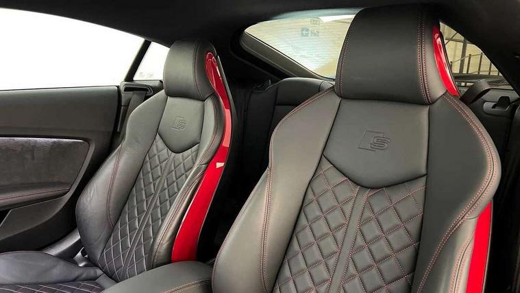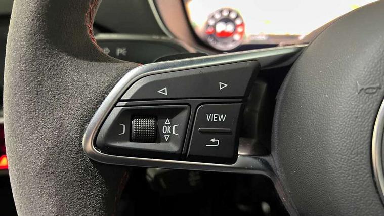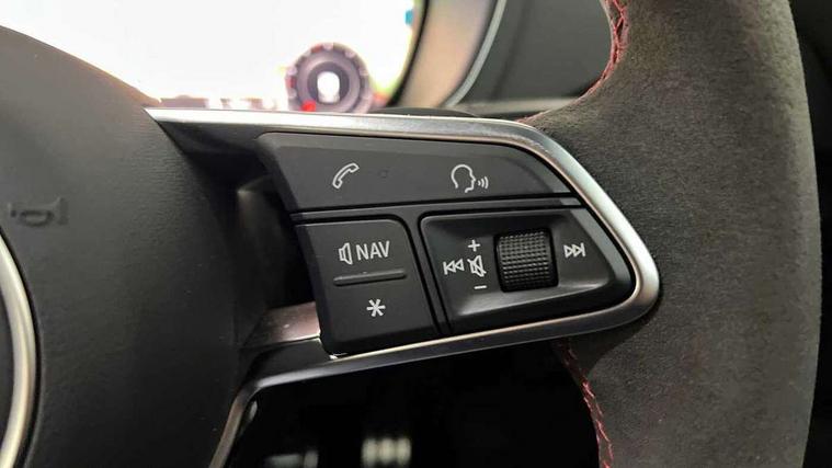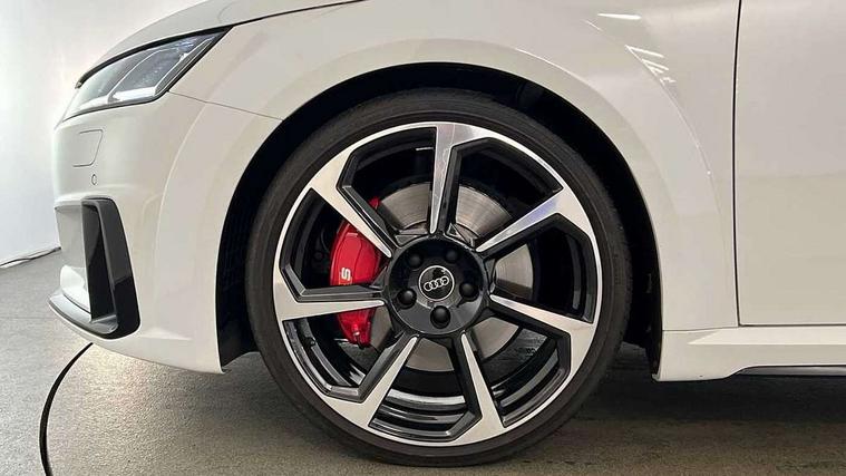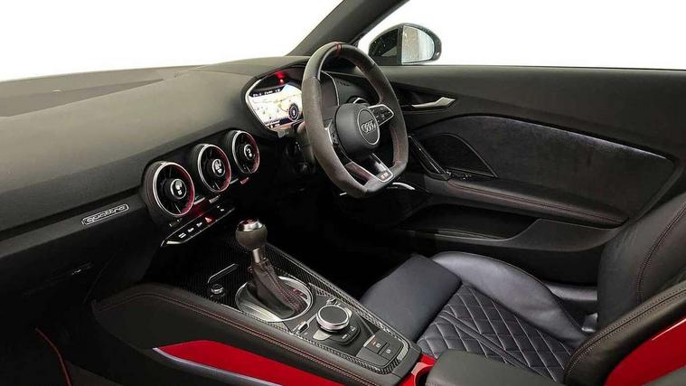 Audi drive select with 4 Pre configured modes, Audi Phone Box with wireless charging - Qi enabled compatible phone and additional bluetooth interface, Audi smartphone interface, Audi virtual cockpit - 12.3" high-resolution LCD display with fully customisable instrument cluster, Cruise control + speed limiter, Emergency call service, Progressive power assisted steering, Service interval indicator, Start/Stop system with energy recuperation, TP memo, Audi magnetic ride, TTS suspension, AM/FM radio, Bluetooth audio streaming, DAB Digital radio, Aluminium door mirror housings, Audi Beam uses LEDs to project the Audi Sport logo, Audi rings decals, Auto dimming rear view mirror, Auto headlight range control, Dark privacy glass from B-pillar backwards, Electric folding door mirrors, Electric front windows, Electrically adjustable and heated door mirrors with integrated LED side indicators, Heat insulating glass in windshield, Heat reflecting windows, LED 3rd brake light, LED daytime running lights, LED headlights with LED rear lights + dynamic rear indicators, Light and rain sensors, Rear boot, 12V socket, 2 rear seats, 3 spoke flat bottomed contour leather multi-function TTS sport steering wheel and TTS badging, 4 way electric lumbar support for driver and front passenger, Alcantara leather with 12o'clock marker and express red contrast stitching in steering wheel, Black headlining, Door sill trims with aluminium inlay and TTS logo, Fine nappa leather upholstery with S embossing + contrasting express red stitching on upholstery, Steering wheel and gear knob gaiter, Front centre armrest, Front passenger seat, Front super sports seats, Heated front seats, Integrated head restraints, ISOFIX child seat mounting for front passenger seat with airbag deactivation, Manual adjustment of seat height, fore/aft position, seat angle, seat depth and backrest angle, Rear head restraints, Rear top tether child seat ISOFIX attachment, Red piped floor mats, Split folding rear seat, Black styling package - TT, Comfort and sound pack - TT, Leather pack - TT, Non smoking pack - TT/TT RS, Plus pack - TT Black Edition/Final Edition Coupe, S design body styling pack - TTS, Technology pack without Audi phone box - TT, 3 point front seat belts, ABS, ASR traction control, Curtain airbags, Driver and front passenger airbag with front passenger airbag deactivation, EDL traction control, Electromechanical parking brake, ESP, First aid kit, Front side airbags, Head airbags, Hill hold assist, Red brake callipers, Seatbelt warning, Tyre pressure loss indicator, Warning triangle, Anti theft alarm, Anti theft wheel bolts, Immobiliser, Remote central locking, Carbon inlays, 20" 7 spoke anthracite black, gloss-turned Audi sport alloy wheels, Tool kit, Tyre repair kit,