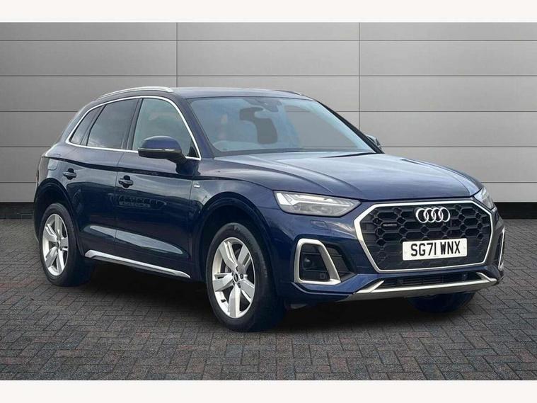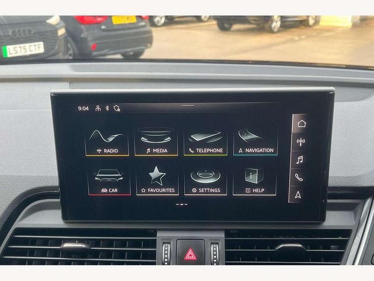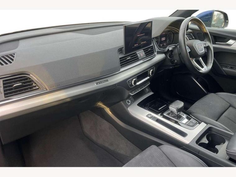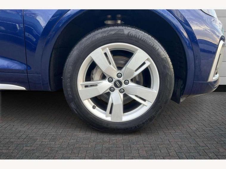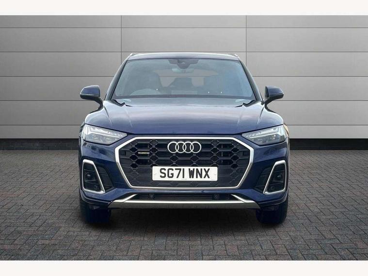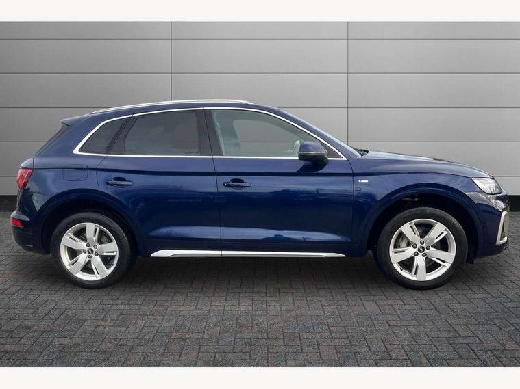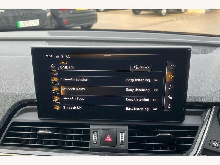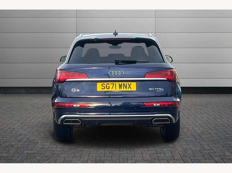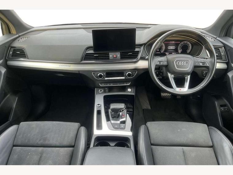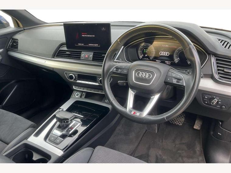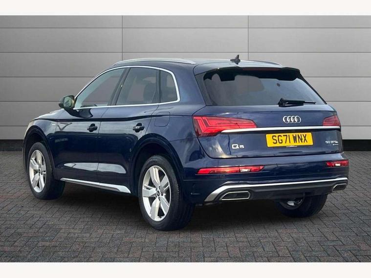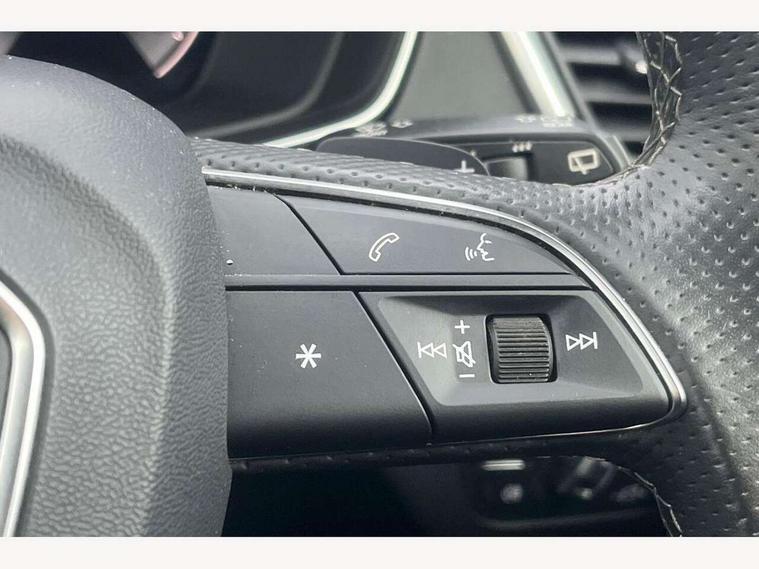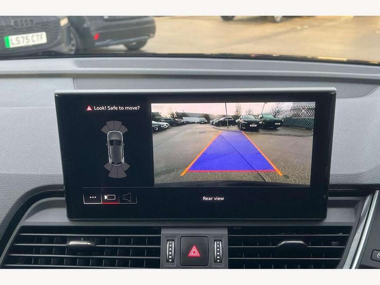 Audi connect safety and service (e-call), Audi connect with Amazon Alexa Integration, Audi drive select, Audi virtual cockpit plus with 12.3" screen and three different layout designs, Audi wireless smartphone interface, Automatic start-stop system with coasting functionality and efficiency programme, Bluetooth interface, Electro - mechanical power assisted steering, MMI navigation plus with 10.1" touch screen, Power tailgate, Reversing camera, Service interval indicator, Voice control system with Audi hotword activation "Hey Audi", 3 pin 10 amp domestic charging cable, Dynamic suspension, Quattro on demand, Type 2 mode 3 22kW 32 amp charging cable, Type 2 socket for AC charging, 2 x USB charging port with aux input socket, DAB Digital radio, Acoustic windscreen, Aluminium roof rails, Audi matrix LED headlights with dynamic front and rear indicators, Auto dimming rear view mirror, Automatic headlights and windscreen wipers, Body colour bumpers, Body colour door mirrors, Body colour rear diffuser with matt aluminium silver surrounds, Body colour underbody protection, Chrome plated exhaust trims, Door sills in Selenite silver, Electric adjustable/heated/folding door mirrors, Front air inlet surrounds in aluminium, Front and rear electric windows, Front radiator grille in honeycomb design, Headlight washers, Lower bumpers painted in contrast Manhattan grey, Rear chrome trim strip below lights, Rear privacy glass and rear side windows, Rear spoiler, Rear wiper, Roof bars, S Line badges on the front wings, S Line front and rear bumpers, S Line side skirts, 3 rear headrests, 40:20:40 split folding rear seat with rear centre armrest, Black cloth headlining, Comfort front centre armrest, Contrast stitching on seats, steering wheel and gear lever gaiter, Deluxe 3 zone electronic climate control, Front/rear floor mats, Gear lever in black leather, Heated front seats, Height adjustable front head restraints, Height/reach adjustable steering column, Illuminated door sill trims with S logo, ISOFIX child seat mounting and top tether, Manual seat adjustment with 4-way electric lumbar support, Rear seat bench plus, Sunvisors with vanity mirrors, Trunk roller cover, High gloss pack - Q5, LED interior light pack - Q5, 3 point seatbelts on all seats, 6 airbags - Driver, front passenger, curtain and side airbags, Electrically operated child locks on rear doors, Electromechanical parking brake, Electronic stabilisation control including ABS, ASR and EDL, Front passenger airbag deactivation, Hill descent control, Hill hold assist, Multi collision brake assist, Pop-up bonnet for pedestrian protection, Pre sense city, Seat belt force limiter, Seatbelt monitoring, Tyre pressure warning, Warning triangle and first aid kit, Anti theft alarm, Anti-theft wheel bolts, Keyless Go access/ignition system, Matt brushed aluminium inlays, Tool kit, Tyre repair kit,