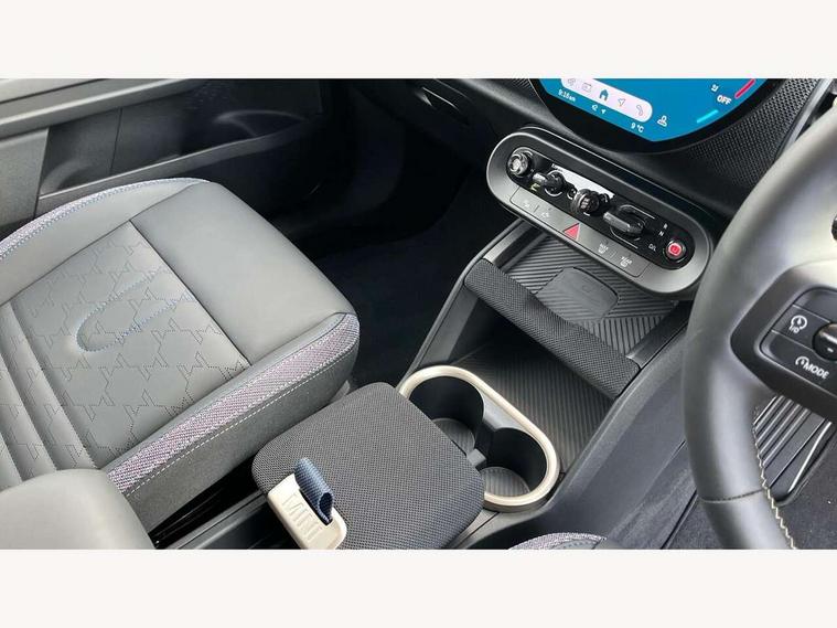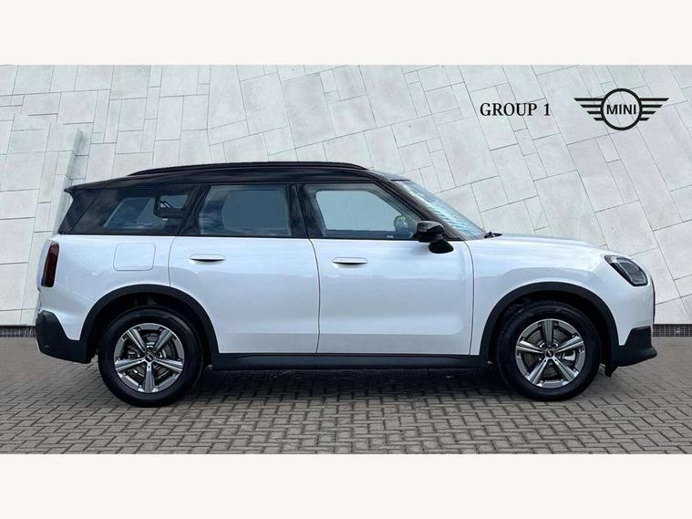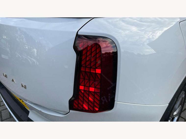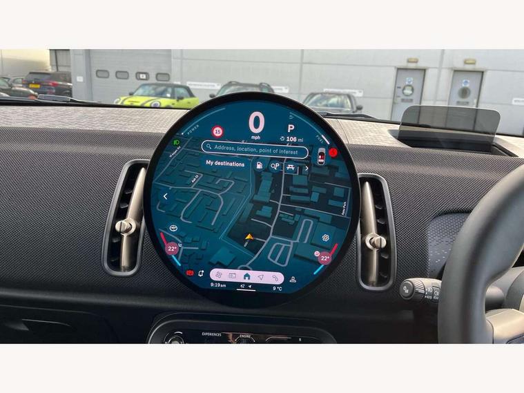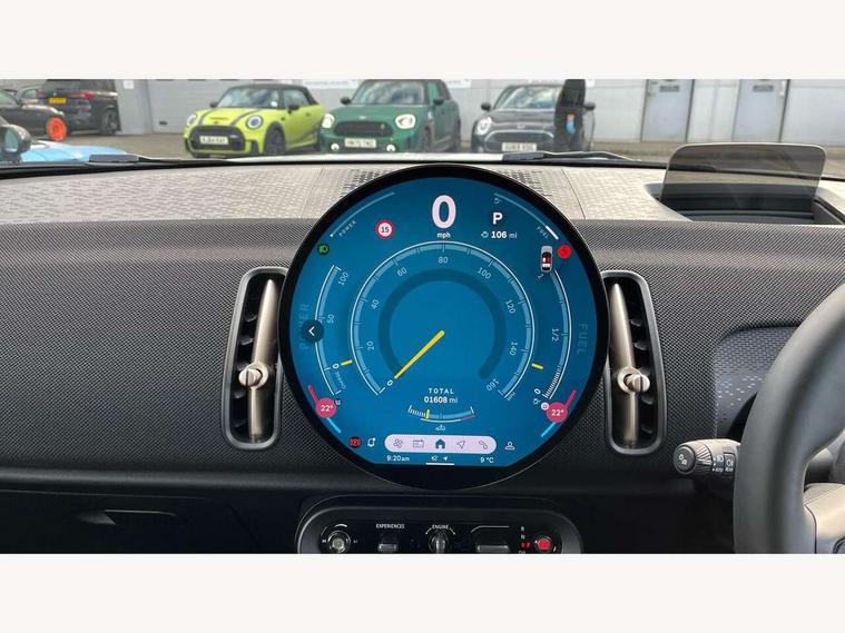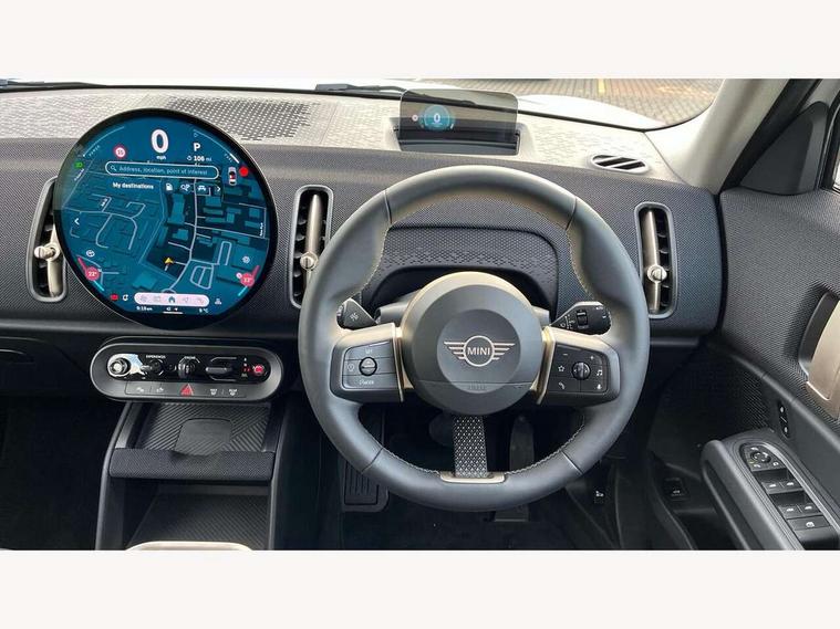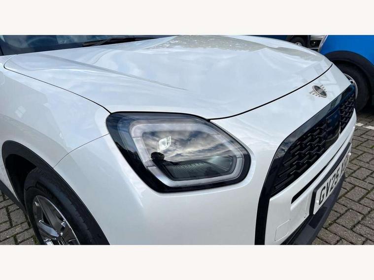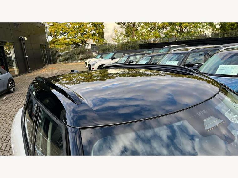 Bluetooth connection, Circular OLED Screen, Compatible mobile phone bluetooth with audio streaming, Cruise Control (DCC), Digital dashboard display, Driving assistant, E-call, Electro-mechanical speed dependant steering assistance, MINI Experience Modes, Mini navigation system, MINI TeleServices, Parking assistant in camera and ultrasound based assistance system, rear view camera, parking aid and distance control, Auto transmission with Paddles, Larger capacity fuel tank, 6 speakers, DAB Digital radio, Personal eSim, Auto tailgate, Electric adjustable heated door mirrors, Front and rear electric windows, Heated rear window, LED daytime running lights, LED Headlights, LED rear lights, LED third brake light, Rain sensor with auto headlights, Rear side wing doors, Rear window wiper, Roof rails, 3 seat bench in 2nd row, 60/40 split rear bench seat, Auto air conditioning, Floor mats, Front armrest, Front headrests, Heated steering wheel, Height and length steering column adjustment, Light headliner, Rear headrests, Single front passenger seat, Sport Vescin Steering Wheel, Sunvisors with vanity mirrors, Vescin/Cloth upholstery, 3x3 point rear seat belts, 6 Airbags - front, side, head and seat belt tensioners, ABS, DSC - Dynamic Stability Control, Electronic handbrake, Electronic Stability Programme (ESP), Front ISOFIX (iSize), Hill hold assist, Hill start assist, Manual rear child locks, Traction control, Tyre pressure monitoring system, Warning triangle, Alarm system with tilt sensor, monitoring doors, bonnet interior and tailgate, Auto drive away locking, Deadlocking function, Electronic vehicle immobiliser, Locking wheel bolts, Remote control locking, Start/stop toggle with keyless go, Black/Blue dashboard knit, MINI Mobility Kit,