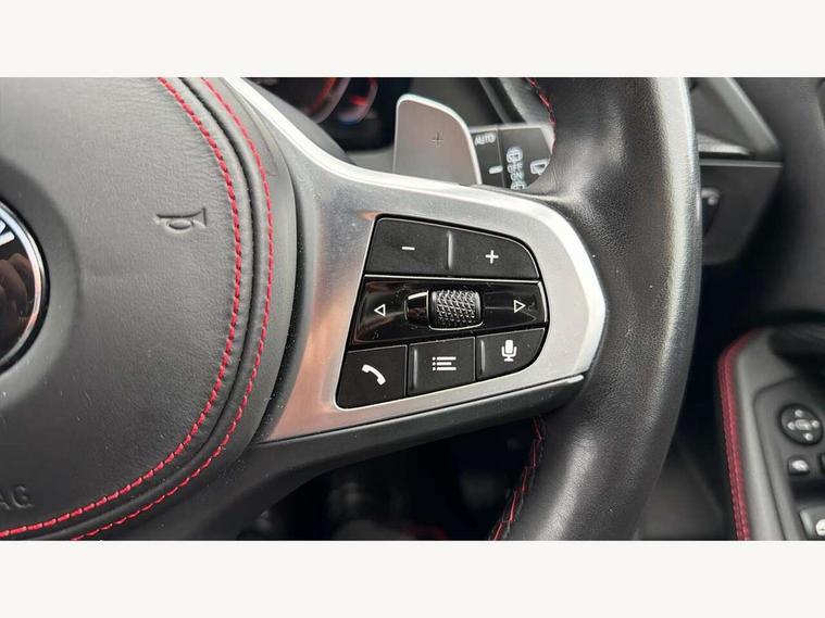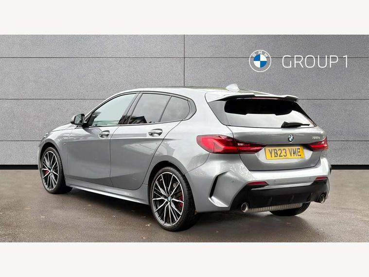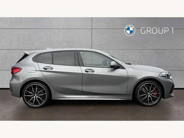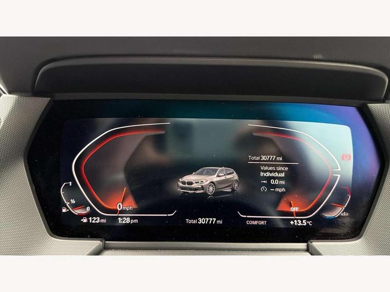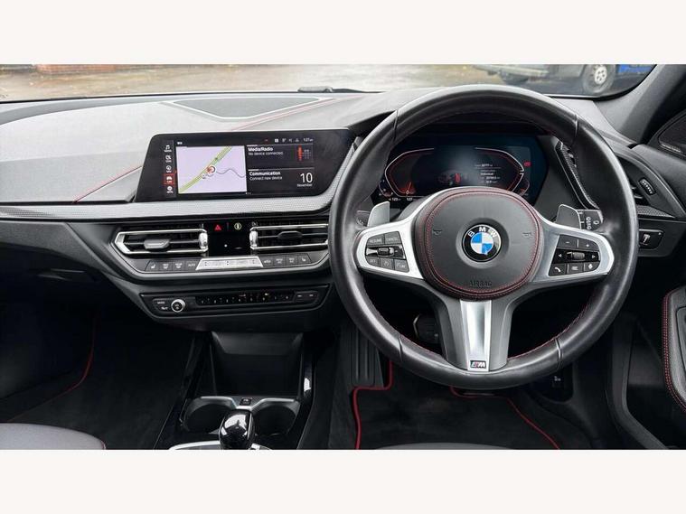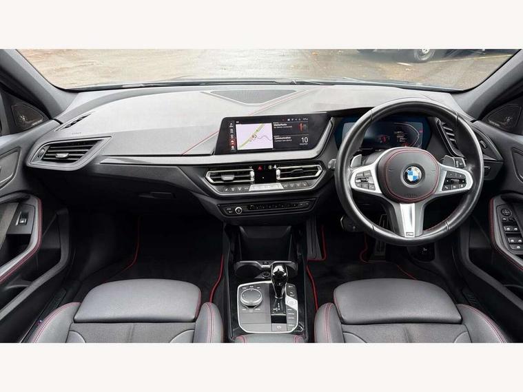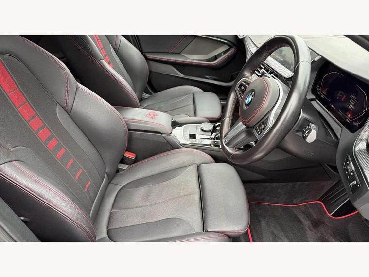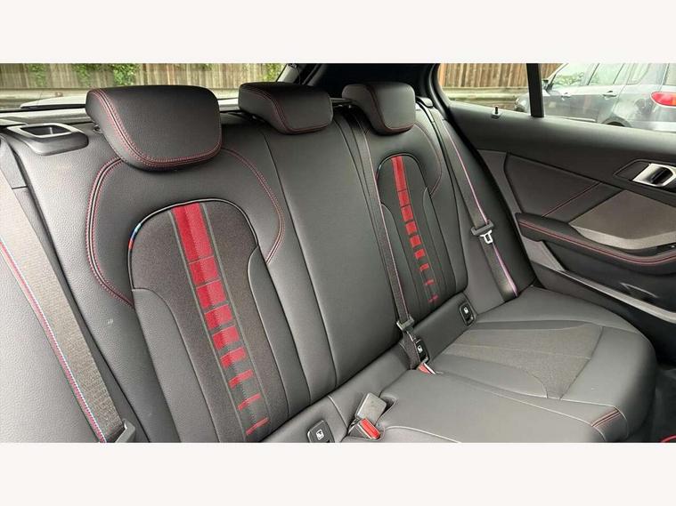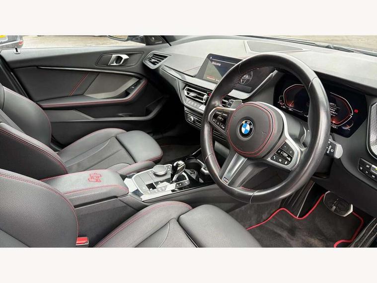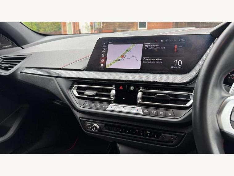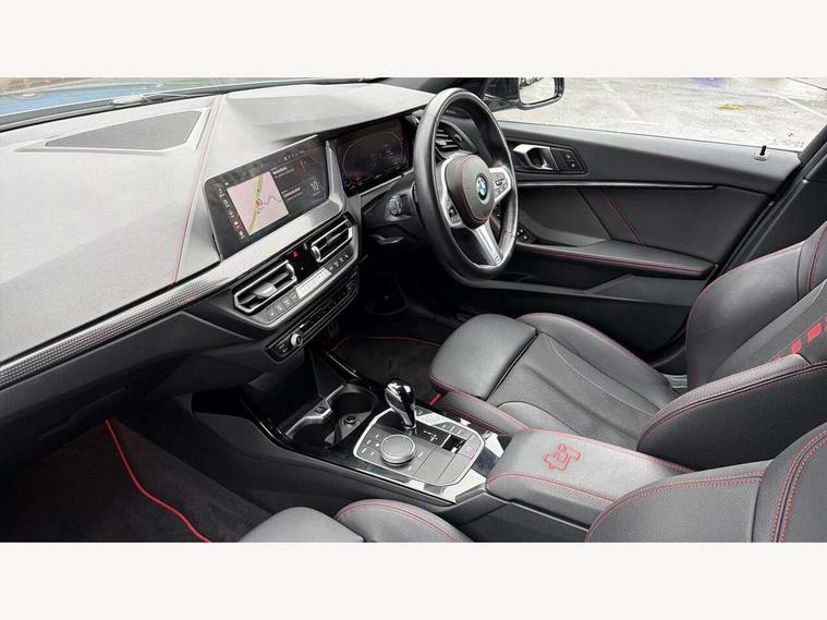Active guard plus, Attentiveness assist, BMW ConnectedDrive online services, BMW Teleservices, Check Control warning system for monitoring of lights and door/luggage compartment open warning, Cruise control with speed limiter, Eco pro mode, Electric power steering with Servotronic steering optimised at all speed ranges, Front axle single joint with specific axle kinematics to minimise drive influences on steering + provide increased rigidity agile driving behaviour, Integrated owners handbook, Lane departure warning system, Oil sensor for level and grade, On board computer, Optimum shift indicator, Personal Profile, Pull away assistant, Rigidly mounted rear subframe - Multi link construction with separate spring / damper configuration and excellent driving characteristics, Speed limit Info including no-overtaking indicator, Aluminium lightweight construction, Anti roll bar front and rear, Balancer shaft, Double VANOS twin scroll turbocharging system, Drive Performance Control, Eight speed sport automatic transmission with gearshift paddle switches, Electronic differential lock, High precision injection, Larger fuel tank capacity (50 litres), M sport suspension with M128i xDrive specific settings, Petrol Particulate Filter, Twin tube gas filled shock absorbers with degressive characteristic curve, VALVETRONIC engine management, DAB Digital radio, Auto dimming rear view mirror, Automatic headlight beam throw control, Automatic windscreen wipers and automatic headlight, Black chrome tailpipe finishers, BMW individual high gloss shadow line with extended content, Body colour door handles, Body colour mirror caps, Body colour roof trims, Chrome 'M' logo side designation, Chrome kidney grille frame with Satin Aluminium struts, Direction indicator side lights in exterior mirrors, Electrically adjustable exterior mirror with mirror adjustment switch on drivers armrest and aspheric on driver side, convex on passenger side, Fading support, Folding side mirrors with auto dimming/folding wing mirrors with auto dimming, Follow me home headlights, Front and rear bumper system with replaceable deformation elements, Front and rear electric windows with open and close fingertip control, anti trap facility and comfort closing, Front door sill finishers in black plastic with M designation in metallic look, Green tinted heat protection glazing, High gloss shadowline window frame, Recess cover mirror frames and B/C pillar embelisher trim, High level third brake light, Integrated front windscreen with washer jets, Kidney frame and struts in high gloss black extended, LED daytime running lights, LED eyebrow turn indicators, Lightweight engineering, Matt black air guide grilles, Matt black wheel arch trim, Model designation on electric bootlid, Nearside reverse light in rear light cluster, Preparation for high beam assistant, Rear fog lights, Rear side wing doors, Rear window wiper, Shark fin antenna, Trailer stabilisation logic, Visible VIN plate, Welcome lighting, 12V power socket in front centre console with blanking plug, 3 rear seat head restraints, 3 seat bench in 2nd row, Anthracite headlining, Black boot net with lashing eyes, Cargo function on 2nd seat row, Child seat ISOFIX attachment for two outer rear seats and front passenger seat with anchorage points, Conditioned based service, Driver and front passenger backrest net on rear, Driver and front passenger seat heating, Driver side folding compartment in instrument panel, Folding rear clothes hook, Four grab handles integrated in roof lining, Front and rear door pockets with bottle holders, Front and rear side armrest integrated into door trim, Front armrest, Front sports seats, Glove compartment, Height adjustable front head restraints, Luggage compartment for bag hooks on left and right, foldable luggage compartment liner and four lashing eyelets, Manual adjust steering wheel, Multi-function controls for steering wheel, Single front passenger seat, Storage compartment in centre console, Storage compartment in luggage compartment, Stowage of the parcel shelf in luggage compartment trim, Sun visors with vanity mirrors and insert tab, Three spoke M sport design multi function leather steering wheel in unique red stitching, Two front centre console cupholders, Two zone automatic air conditioning, Type C two USB ports in rear centre console, Additional interior lighting pack - 1 Series, BMW live cockpit professional pack- 1 Series, Connected pack professional - 1 Series, Interior lights pack - 1 Series, M Sport exterior styling aerodynamics pack - 1 Series, 2 tone horn, 3 point seatbelts on all seats, front pyrotechnic belt tensioners, stopper and belt force limiters, rear coded belt buckles, Airbags - Front driver/passenger, front and rear curtain head protection, front side, manual deactivation of front passenger airbag, Anti lock braking system (ABS) with brake assist, BMW emergency call, Brake drying, Braking readiness, Child proof locking system in rear door, City braking function, Comfort modes, Cornering brake control, Crash sensor activating of airbags, Unlocking doors, hazard warning lights, interior light, safety battery terminal, Driver and front passenger seat belt security check, Dynamic stability control + (DSC+), Dynamic Traction Control - DTC, Electrically operated hand brake including automatic hold function, Front and rear disc brakes, M Sport brakes with red calipers, M Sport seatbelts, Seatbelt warning, Side impact protection, Tyre pressure monitoring system, Warning triangle and first aid kit, Central locking switch for all doors, fuel filler cap and luggage compartment, Deadlocking function system to all doors, Drive away locking system on all doors and luggage compartment with de-activated in iDrive settings, Locking wheel bolts, Remote control with integrated key with High-gloss Black inlay and M designation and 1 button for open/ close lock, window, open luggage compartment, Start/stop button illuminated in centre console with k