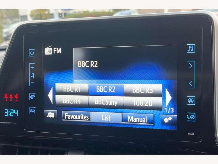 4.2" Colour TFT driver information display, 8" touch screen, Adaptive cruise control, Adjustable speed limiter, Bluetooth system, Collision prevention assist, Intelligent parking assist with front, rear and side parking sensors, Lane departure warning system, Lights on warning, PAS, Push button starter, Reversing camera, Touch 2 Go navigation system, Traffic sign recognition, Trip computer, Vehicle Stability Control (VSC), 6 speakers, Auxiliary input socket, DAB Digital radio, Steering wheel mounted controls, USB connection, Auto dimming rear view mirror, Auto folding mirrors, Auto high beam, Body colour door handles, Body colour heated door mirrors, Body coloured bumpers, Electric folding/heated door mirrors with integrated indicators, Follow me home headlights, Front and rear electric windows, Front fog lights, Heated rear windscreen, LED daytime running lights, Privacy glass, Rain sensitive windscreen wipers, Rear spoiler, Rear wiper, Shark fin roof aerial, 12V Accessory socket, Ambient lighting, Child seat anchorage points, Chrome interior door handles, Cloth upholstery, Driver + front passenger electric lumbar support, Driver/passenger sunvisors and illuminated vanity mirrors, Dual zone automatic air conditioning, Folding rear seats, Front and rear door pockets, Front centre armrest, Front cupholders x 2, Front head restraints, Glovebox illumination, Heated front seats, Illuminated entry system, Leather gear knob, Nappa leather steering wheel, Rear headrests, Tilt/telescopic steering column, Whiplash Injury Lessening (WIL) feature (active headrest) for seats, 3x3 point rear seatbelts, ABS+EBD+Brake assist, Airbag deactivation switch, Driver/Front Passenger airbags, Driver/front passenger side airbags, Drivers knee airbag, ESP + traction control, Front and rear curtain airbags, Front and rear seatbelt reminder, Hill start assist control (HAC), Rear child proof door locks, Road sign information display, Toyota safety sense, Tyre pressure monitoring system, Alarm, Immobiliser, Remote central locking, Smart entry, 18" Dynamic alloy wheels, Tyre repair kit,