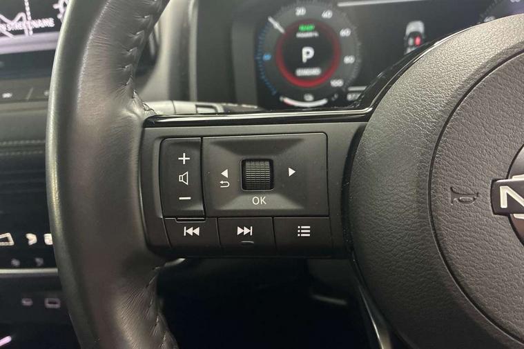 Android auto wireless, Blind spot warning, Drive assist custom mode, Drive modes (sport, normal, eco), Driver drowsiness and attention warning, e-Pedal step, Electric speed sensitive power steering, Emergency and breakdown call, Event data recorder, Front and rear parking sensors, Full Digital 12.3" TFT Digital Combimeter, Google maps services - search, weather, 3D maps and Google street view, Hands free power tailgate, Idle stop/start system, Intelligent around view monitor, Intelligent Cruise control (ICC), Intelligent driver alert system, Intelligent forward collision warning, Intelligent lane departure warning, Intelligent lane intervention, Intelligent lane keep assist, Maximum speed limiter, Moving object detection, Nissan connect 12.3 inch touchscreen infotainment system, Nissan connect nav with TomTom traffic, Propilot assist with Navi-Link, Push button starter, Rear cross traffic alert, Rear view camera, Remote control services - door locks, lights, horn and car locator, Reversing detection, Telematics - notifications and connectivity services, Traffic jam pilot, Traffic sign recognition with legal speed adjustment, Trip computer, Virtual personal assistant and firmware over the air capability, Wireless apple carplay, Wireless charging pad, 6 speakers, AM/FM audio system with DAB, Bluetooth audio streaming, Front USB connections (Type-A and Type-C), Rear USB charging only ports 2 Type-C, Auto dimming rear view mirror, Auto rear wiper when reversing, Body colour mirror caps, Body coloured door handles, Bodyside mouldings, Chrome side window finisher, e-POWER badging, Electric auto folding door mirrors, Electrically adjustable and heated door mirrors, Follow me home headlights, High beam assist, Intelligent auto headlights, LED 3rd brake light, LED daytime running lights, LED Headlights, LED rear lights, One touch front and rear electric windows with remote opening and closing, Partially body coloured bumpers, Rain sensing wipers, Rear reversing light (bulb lighting), Rear roof spoiler, Rear side wing doors, Rear styling plate, Shark fin antenna, Splash free wipers, Three blink turn signal, 12v power socket in dashboard and luggage, 3 bench rear seats in 2nd row, 3 rear headrests, 60/40 split folding rear seat bench, Butteryfly console, Chrome interior door handles, Cloth monoform upholstery, Driver and front passenger sunvisors with illuminated vanity mirrors, Driver seat back pocket, Dual zone automatic climate control with pollen filter, Front centre console and armrest, Front cupholders, Front door with bottle holders, Height adjustable driver's seat, Height adjustable front headrests, Height adjustable passenger seat, Leather shift knob, Leather steering wheel, Luggage board system, Luggage space lighting, Multifunction steering wheel, Passenger seat back pocket, Rear armrest with 2 cupholders, Rear door bottle holders, Single front passenger seat, Tilt/telescopic adjustable steering wheel, Two rear isofix child seat anchorage points with top tether, 3x3 point rear seatbelt pretensioners + load limiters, ABS with EBD and brake assist, Active brake limited slip, Auto hold function, Child locks on rear doors, Curtain and front side, far side airbags, Driver and passenger airbags, Driver, passenger and 2nd row rear seat belt reminder, Electronic parking brake, Front seatbelt pretensioners + load limiters, Height adjustable front seatbelts, Hill start assist, Intelligent blind spot intervention, Intelligent front emergency braking with pedestrian, cyclist recognition and junction assist, Intelligent rear automatic braking, Tyre pressure monitoring system, Vehicle dynamic control, Approach unlock and walk away lock, Engine immobiliser, Intelligent Key, Remote central door locking with deadlocking, Thatcham Cat.1 alarm, 18" Diamond cut alloy wheels, Tyre puncture repair kit,