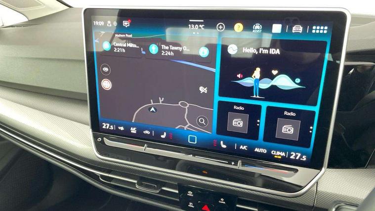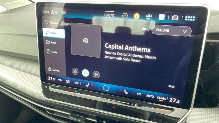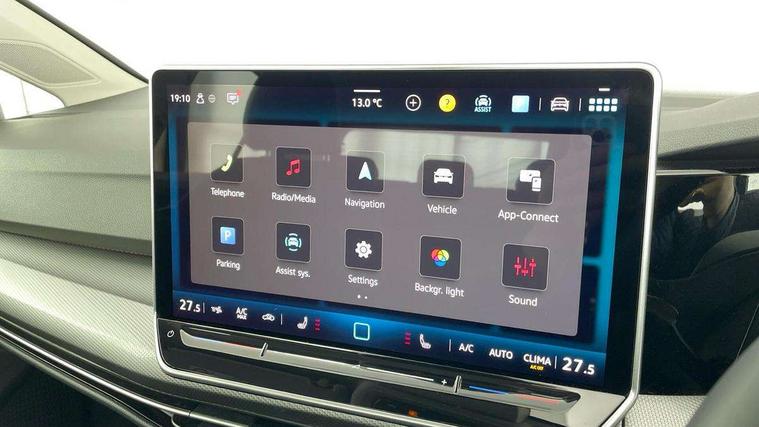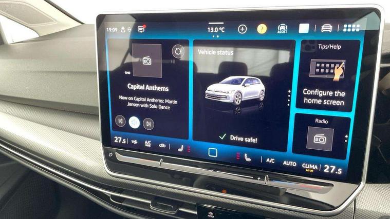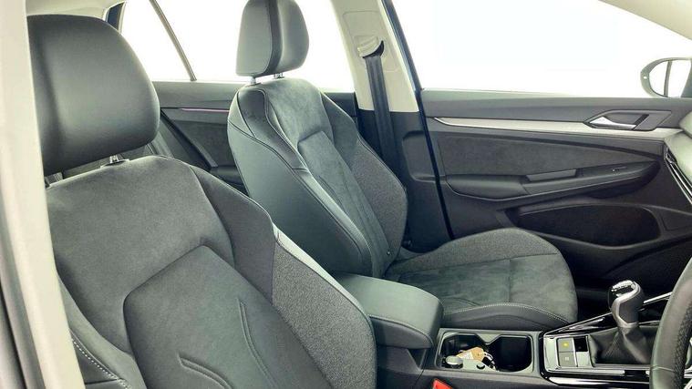 Activated carbon canister, Adaptive cruise control (ACC), Advanced driver attention and drowsiness monitor, Dynamic road sign display, E-Sim card for online connectivity, eCall emergency call system, Emergency assist, Multi-color Digital cockpit pro, selection of different info profile possible, Multifunction front facing camera for distance control, Navigation system, Oncoming vehicle braking when turning including swerve support, Preparation for light assist system, Side assist blind spot lane change system, rear traffic alert and exit warning system, Speed limiter, Speedo, rev counter, electronic odometer, trip, service interval display, exterior temperature and fuel gauge, Traffic jam assist, Voice enhancer and voice control, Warning signal and warning light for front and rear seatbelts not fastened, We connect plus preparation, We connect preparation, Wireless app connect, Petrol Particulate Filter, Start-stop system with battery regeneration (recuperation - energy recovery during braking), XDS electronic differential lock for improved traction and handling, 2 USB C ports in front, 2 USB charging sockets on the centre console in the rear charging capacity upto 45W, Comfort telephony + wireless charging, without wireless aerial connection, Digital radio reception (DAB), Diversity antenna for FM reception, Gaming platform via car app, Infotainment system with 12.9" display, Mobile phone interface with inductive charging feature, 3rd brake light, Auto dimming rear view mirror, Auto headlights, Automatic headlamp activation with Coming home and Leaving home feature, Body colour bumpers, Body colour door handles, Body colour door mirrors, Chrome trimmed front air intake surrounds, Chrome trims on the side window bottom, Exterior ambient lighting with with illuminated molding between the headlamps and door handle recess, Exterior mirrors convex on the left and aspherical on the right, Front and rear electric windows, Heat insulating windshield made of laminated glass, LED daytime running lights, Rain sensor, Rear exhaust tailpipe, Rear fog light on one side and reversing lights on both sides, Rear side wing doors, Rear windscreen washer and wiper with interval delay, Remote electrically foldable door mirrors, puddle lights and reverse activated passenger's door mirror, Welcome light with surround lighting, 12V socket in front centre console, 12V socket in luggage compartment, 3 rear head restraints, 3 seat bench in 2nd row, Air care climatronic 3 Zone automatic climate control with rear air conditioning control panel, Ambient lighting with 30 colour including LED light unit in front footwell with selectable light colour, Carpet mats, front and rear, Chrome plated radiator grille inserts, air vent surrounds and light switch surrounds, Front centre armrest, ISOFIX anchors for child seats on outer rear bench seats and on front passanger seat compatible for i-Size, Leather gearshift handle, Luggage compartment lighting, Rear cupholder and loadthough, Single front passenger seat, Soul black instrument panel, Split folding backrest with centre armrest and unsplit rear seat bench, Standard pedal cluster, Storm grey roof lining, Sun visors with illuminated vanity mirrors, Driver assistance pack - Golf Estate/Hatchback, 3 point height adj front seatbelts + pretensioners, 3 rear three point seatbelts, ABS, Autonomous emergency braking front assist with pedestrian and cyclist monitoring, Child locks on rear doors, Driver and front passenger airbag with front passenger airbag deactivation, Electronic parking brake with auto hold, ESC (Electronic Stability Control), Extended pedestrian protection measures, Rear disc brakes, Two tone horn, Tyre pressure loss indicator, Volkswagen roadside assistance, Anti theft wheel bolts, Preparation for alcohol interlock, New brushed dark metal decorative inserts for dashboard and front door panels,