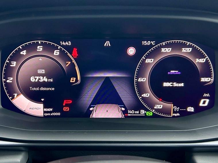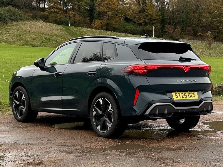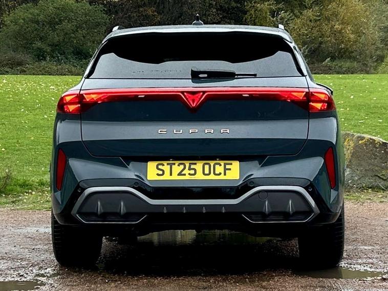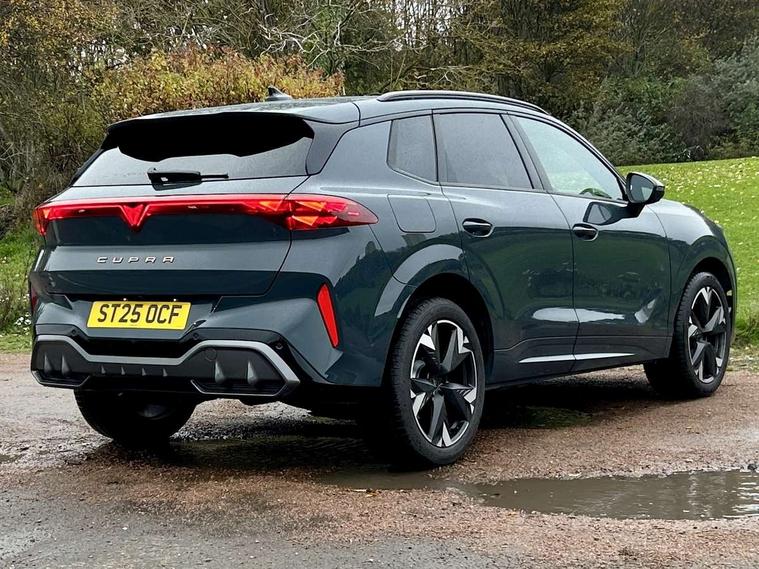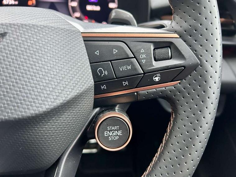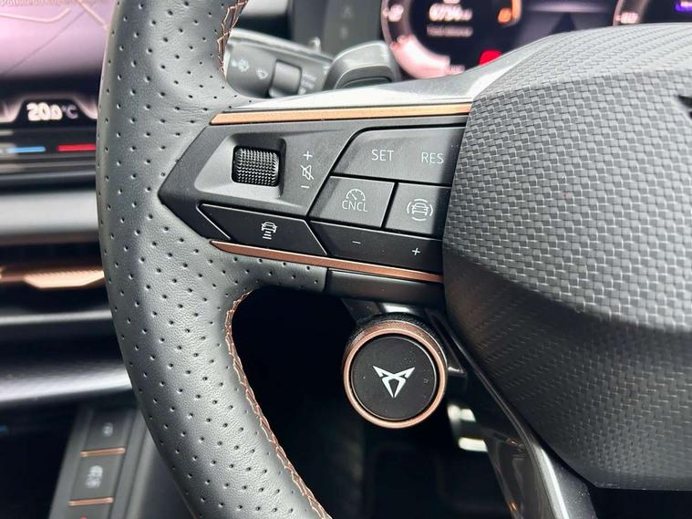 10.25" digital cockpit and configurable dashboard, Adaptive cruise control with follow-to-stop and speed limiter, Advanced driver alert system, Advanced lane assist with semi-automatic vehicle control in a medical emergency and traffic jam assist, Driving profile selection and conventional shock absorber, Dynamic road sign display, E-call, Electric tailgate with virtual pedal, Emergency steering support with turn assist, Four x USB Type C ports (2 in front and 2 in rear), Front and rear parking sensors, Front assist (Forward collision warning with automatic braking) with multifunction camera and front cross traffic assist, Head up Display, Intelligent park assist, Media system with Nav - 12.9" touch display, voice control, full link phone (wired/wireless), DAB and Steering wheel mounted controls, Rear traffic assist, Side and exit assist, Speed sensitive power steering, Start/stop system with regenerative braking, Top view camera (front camera, rear camera, 2 side cameras), Wireless phone charger, Auto dimming rear view mirror, Black roof rails, CUPRA 3D rear lights with ceremony & swiping indicator and illuminated logo, Dark tinted rear windows, Daytime running lights with automatic headlight control and Coming and Leaving home function, Door mirrors with memory function and lowing function on passenger mirror, Dynamic headlight range control, Electric front/rear windows, Electrically adjustable, heated and folding door mirrors, Front fog lamps with cornering function, Heat reflecting windscreen, High beam assist, LED headlamps with signature "CUPRA LED", Rain sensing wipers, Rear fog light on one side, back up light on both sides, Rear side wing doors, Rear wash/wipe, Third brake light, Welcome lights (within exterior mirror housing), 3 seat bench in 2nd row, Black roof lining, Cupra sports pedals, Dinamica cloth upholstery, Driver seat memory function, Electrically adjustable front seats including lumbar support, Front and rear head restraints, Front and rear reading lights X 4, Front centre armrest, Heated front seats, Heated leather wrapped multi function sports steering wheel with tiptronic, Illuminated interior front door sills, Isofix, Operating voltage 12V, Single front passenger seat, Smart wraparound interior lighting, Sunvisors with illuminated mirror, Three zone climate control with control panel in rear, Unsplit rear seat bench, split folding backrest, with centre armrest, Variable luggage/load compartment floor, 3 point seatbelts in front with pretensioner and electric height adjustment, 3 point seatbelts on all rear seats, Brake control system - ESC and brake booster, Child proof door locks, Driver and front passenger airbags, Electronic parking brake, Front and rear disc brakes, Front interaction airbag, Front passenger airbag deactivation switch, Front side airbags with curtain airbags, Pre-crash front and rear seat belt tensioner, window closure and hazard lights, Tyre pressure monitoring system, Visual and acoustic seat belt reminder, electric contact in front and rear, Anti theft alarm, Keyless locking and starting system with keyless access, Locking wheel bolts, Black decorative trims, Chrome interior detailing, 19" Spectrum exclusive machine alloy wheels, Tool kit,